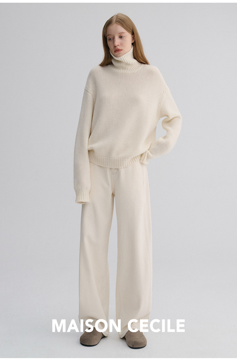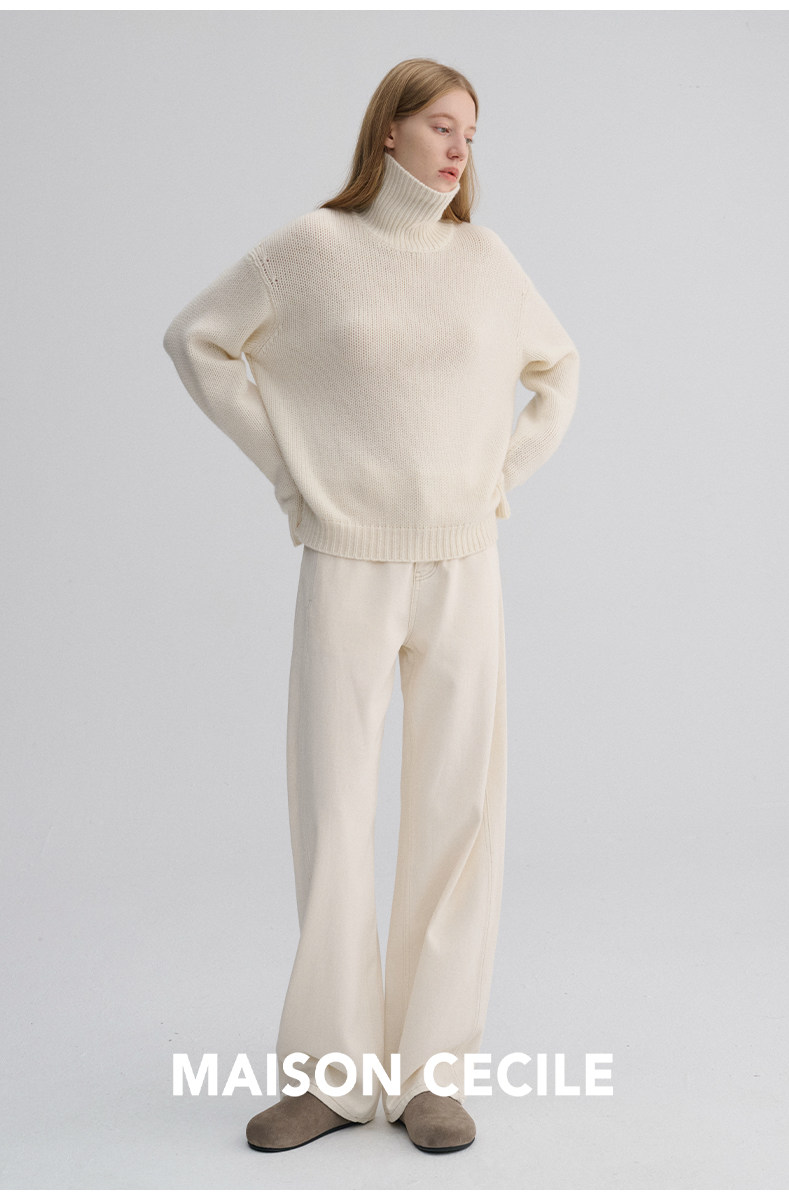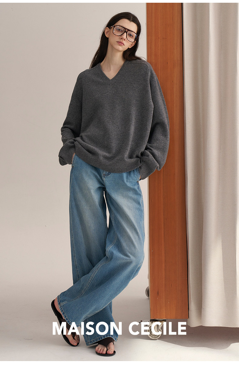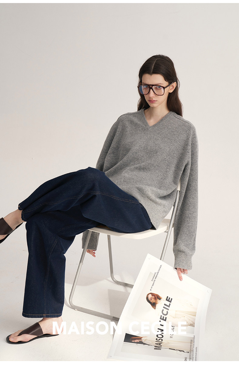 Maison Cecile Magic Pants Fleece-Lined Version | Classic Three-Color Slimming and Versatile Curved Sickle Jeans
