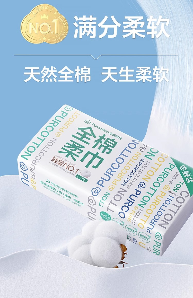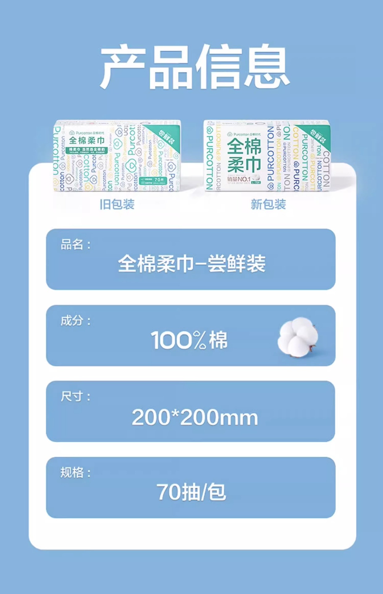 全棉时 加厚尝鲜款全棉柔巾L码200mm*200mm*70片/包 42包/箱