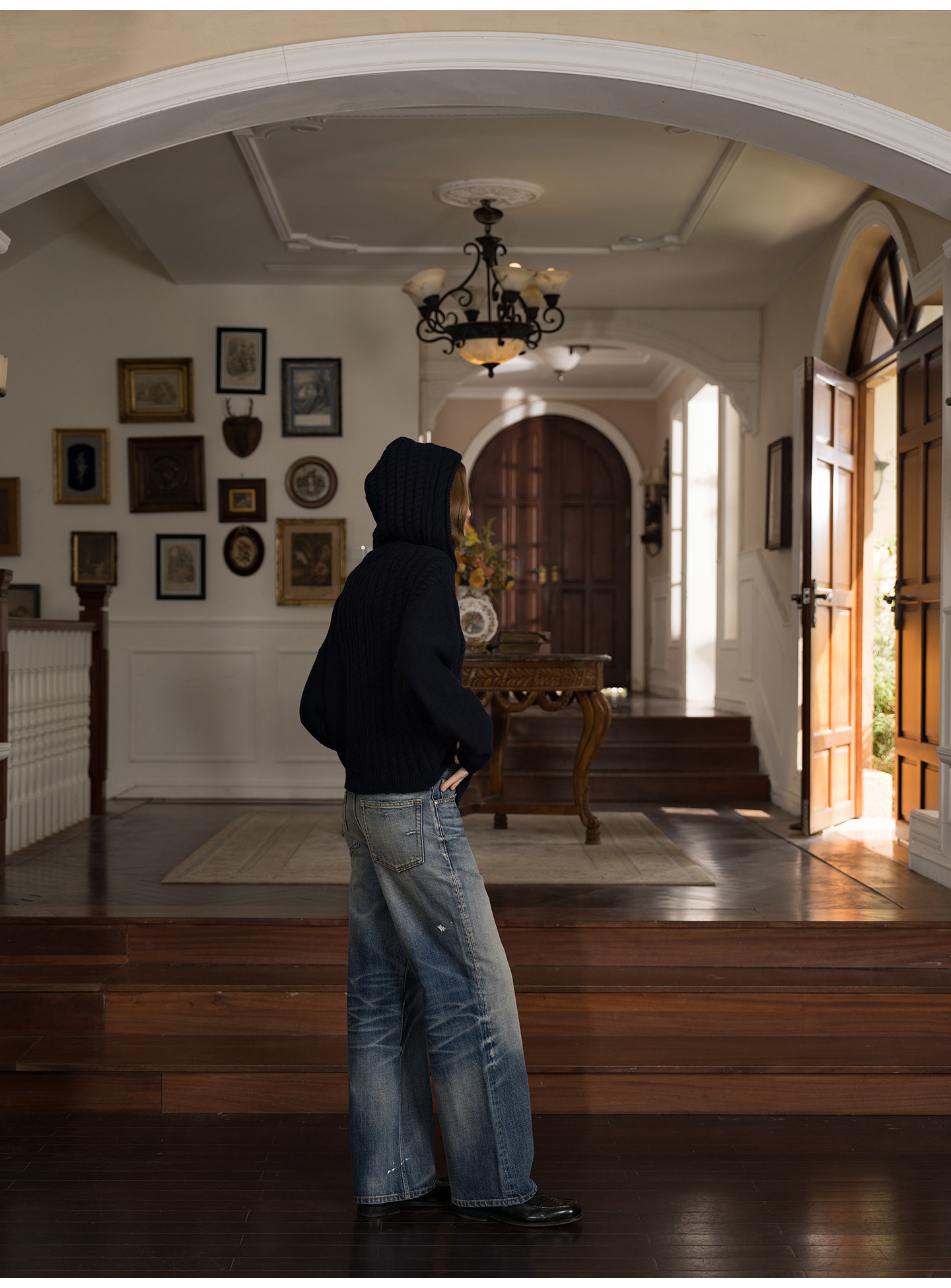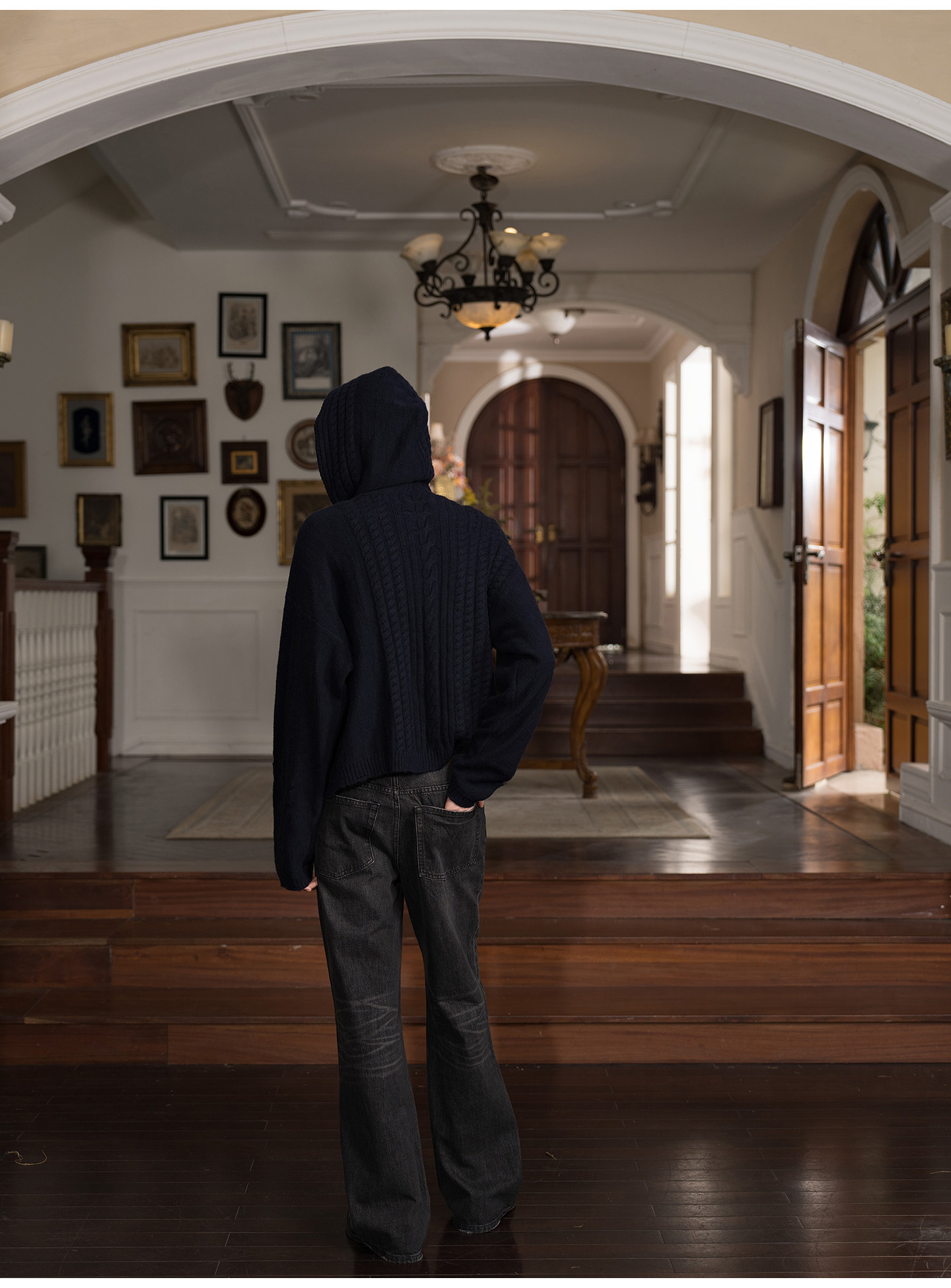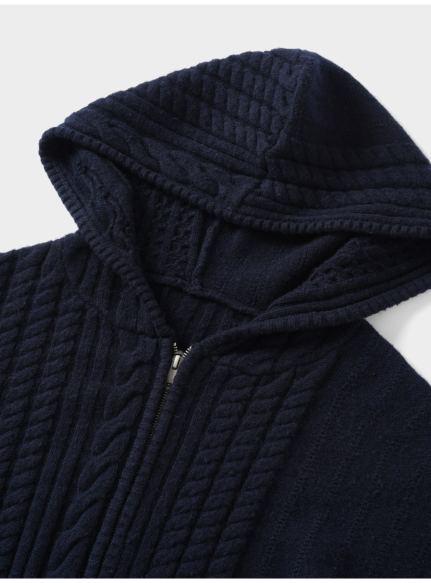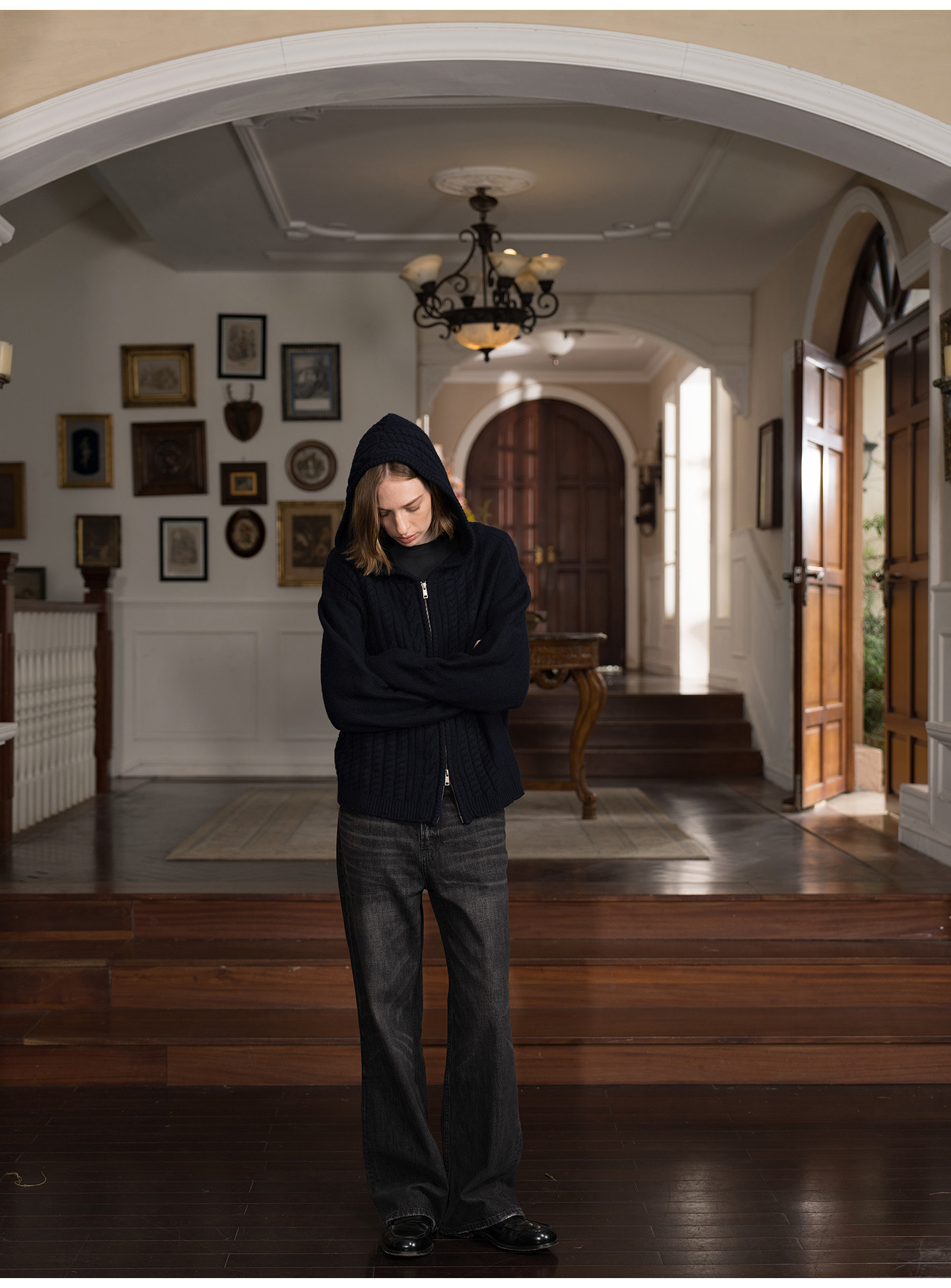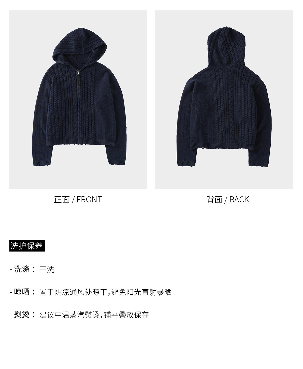 Amicus Animae Irregular Soft Knitted Wool Zipper Hooded Cardigan Sweater