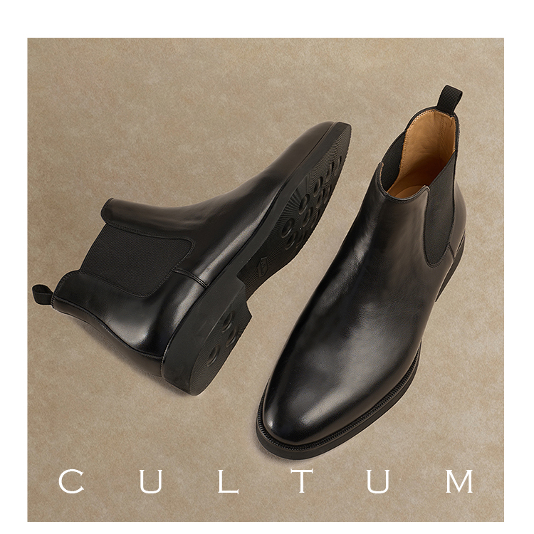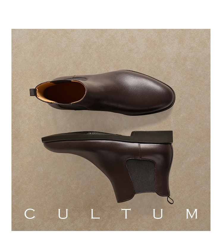 【First Layer Cowhide】Cultum Genuine Leather Chelsea Ankle Boots Autumn and Winter Men's Pointed Leather Shoes