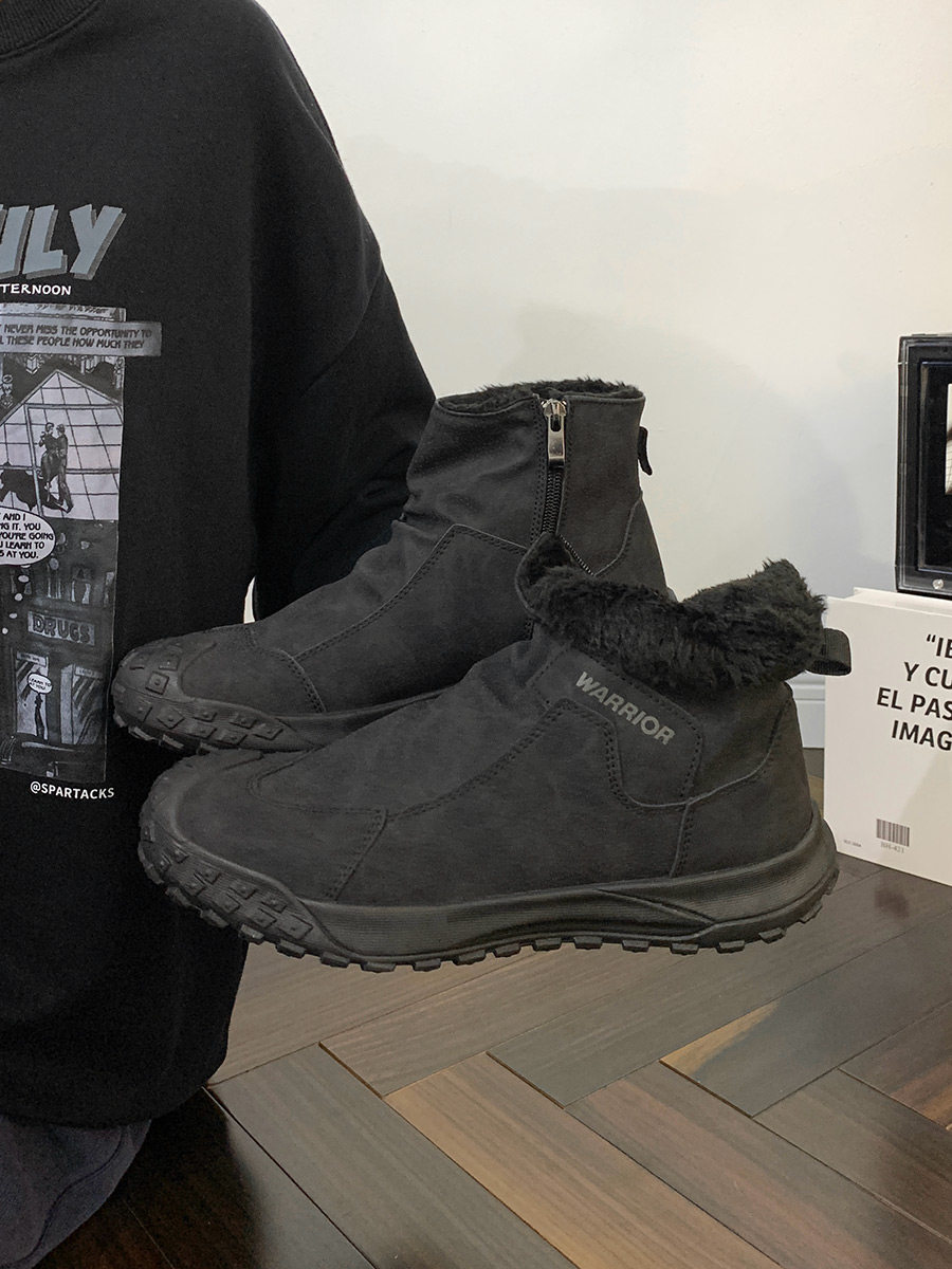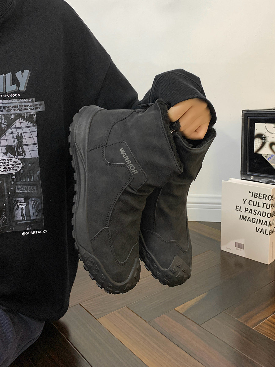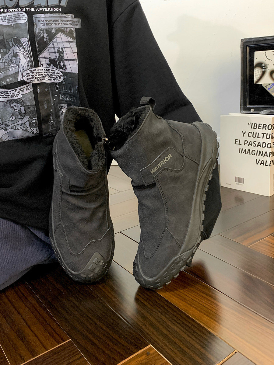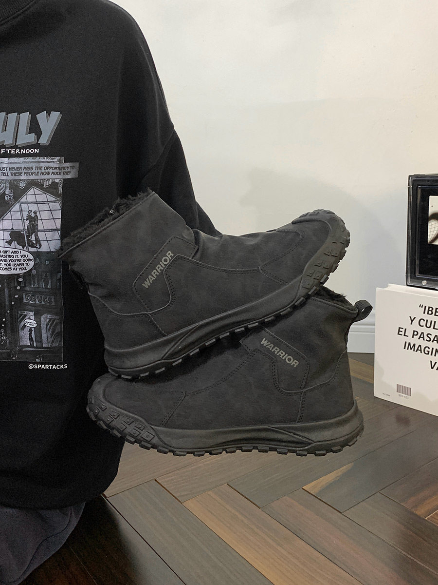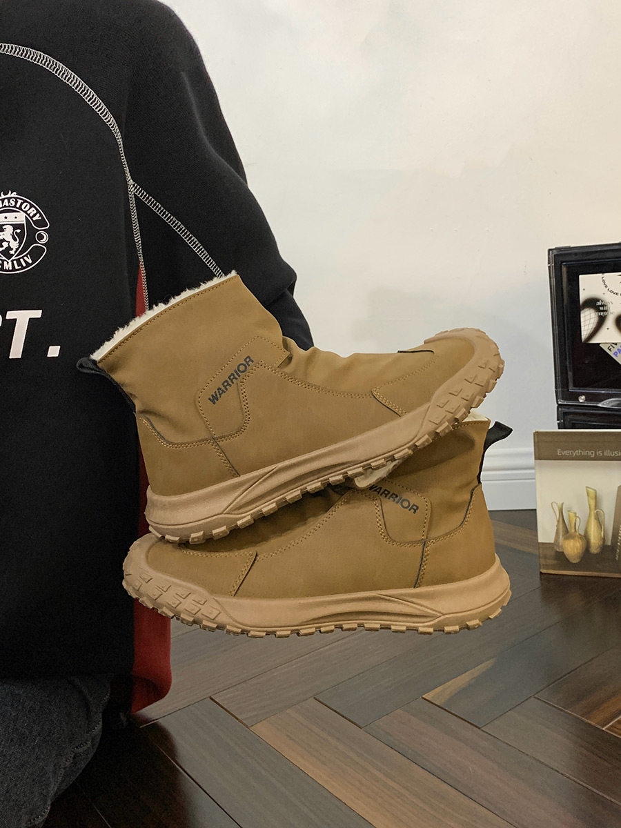 Warrior Brand Fleece-Lined Thick High-Top Men's Shoes, Winter Warm Cotton Shoes, Casual Men's Snow Boots, Popular Martin Boots