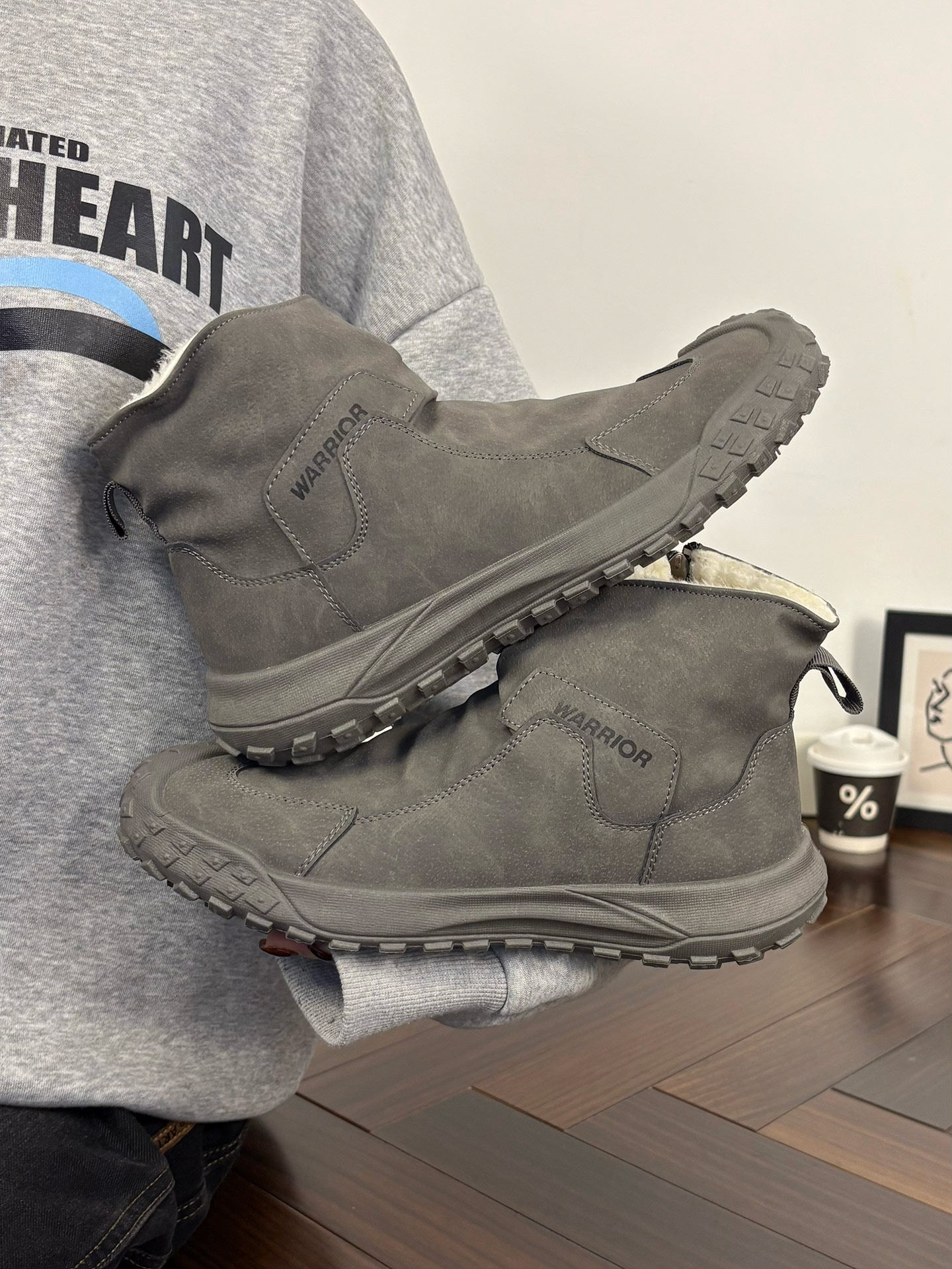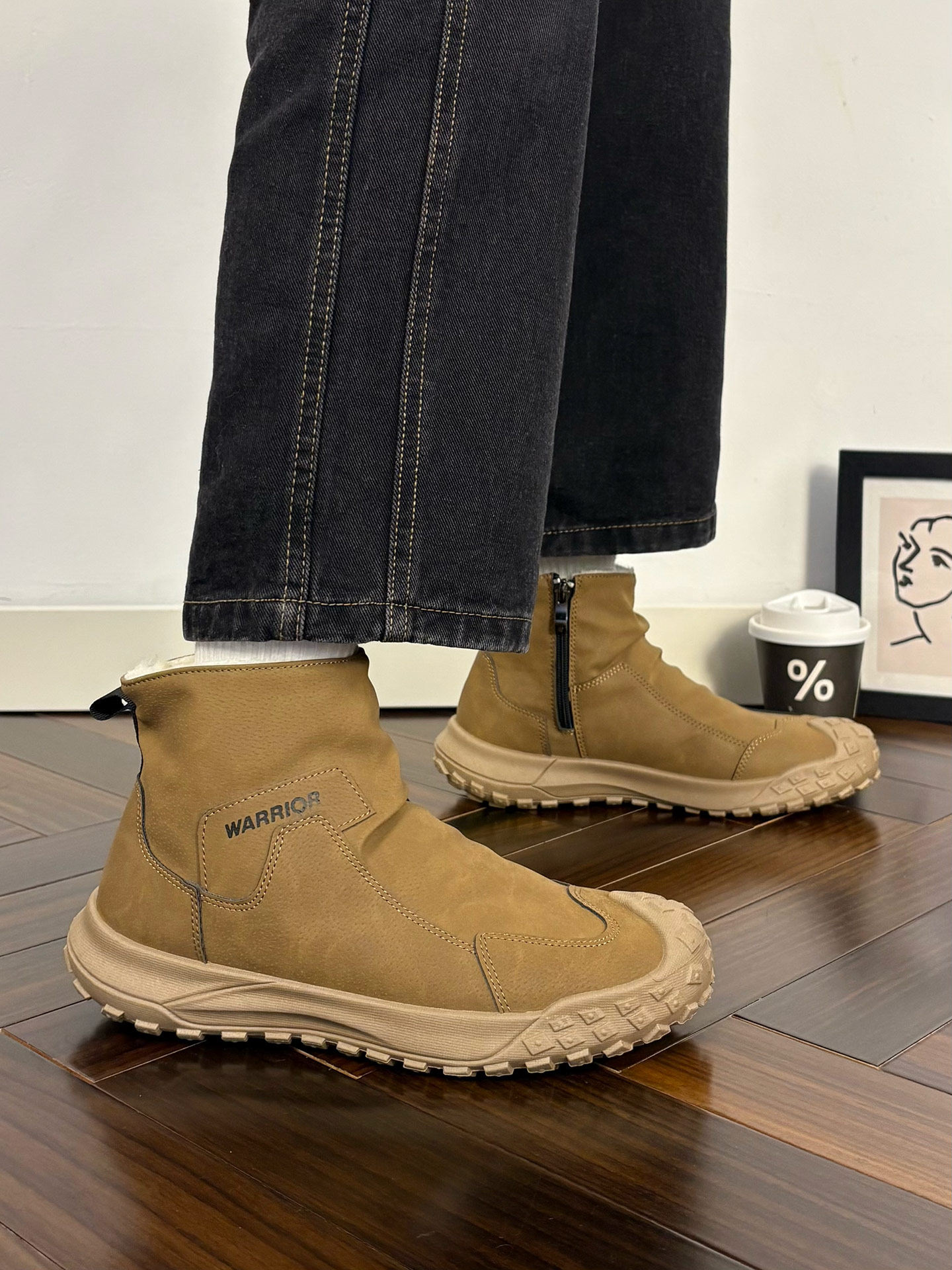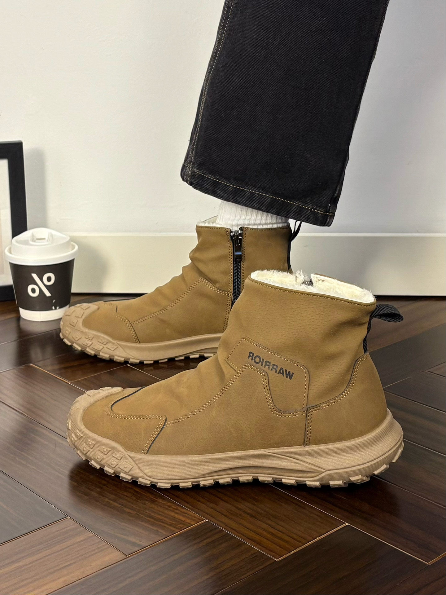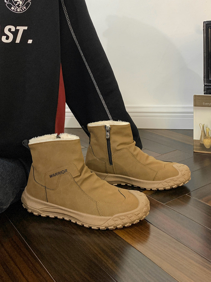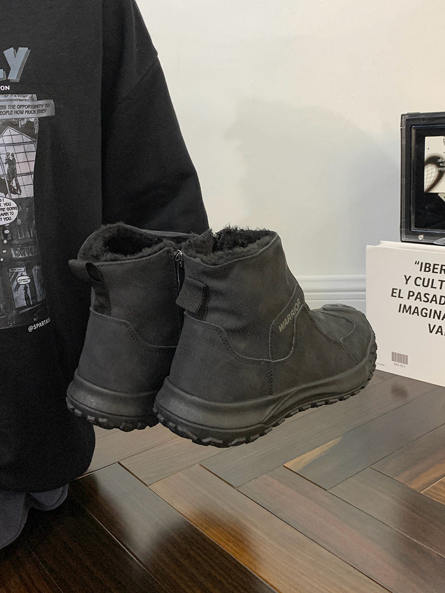 Warrior Brand Fleece-Lined Thick High-Top Men's Shoes, Winter Warm Cotton Shoes, Casual Men's Snow Boots, Popular Martin Boots