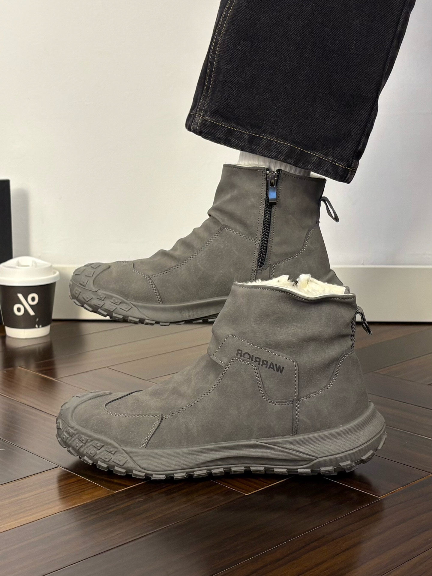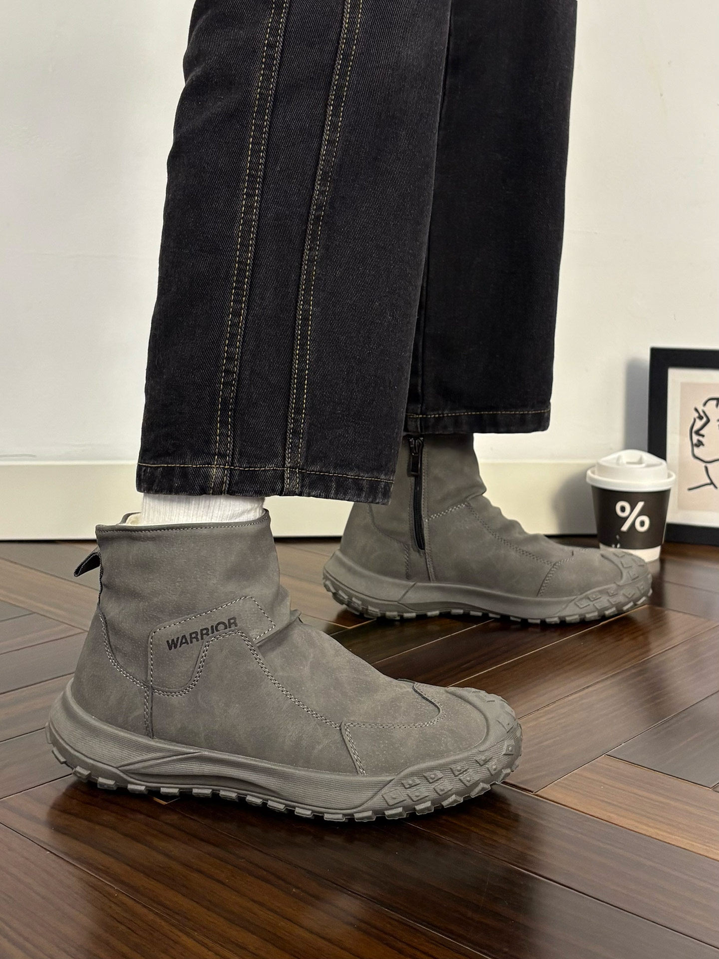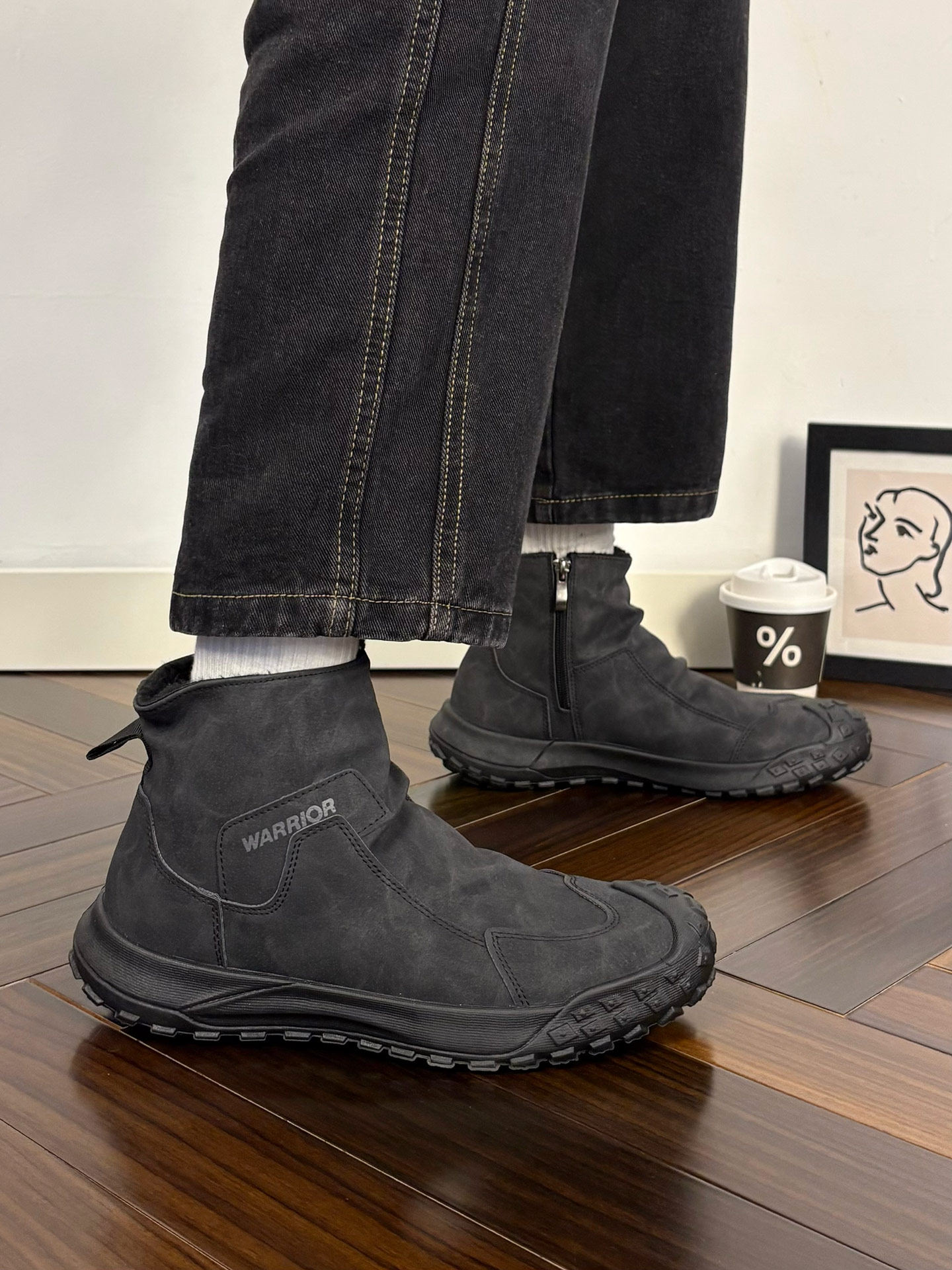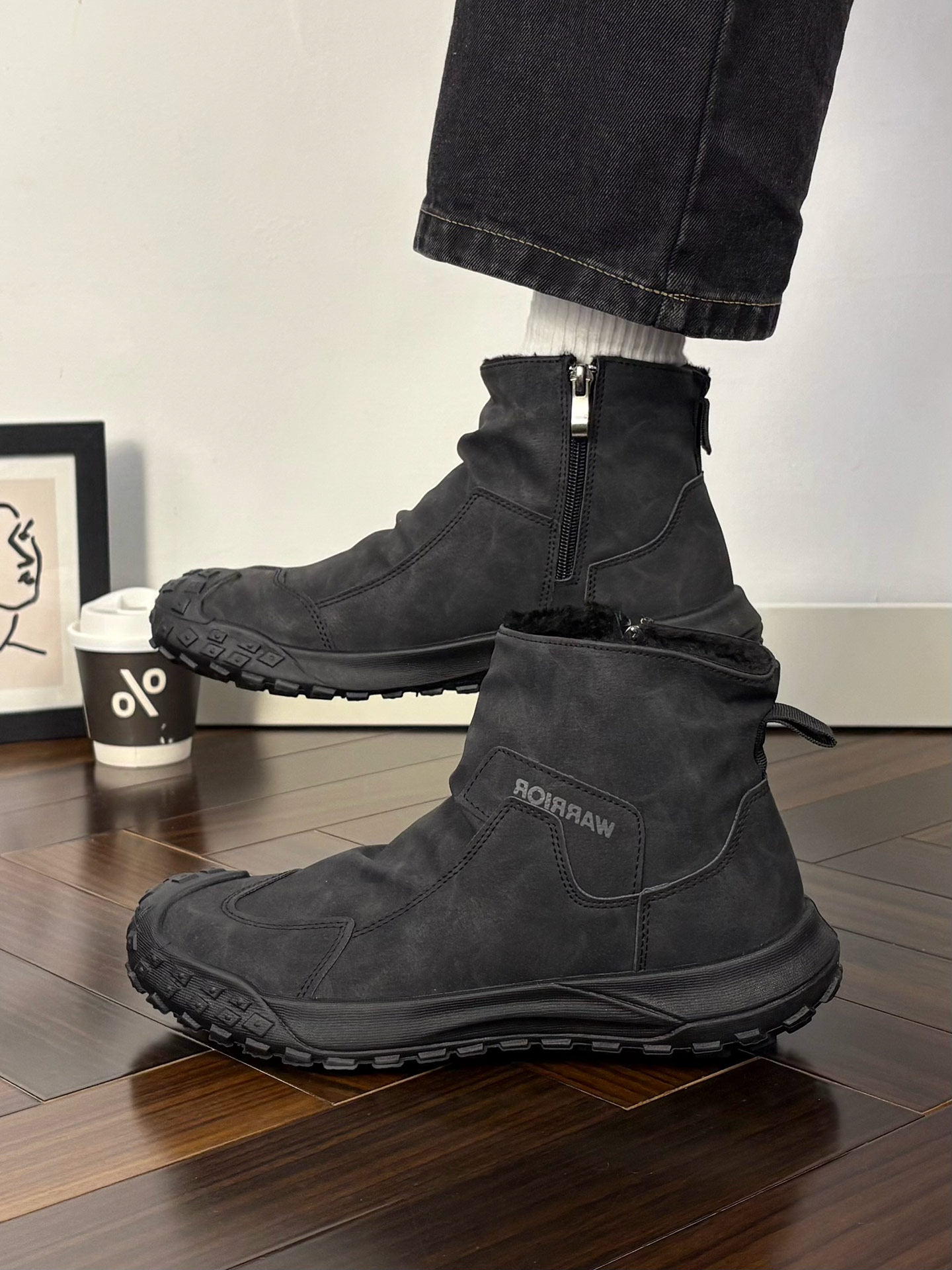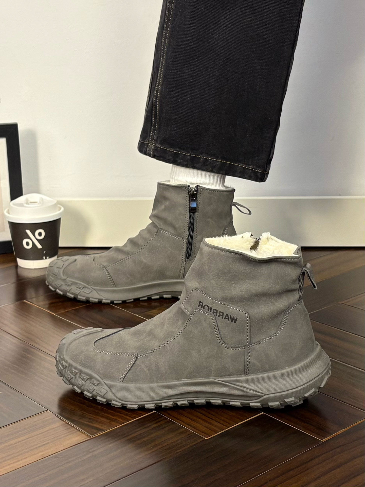 Warrior Brand Fleece-Lined Thick High-Top Men's Shoes, Winter Warm Cotton Shoes, Casual Men's Snow Boots, Popular Martin Boots