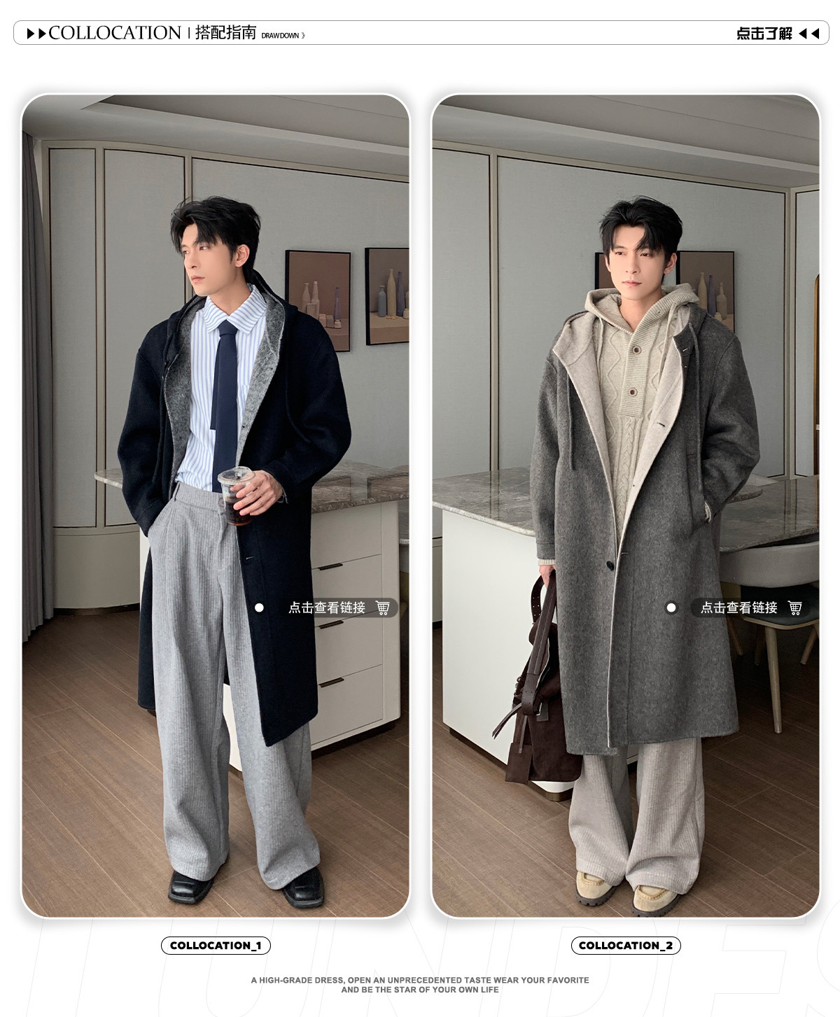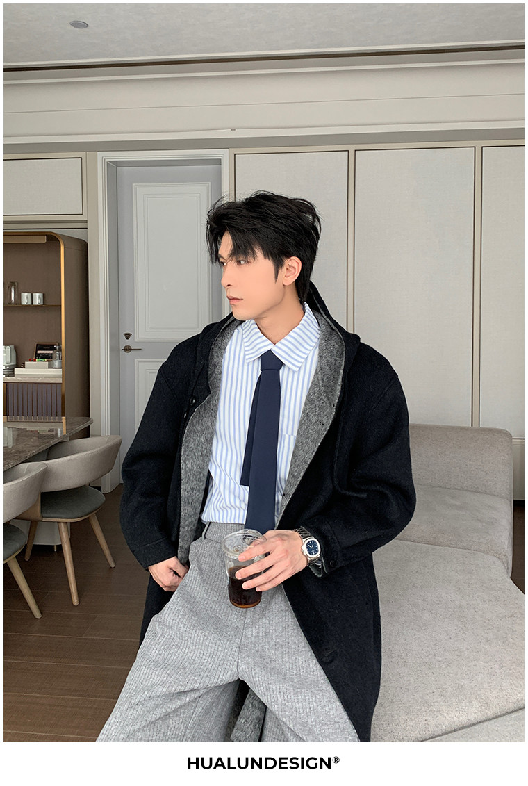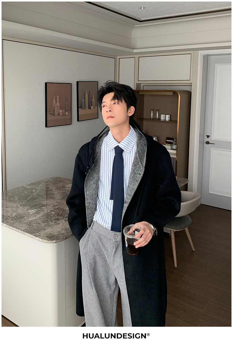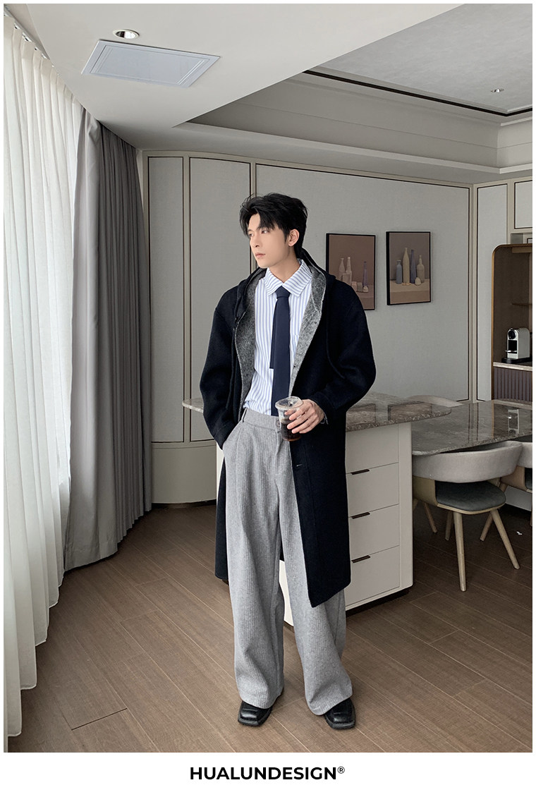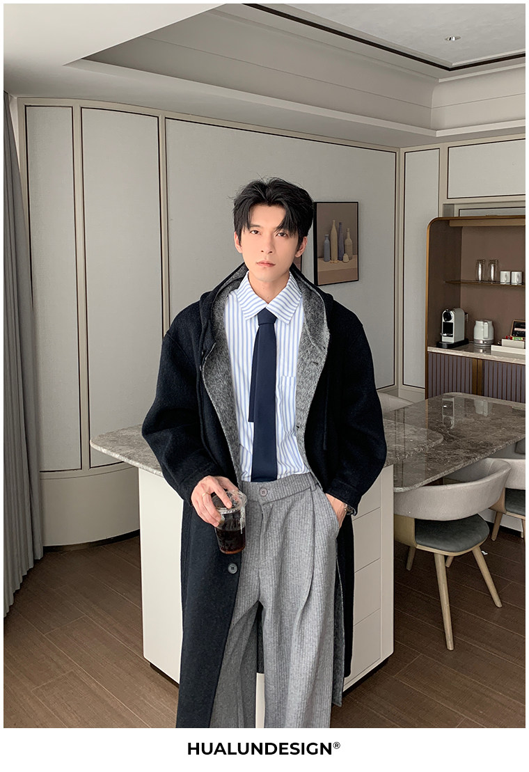 Hualun Mid-Length Double-Sided Cashmere Wool Coat for Men, Loose and Thick, Trendy Brand, Warm Hooded Woolen Jacket