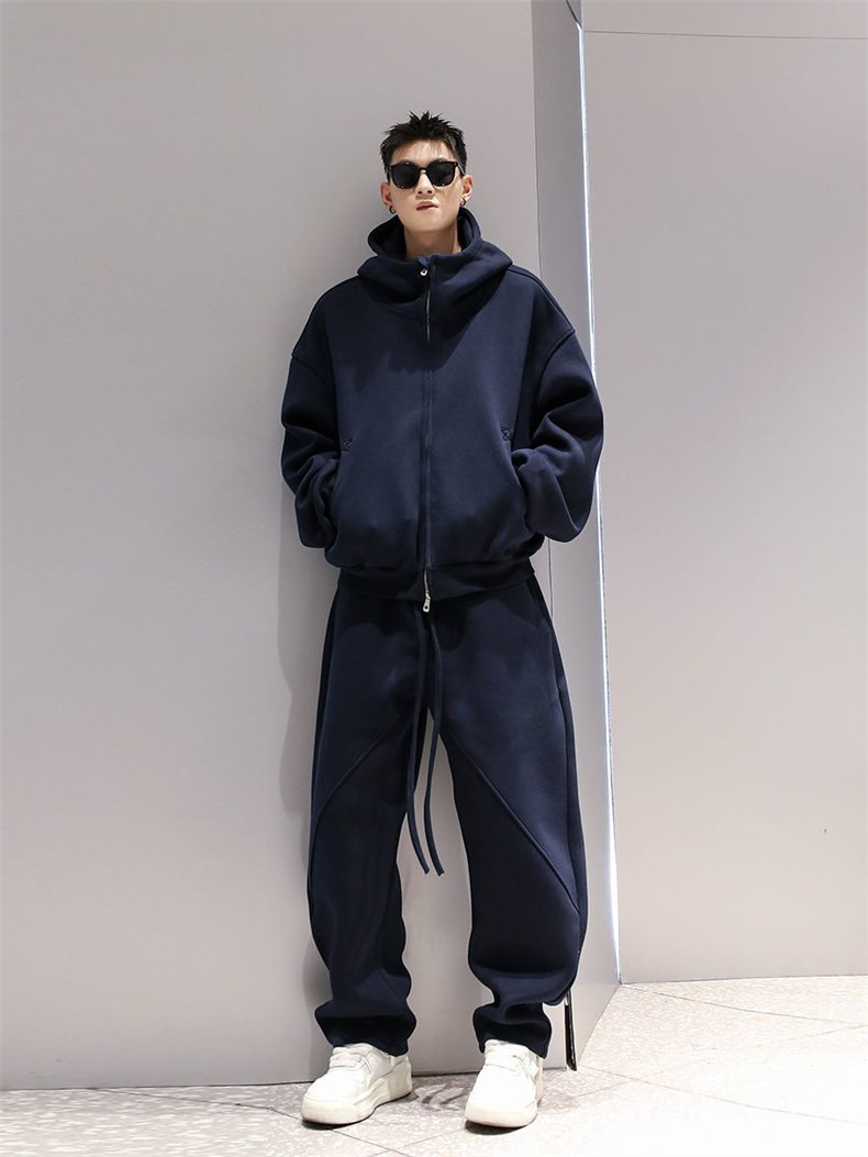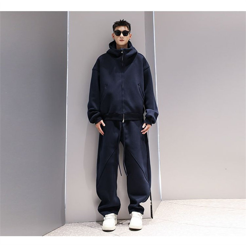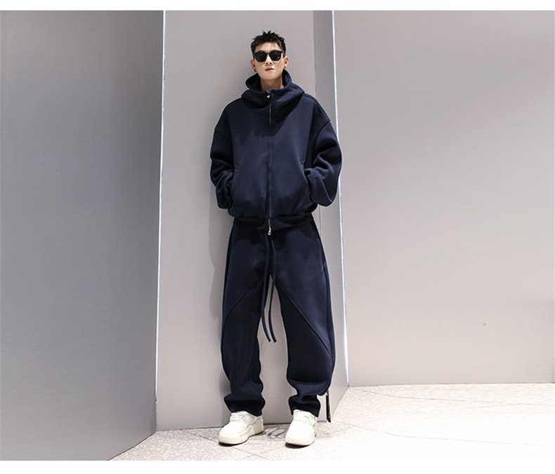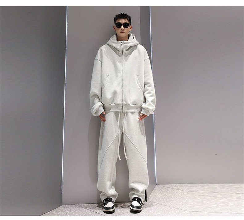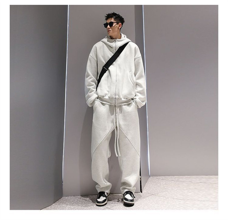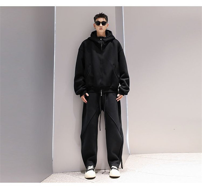 Korean Wen Nian Light Luxury Plus-Size Sports Suit for Men, 2025 Autumn and Winter Hooded Cardigan Sweatshirt Two-Piece Set