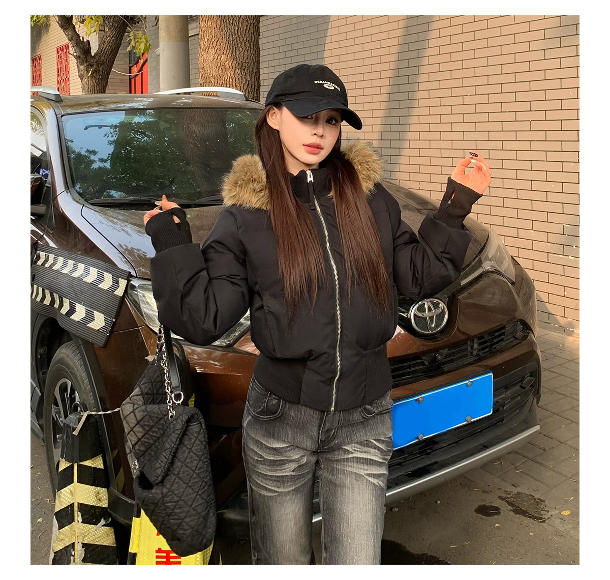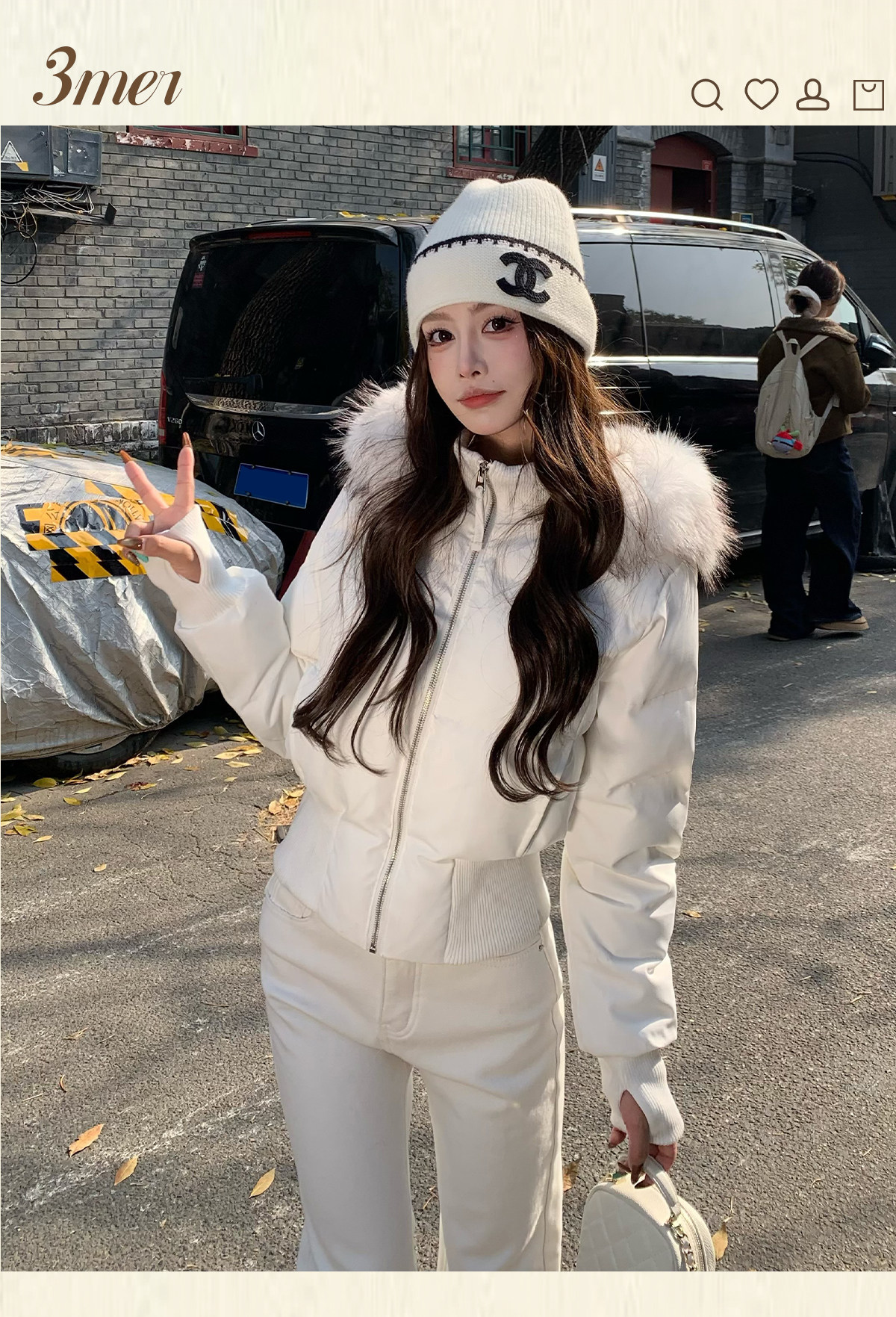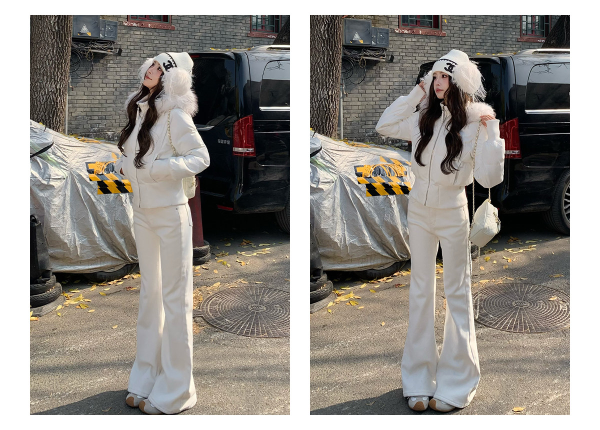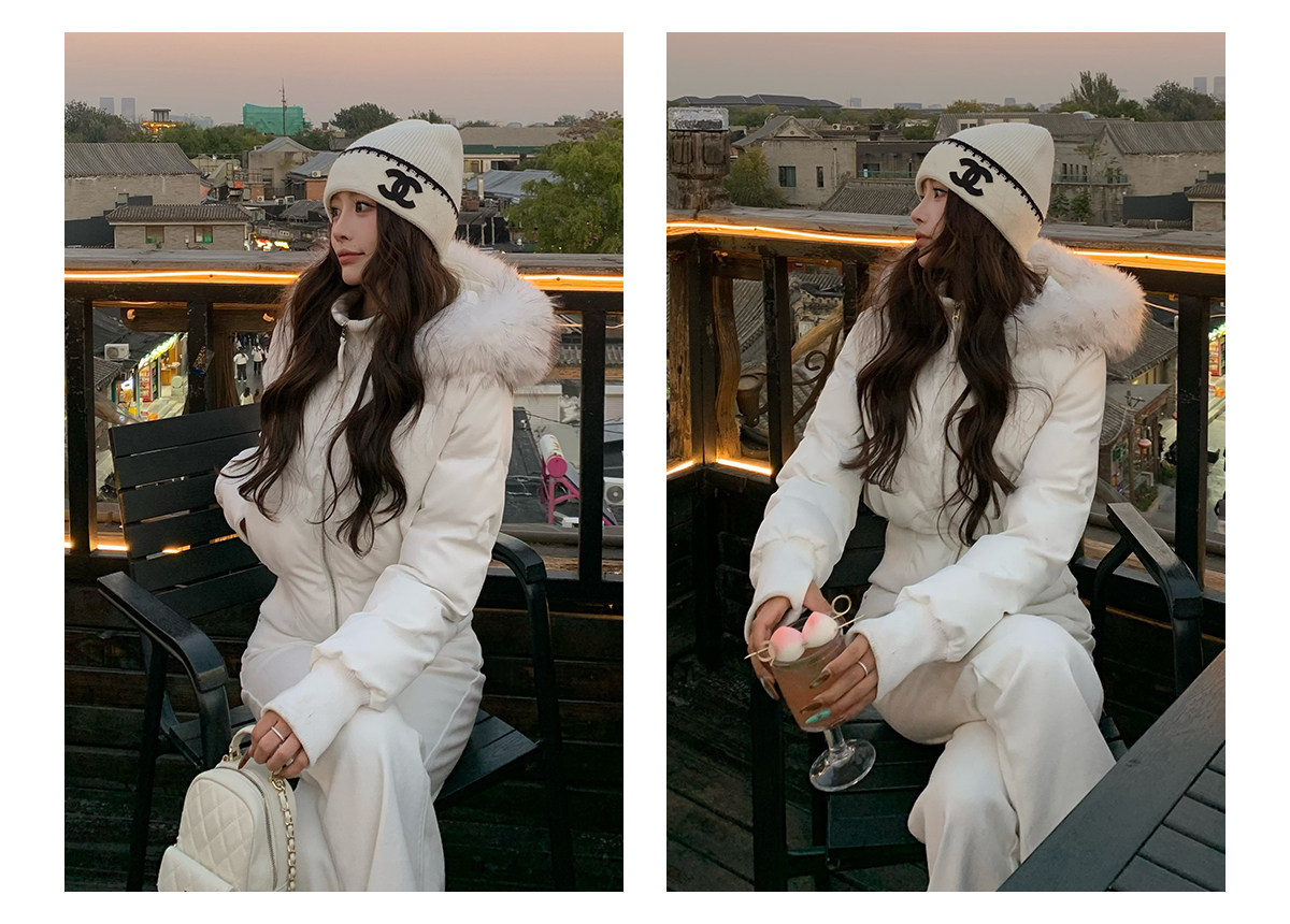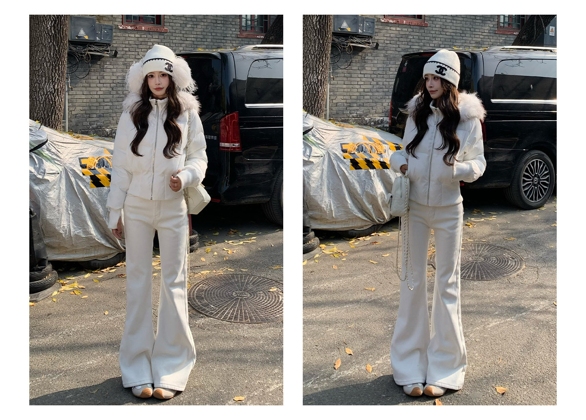 3Mer Oh Oh Sanmei Detachable Fur Collar Hooded down Cotton Jacket for Women, Winter Thickened Waist-Cinching Short Cotton Coat
