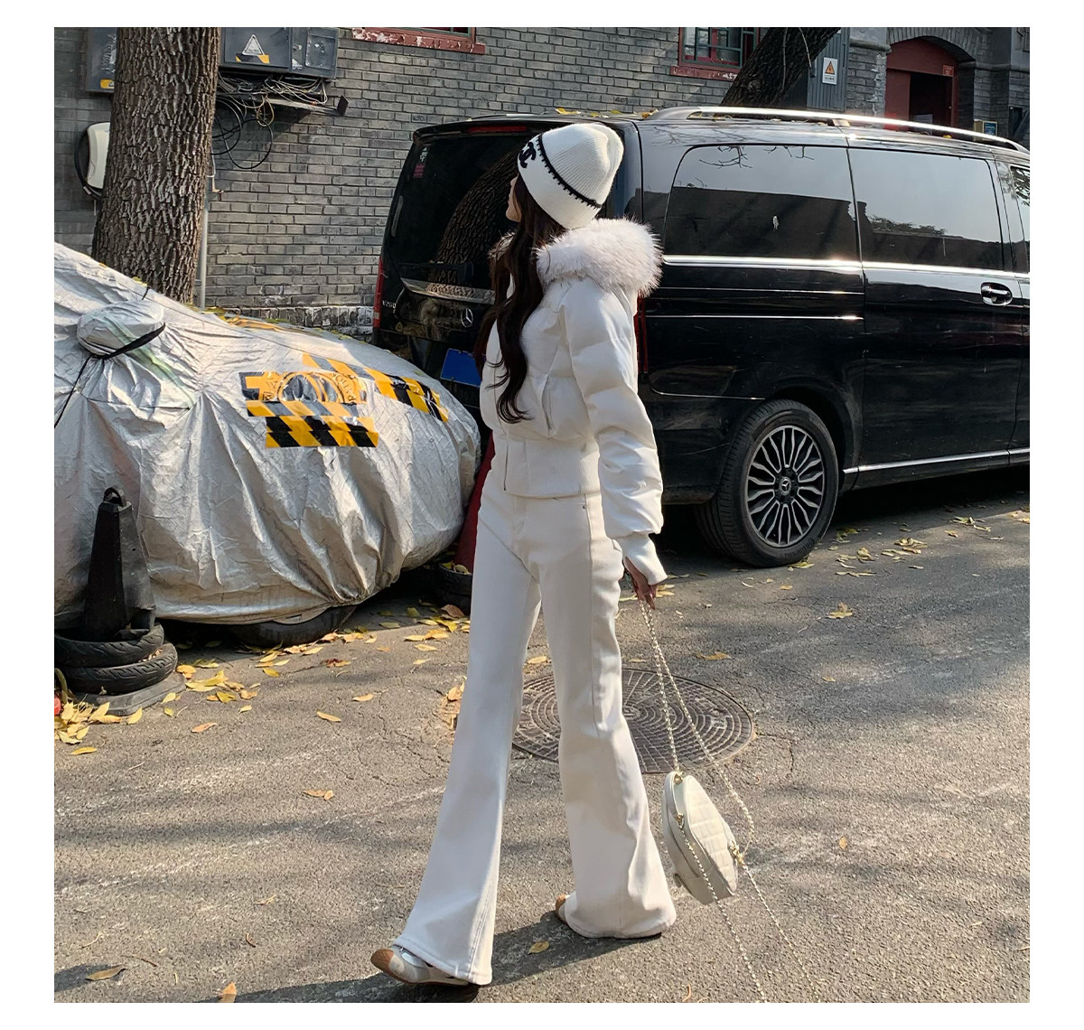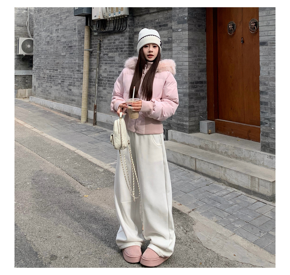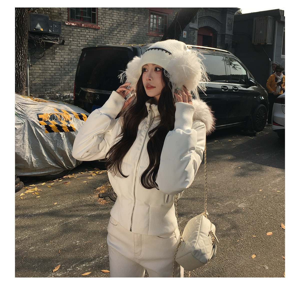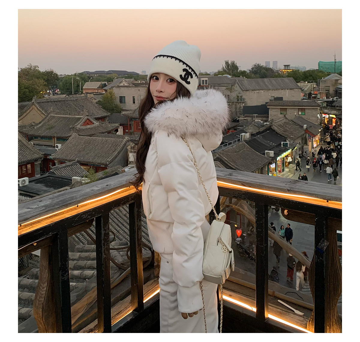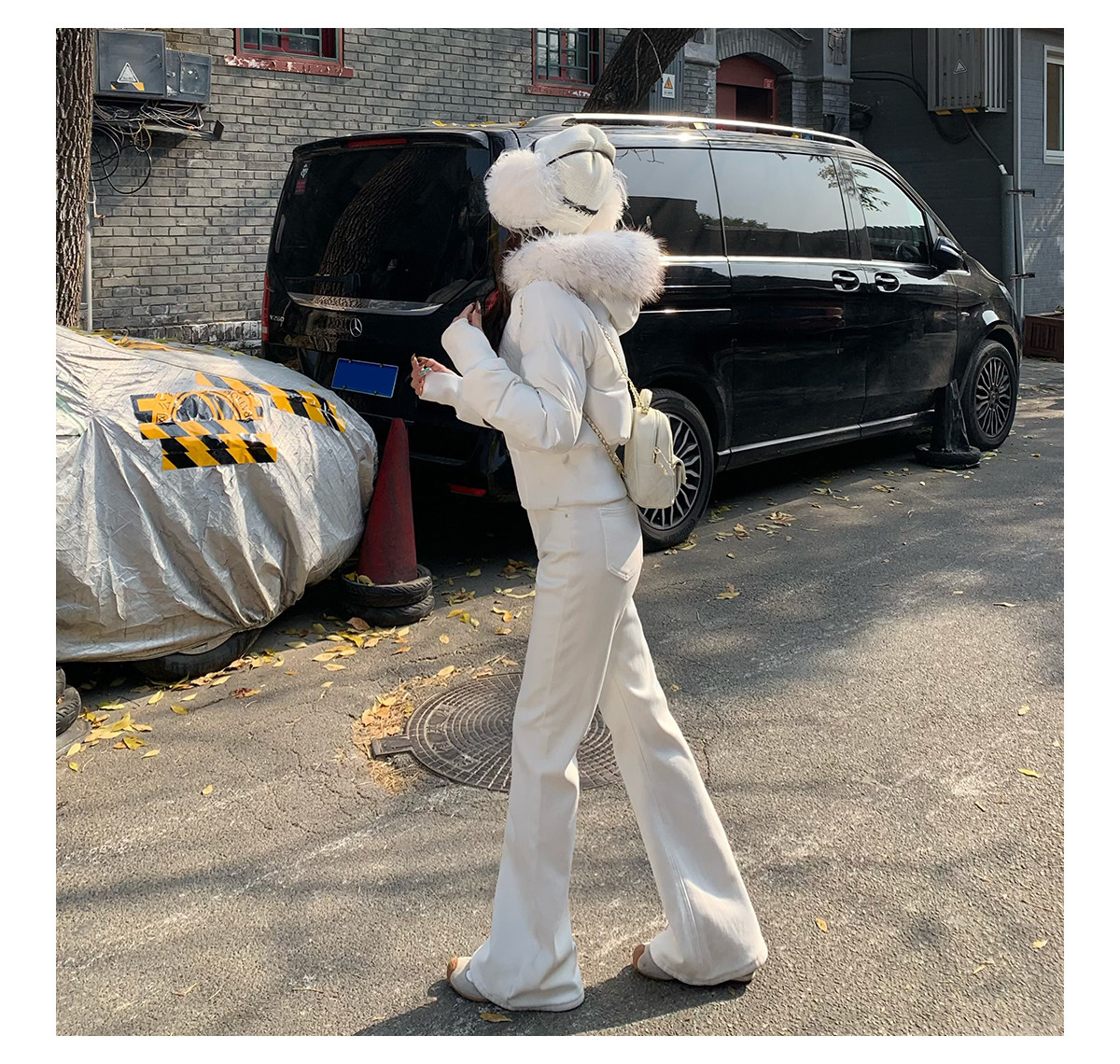 3Mer Oh Oh Sanmei Detachable Fur Collar Hooded down Cotton Jacket for Women, Winter Thickened Waist-Cinching Short Cotton Coat