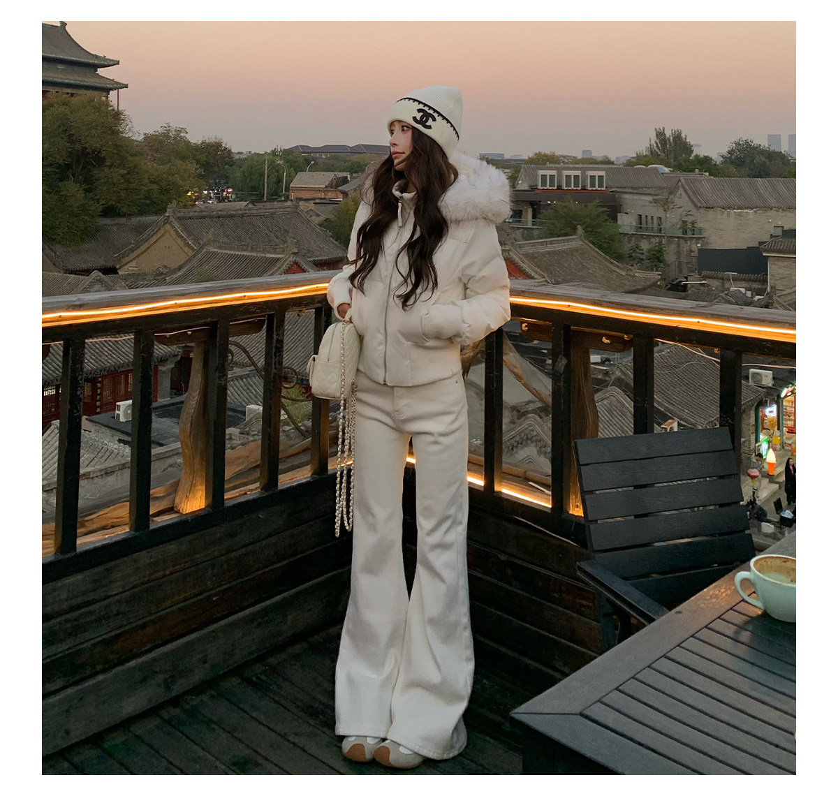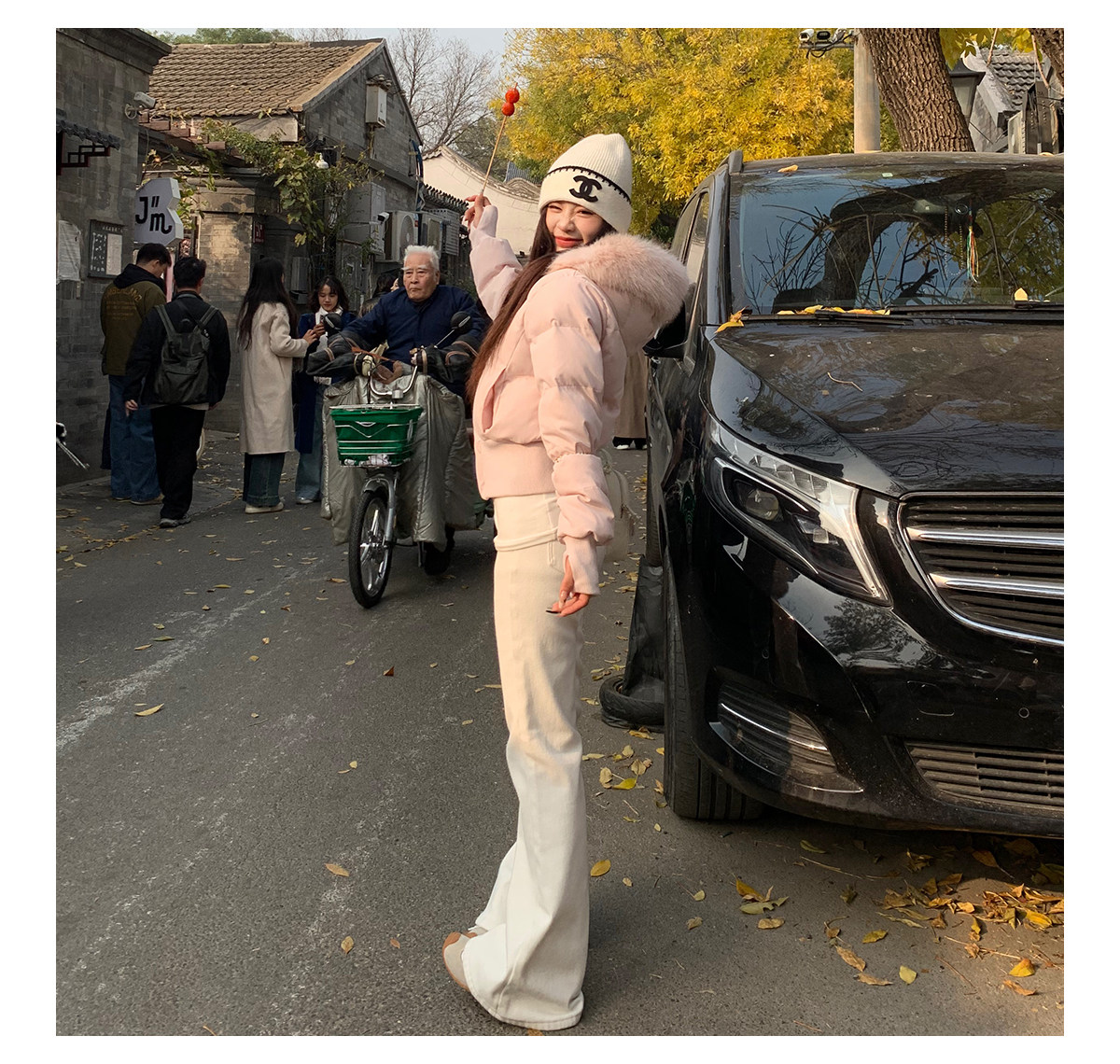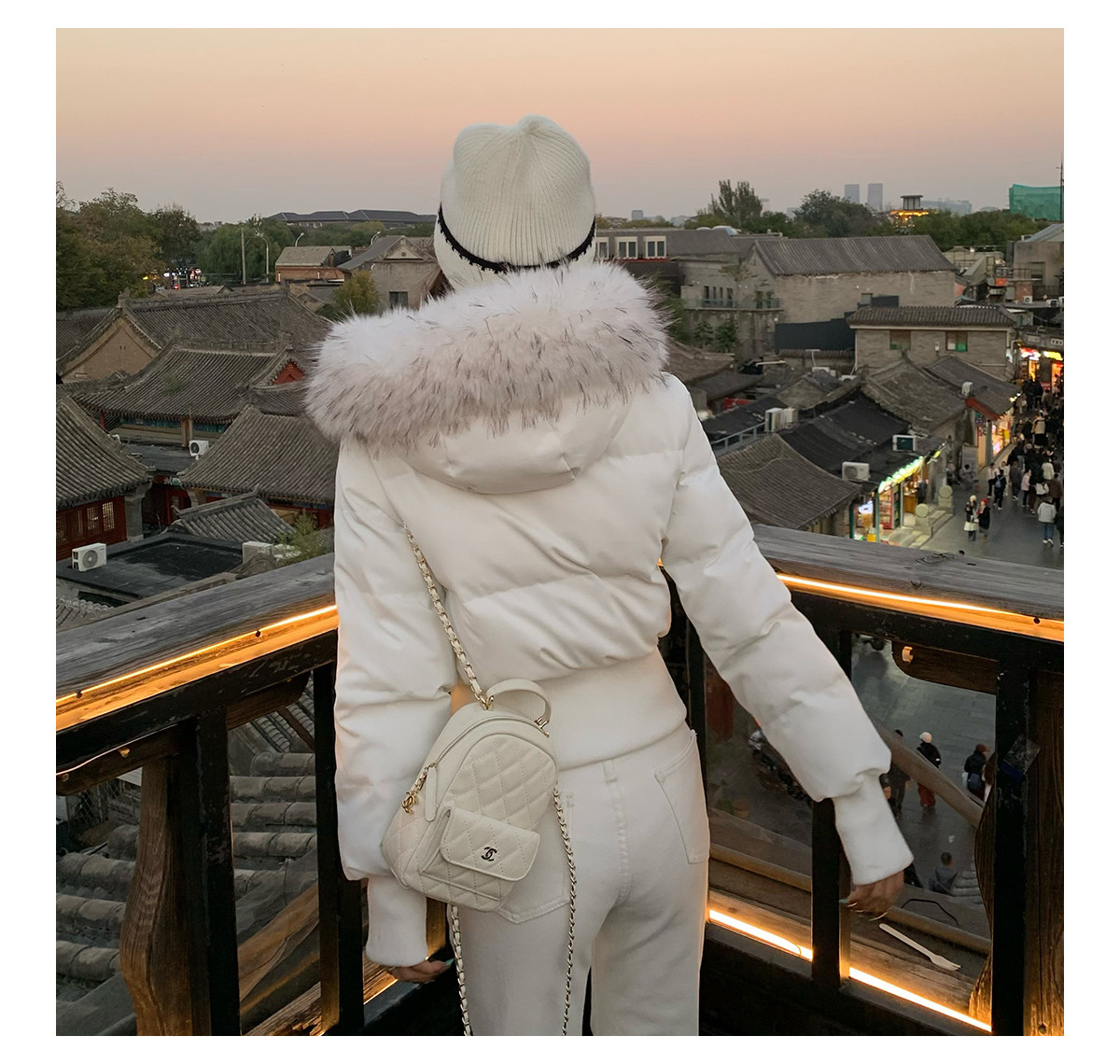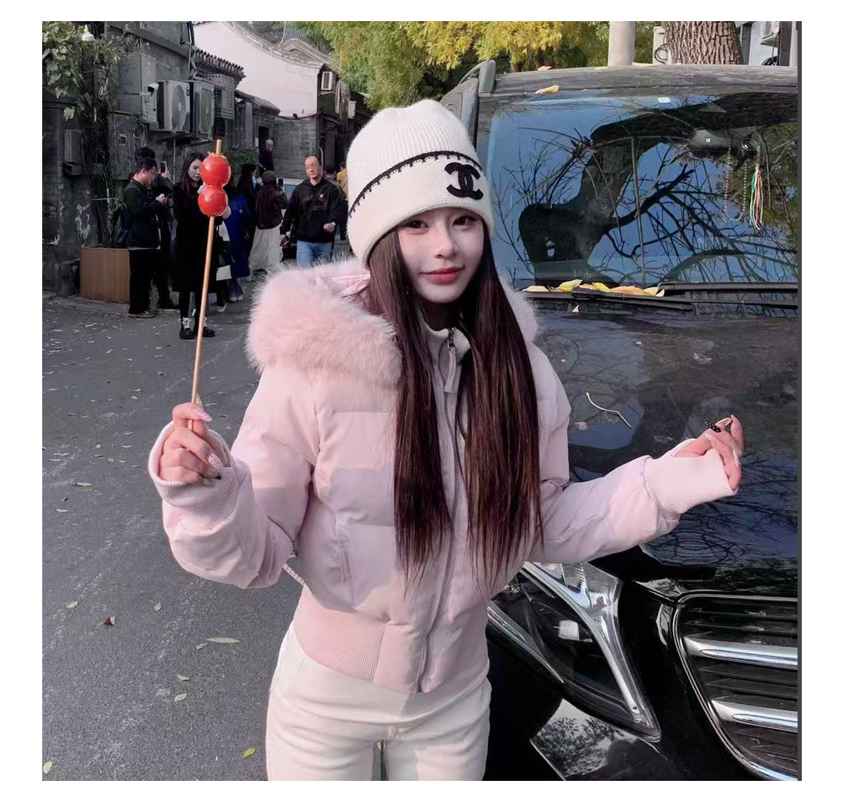 3Mer Oh Oh Sanmei Detachable Fur Collar Hooded down Cotton Jacket for Women, Winter Thickened Waist-Cinching Short Cotton Coat