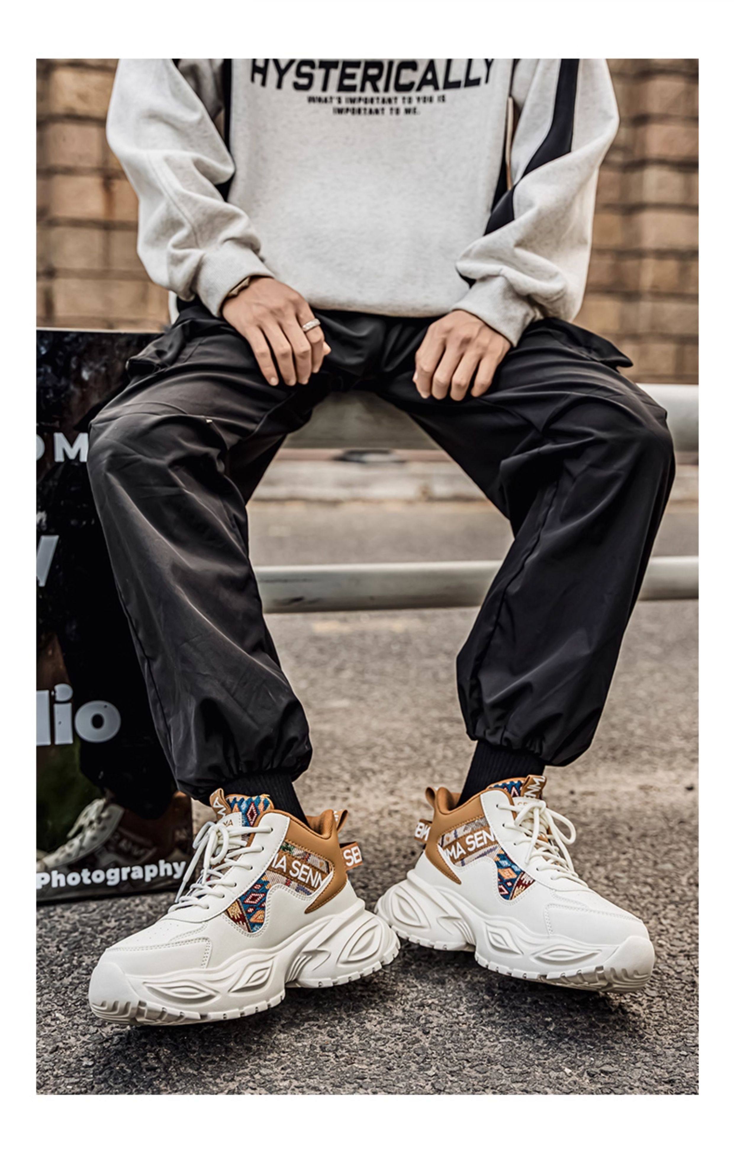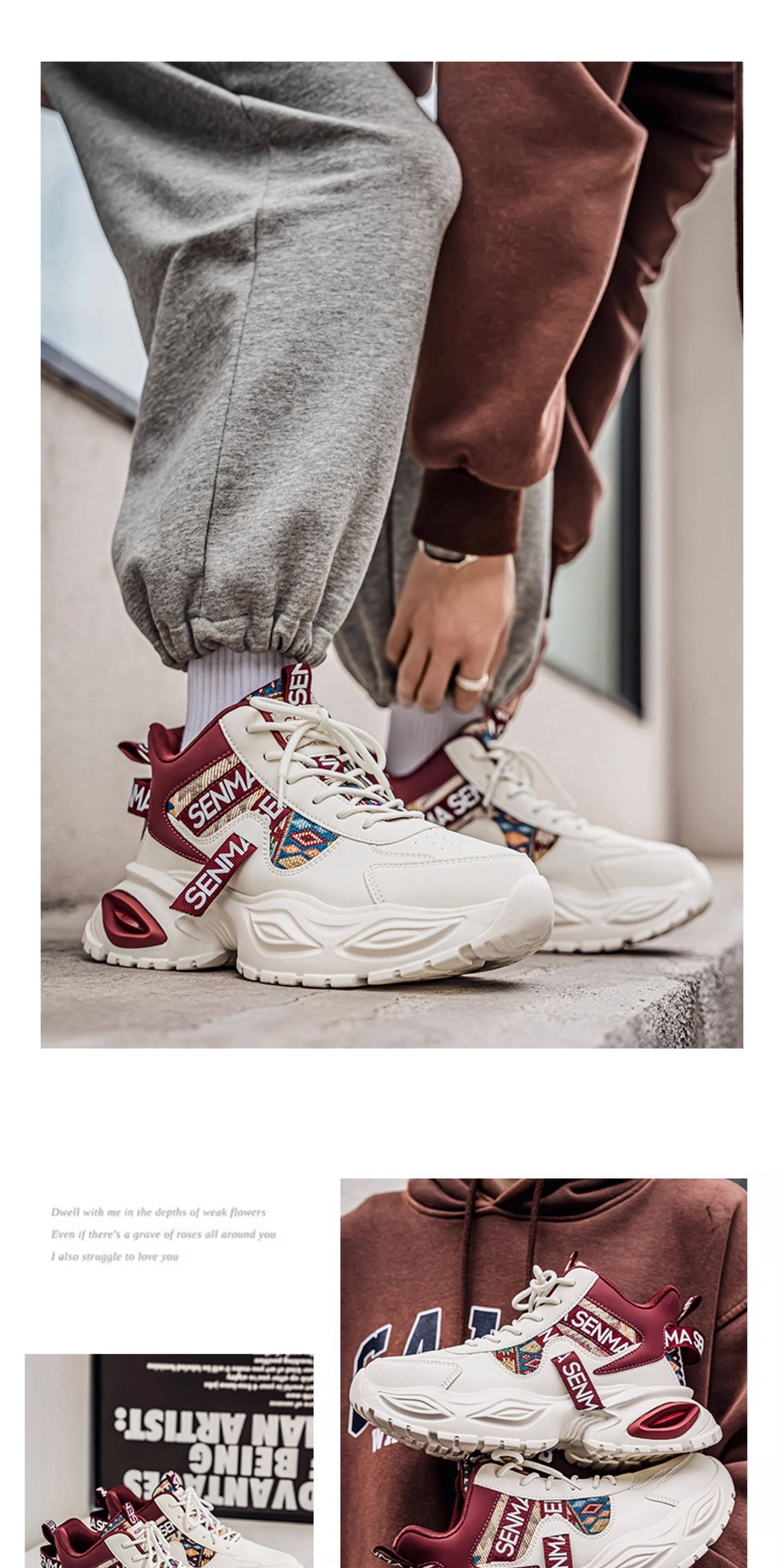 Semir High-Top Men's Shoes, Winter Fleece-Lined Cotton Shoes, Sports Casual Leather Running Shoes, Thick-Soled Height-Increasing White Dad Sneakers, Trendy Shoes