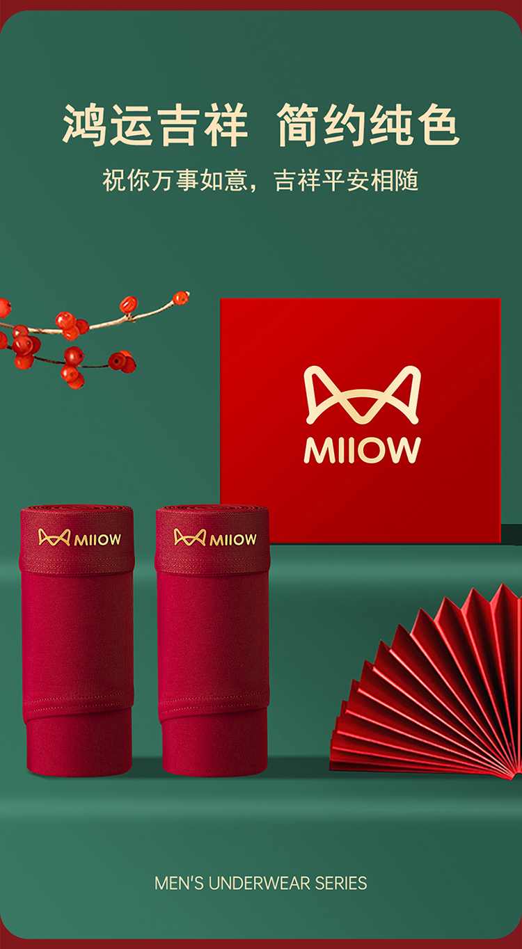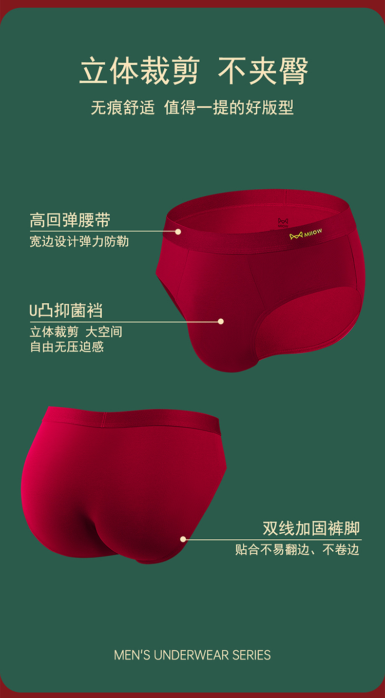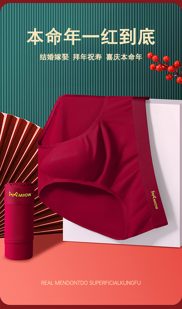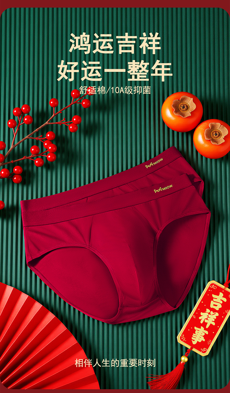 Cat-Themed Men's Underwear for the Year of Birth, Red Briefs, Men's Cotton Antibacterial Shorts