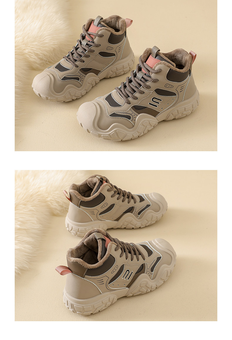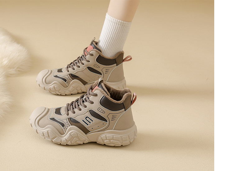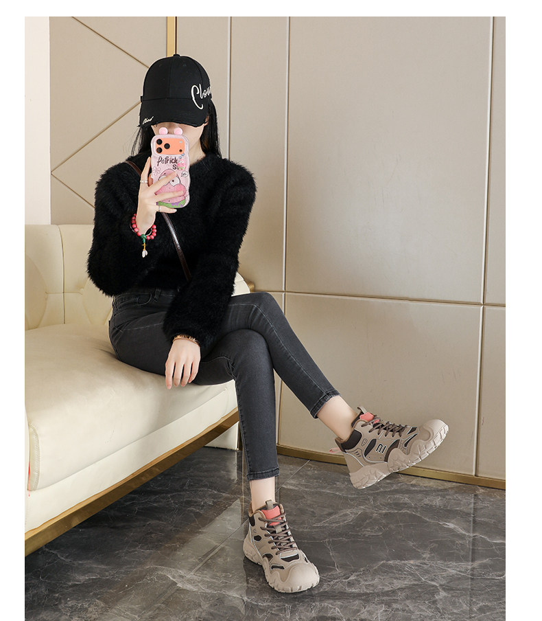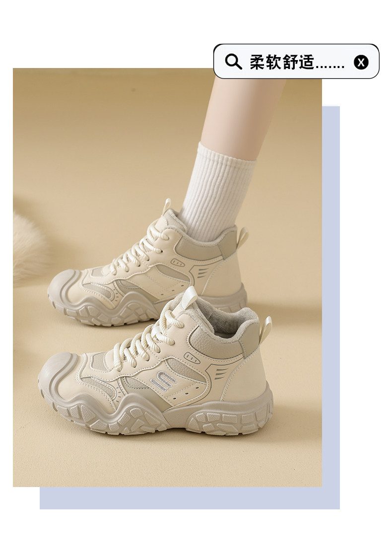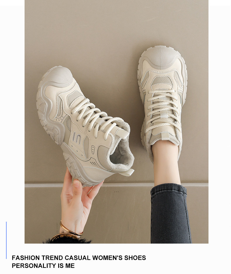 Genuine Leather High-Top Shoes for Women, 2025 New Winter Style, Fleece-Lined and Thickened Snow Cotton Shoes, Non-Slip Soft-Soled Sports Dad Shoes