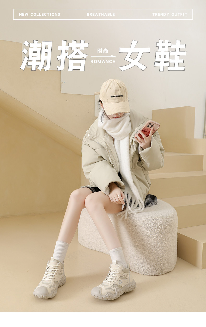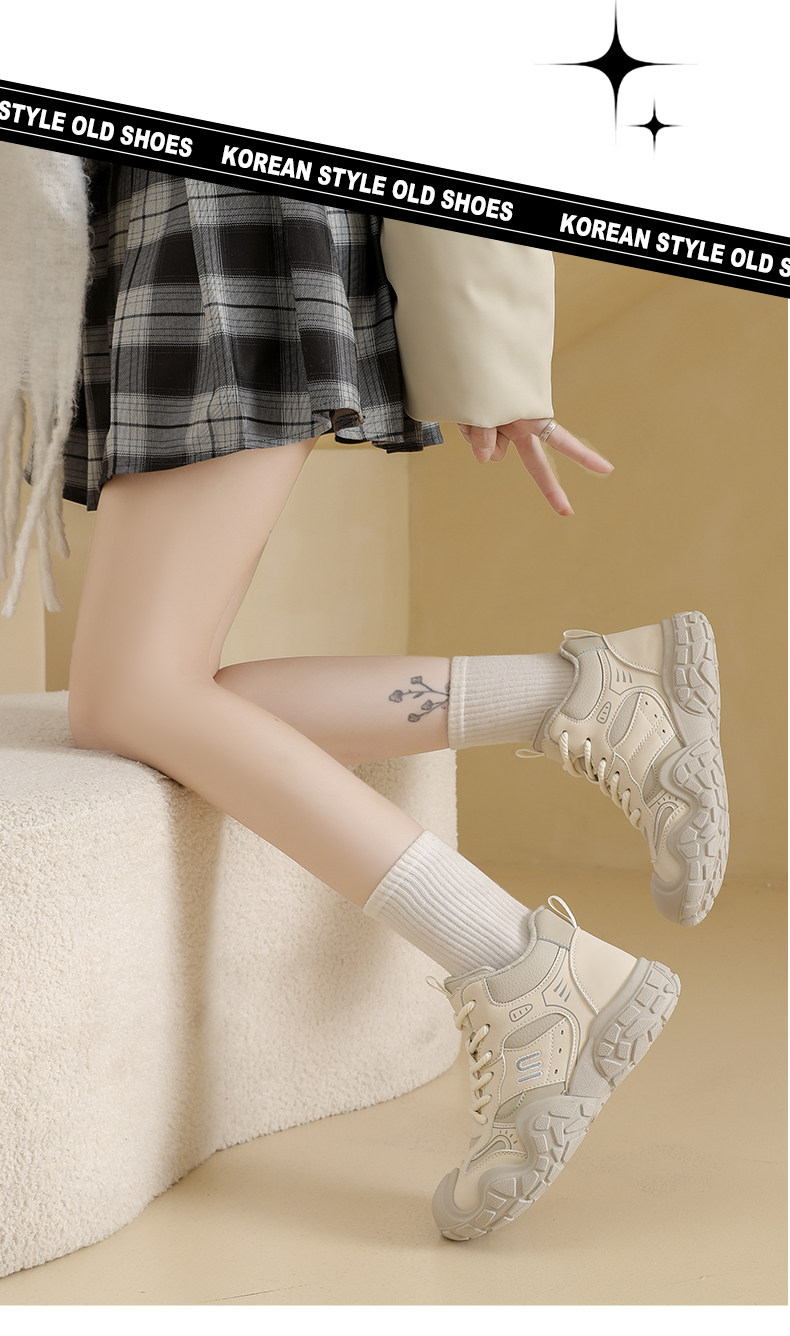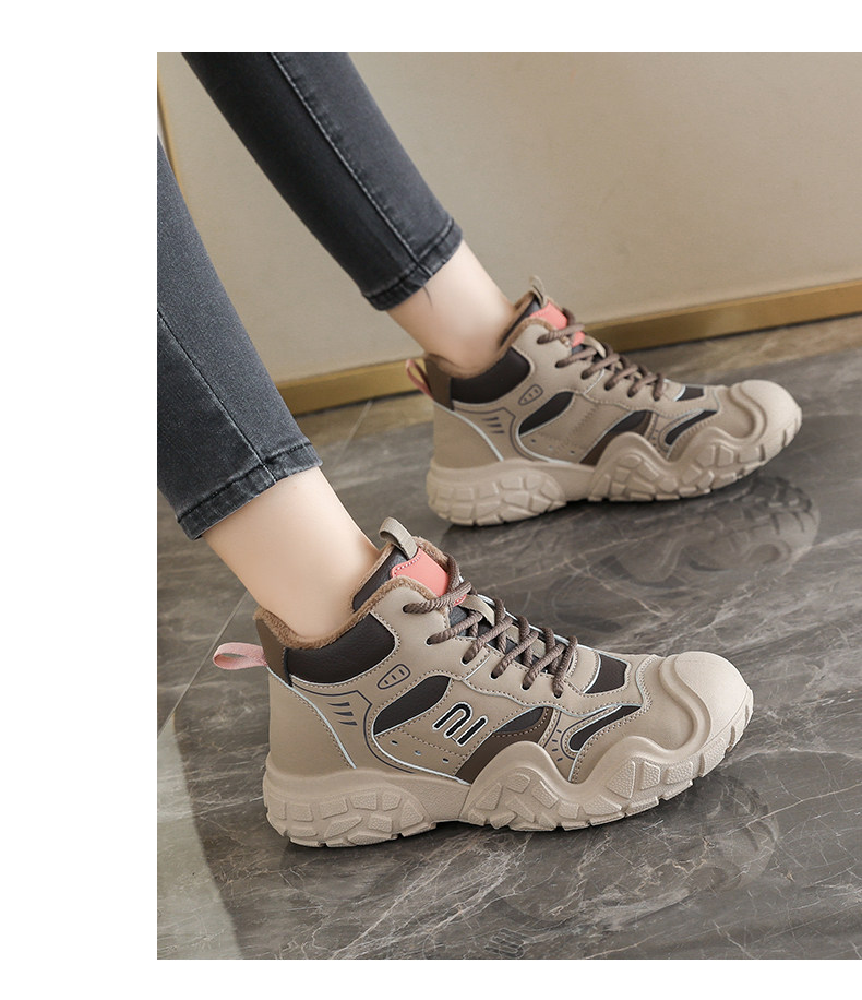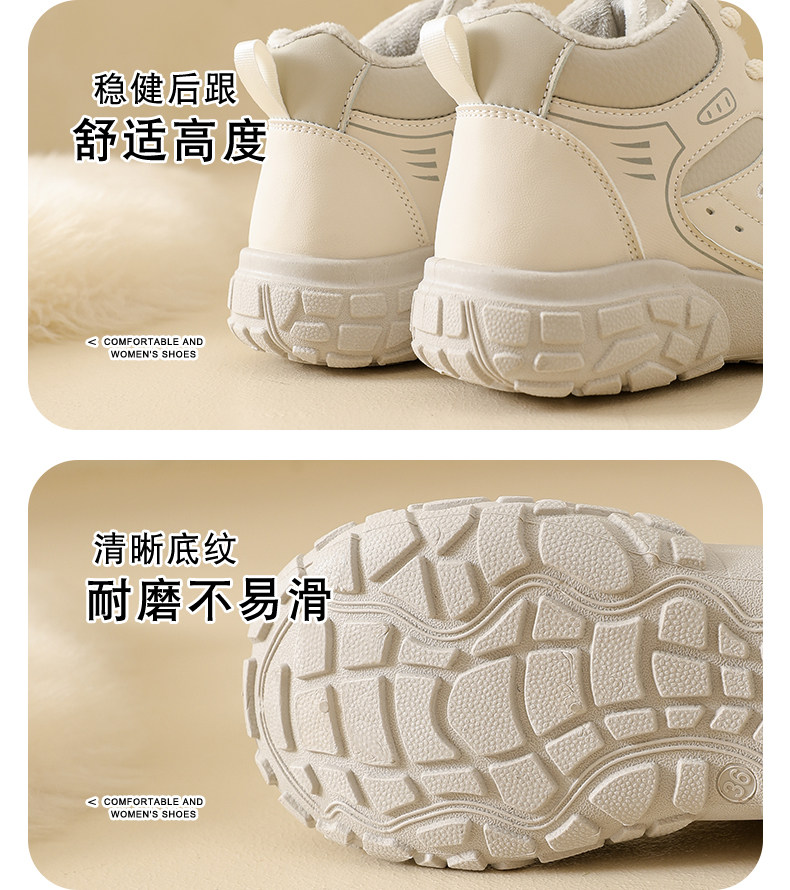Genuine Leather High-Top Shoes for Women, 2025 New Winter Style, Fleece-Lined and Thickened Snow Cotton Shoes, Non-Slip Soft-Soled Sports Dad Shoes