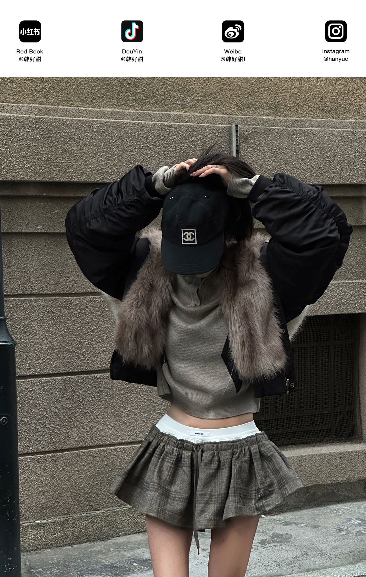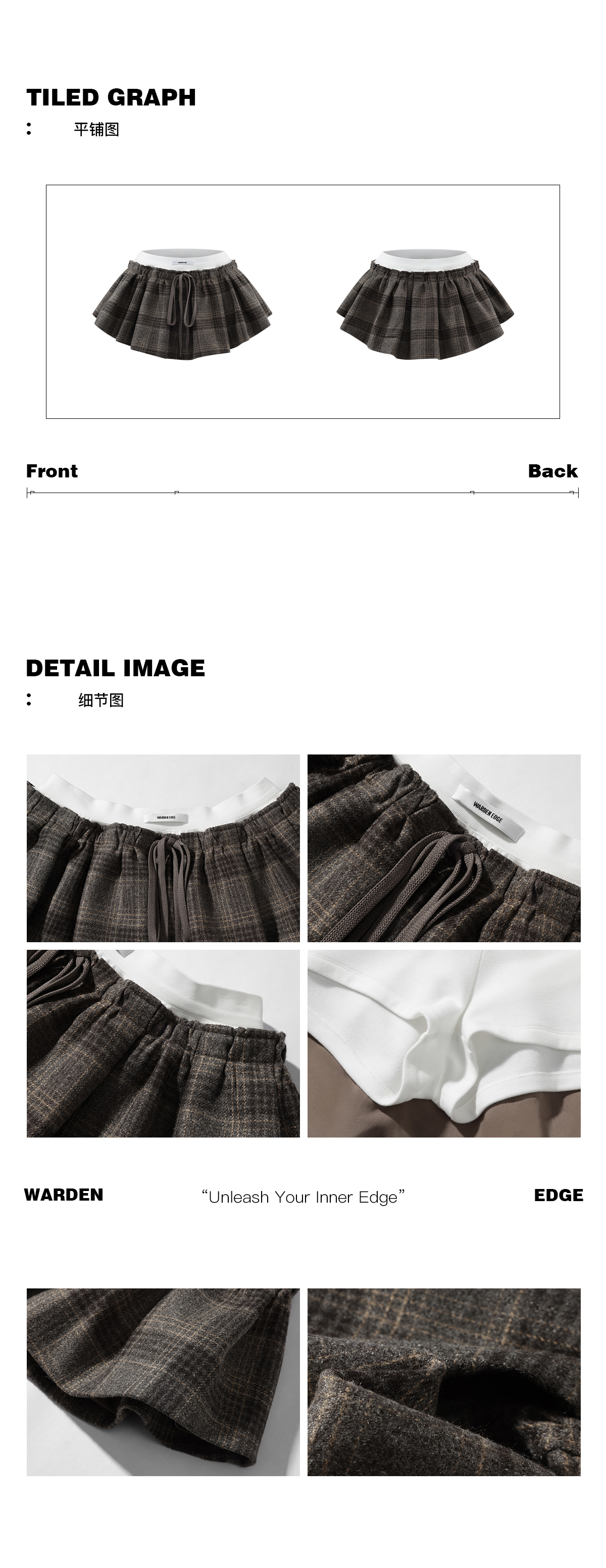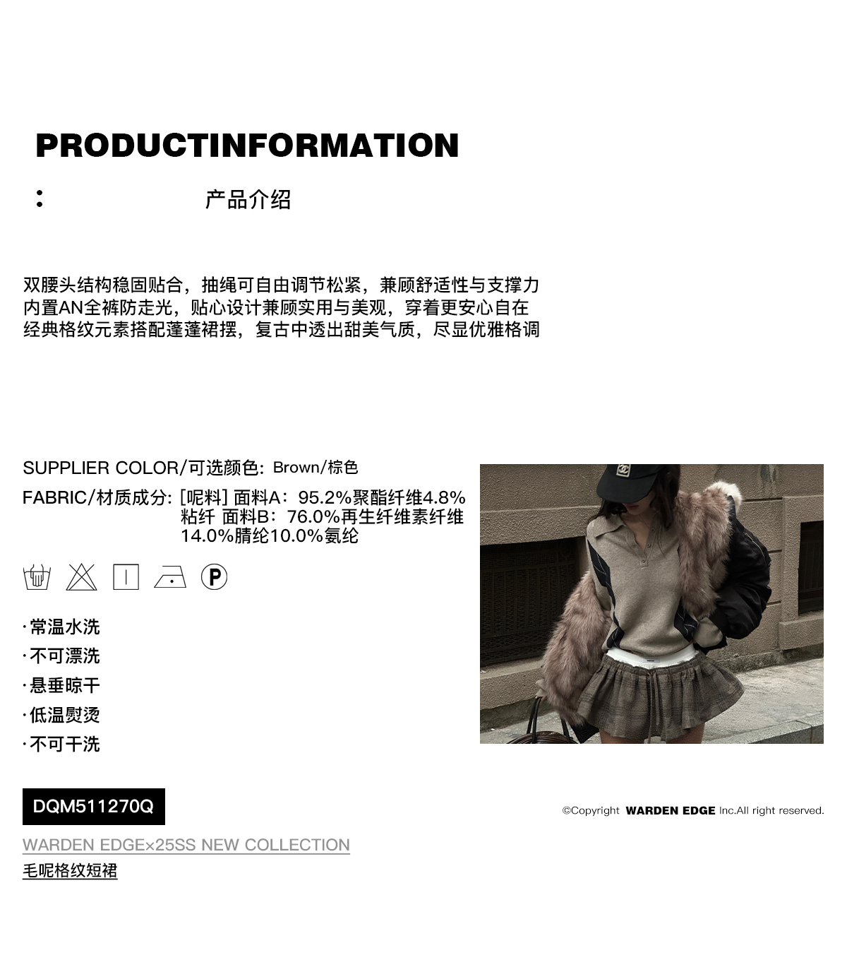 Han Hao Tian Warden Edge Brown Woolen Plaid Short Skirt for Women Winter Hot Girl Patchwork Low-Waist A-Line Skirt