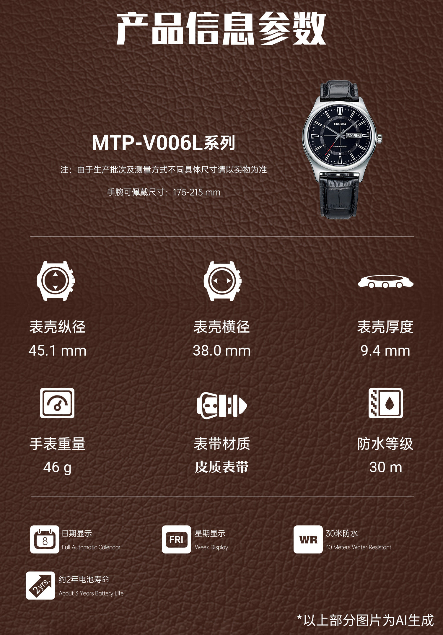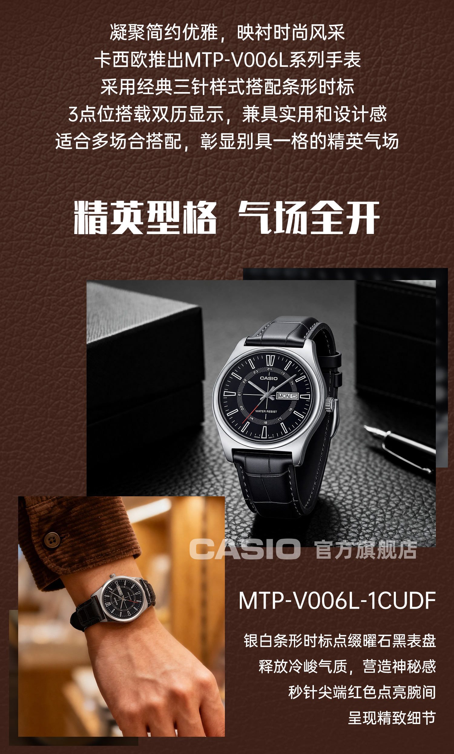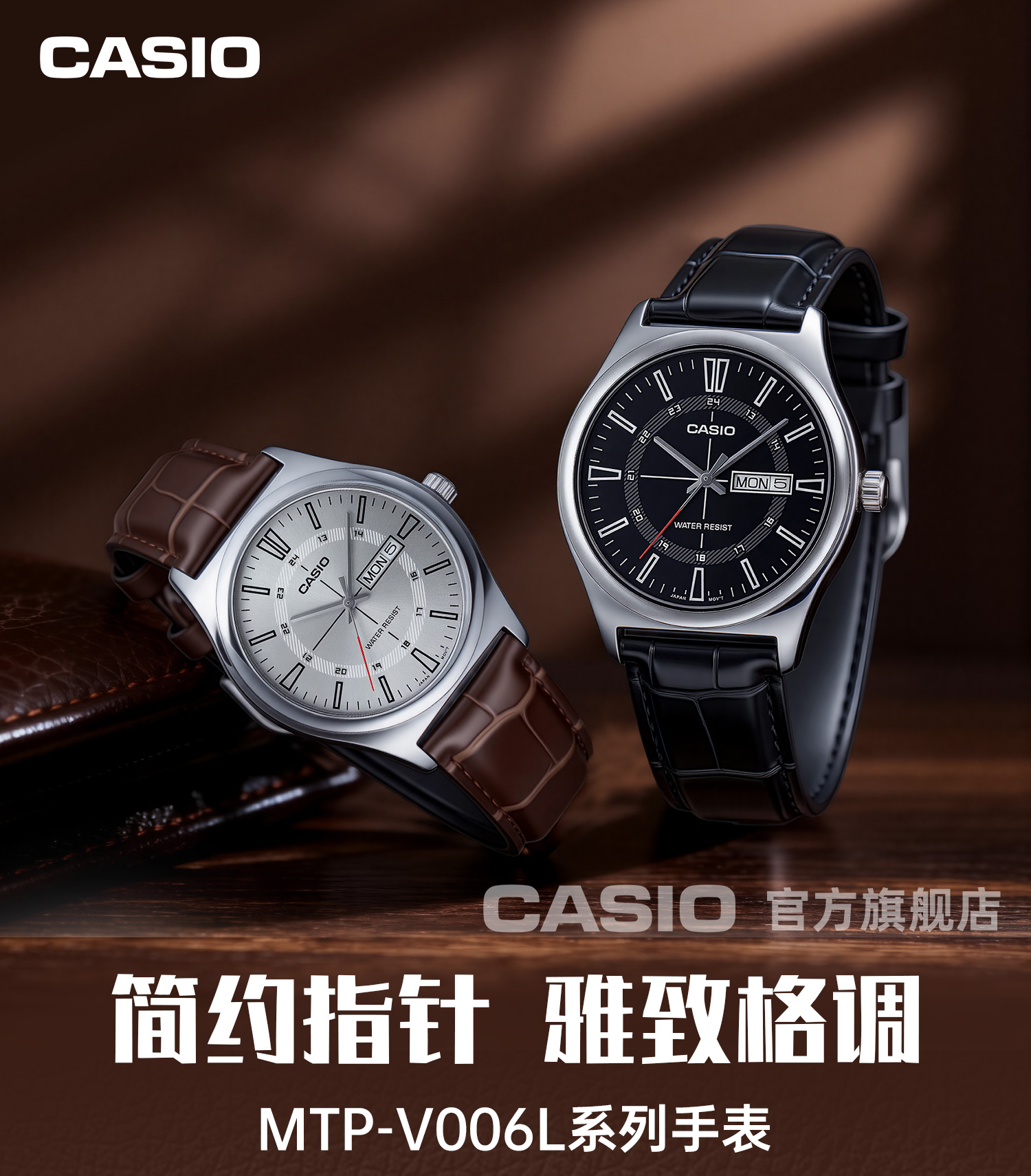Casio Flagship Store Mtp-V006L Simple Three-Hand Pointer Dual Calendar Trendy Retro Watch Men's Watch