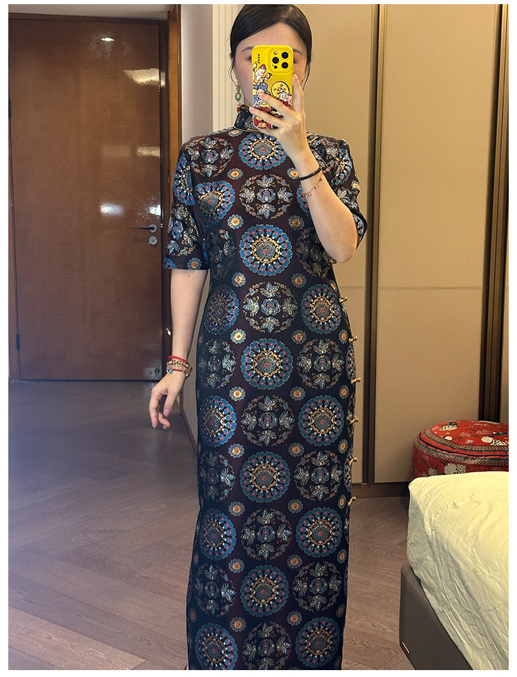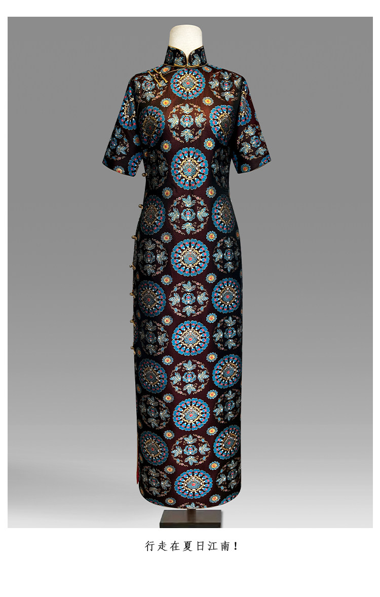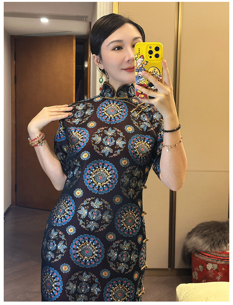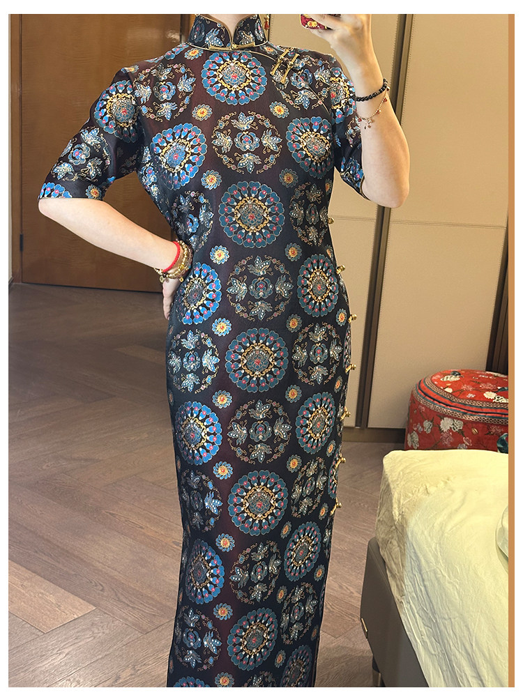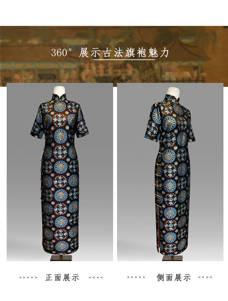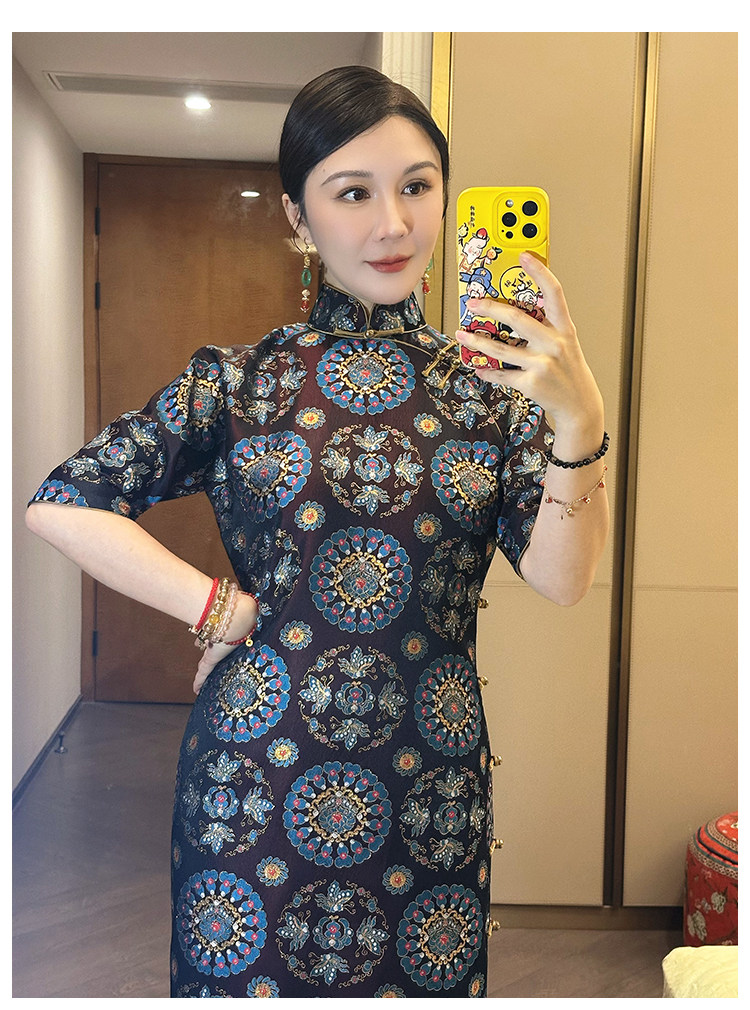 Moonlight Coolness 25 Autumn Green Phoenix Crown Suzhou Grand Run Brocade Stand Collar Slim Fit Vintage Cheongsam with Five-Quarter Sleeves