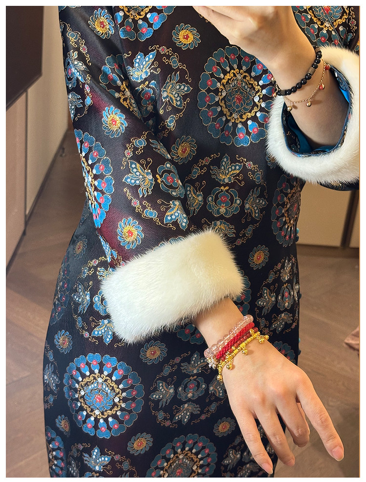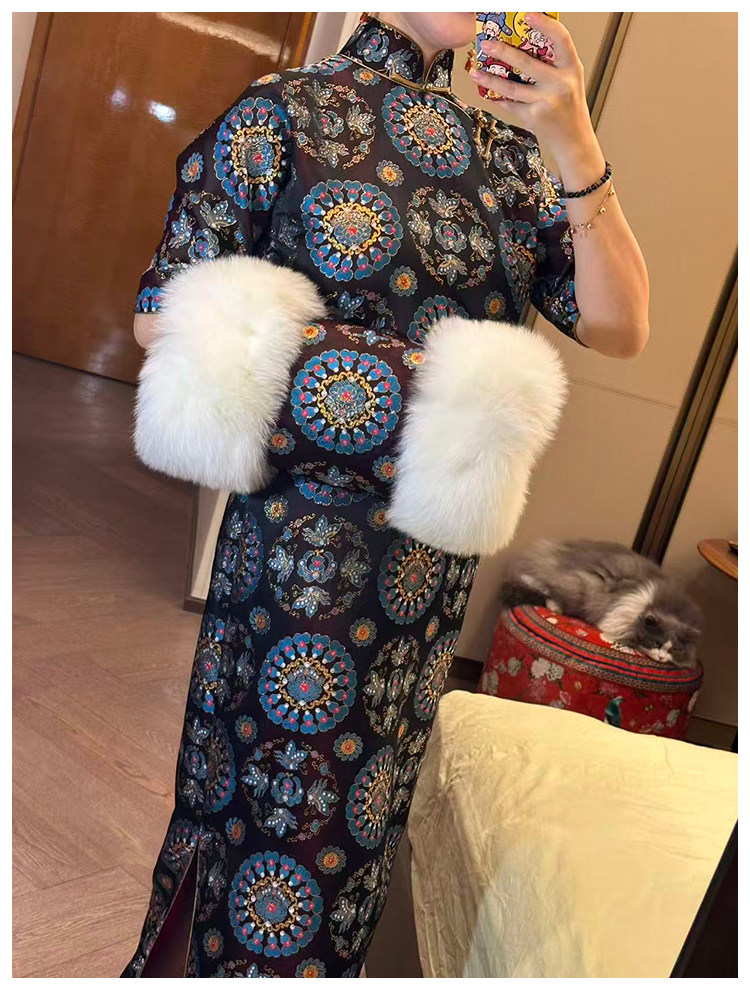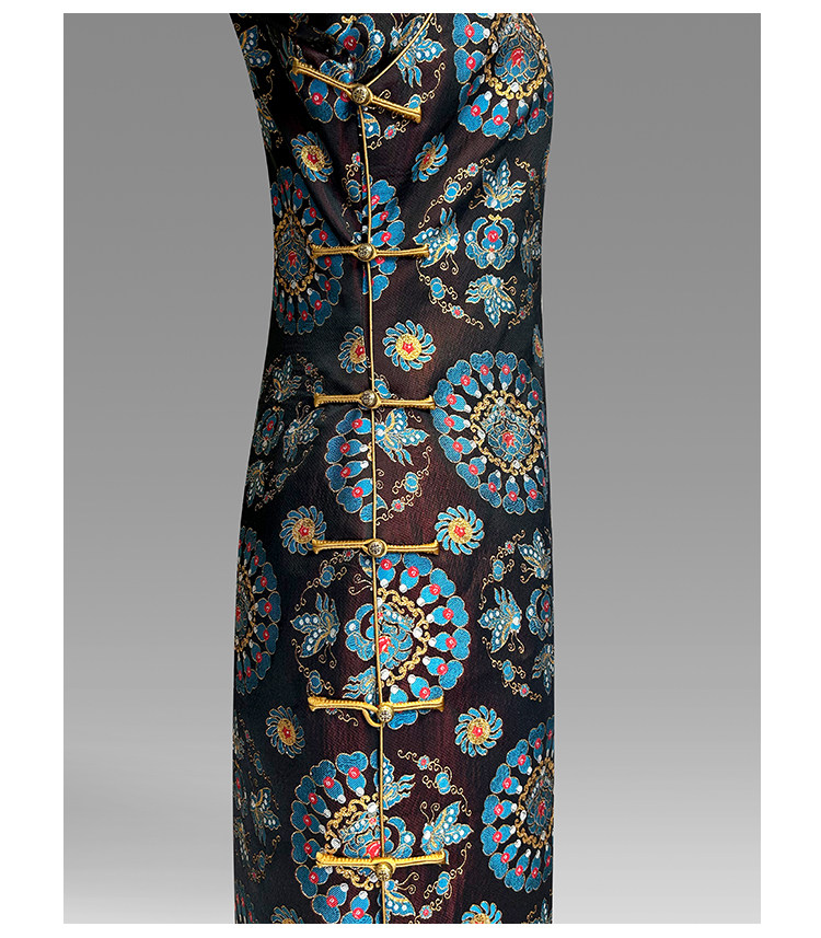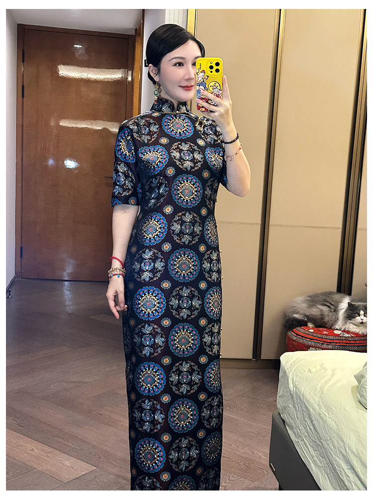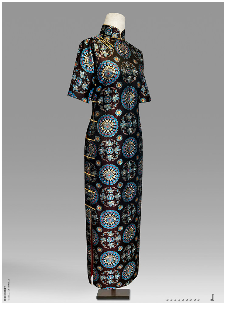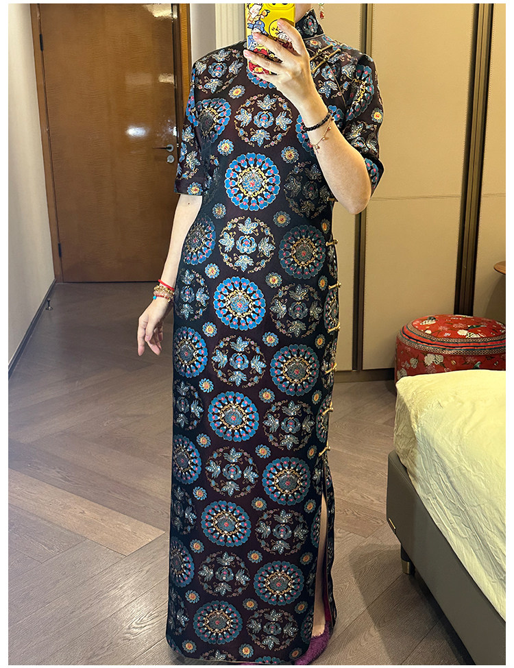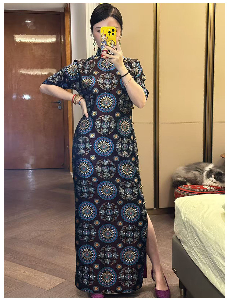 Moonlight Coolness 25 Autumn Green Phoenix Crown Suzhou Grand Run Brocade Stand Collar Slim Fit Vintage Cheongsam with Five-Quarter Sleeves