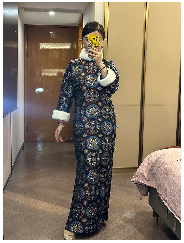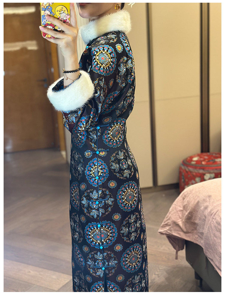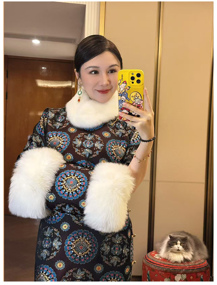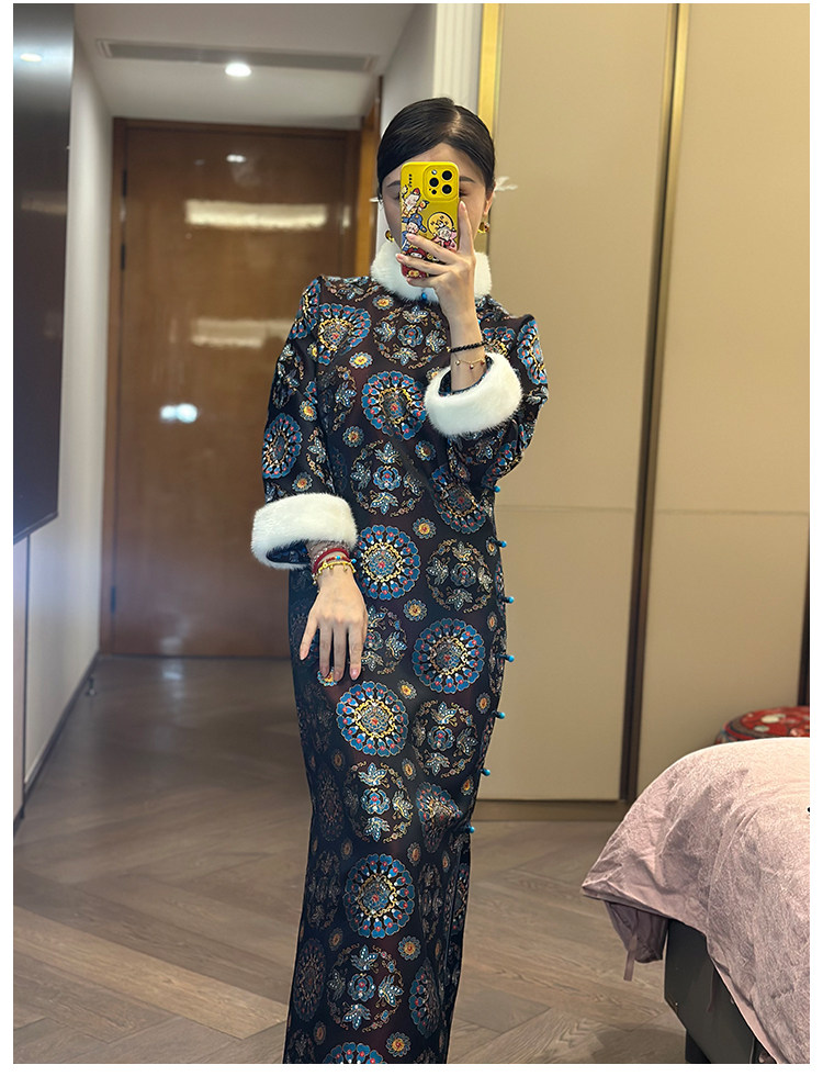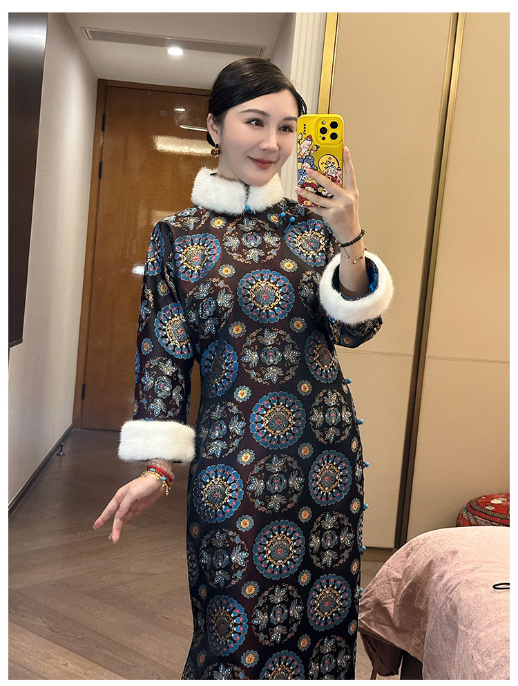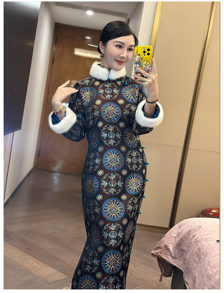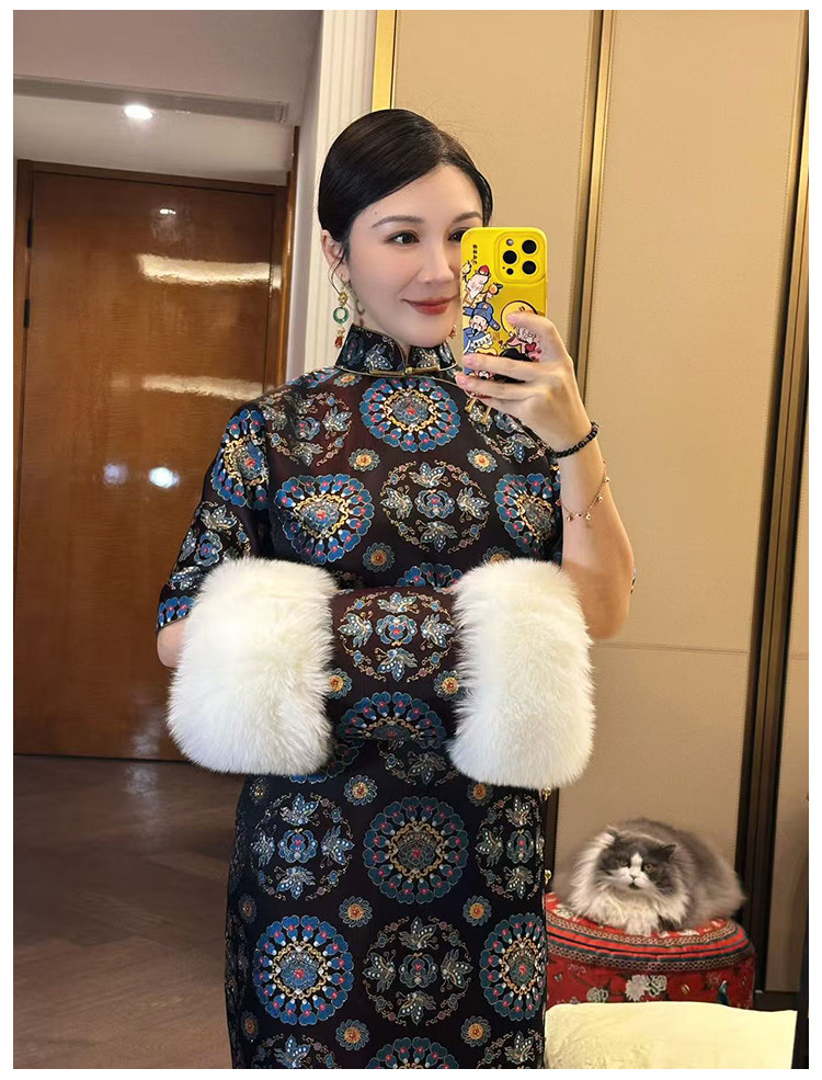 Moonlight Coolness 25 Autumn Green Phoenix Crown Suzhou Grand Run Brocade Stand Collar Slim Fit Vintage Cheongsam with Five-Quarter Sleeves