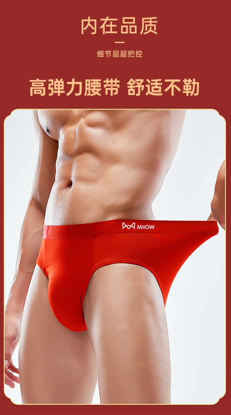 Cat-Themed Men's Underwear Briefs for the Year of the Horse 2026, New Model in Bright Red with Pure Cotton Crotch, Men's Shorts