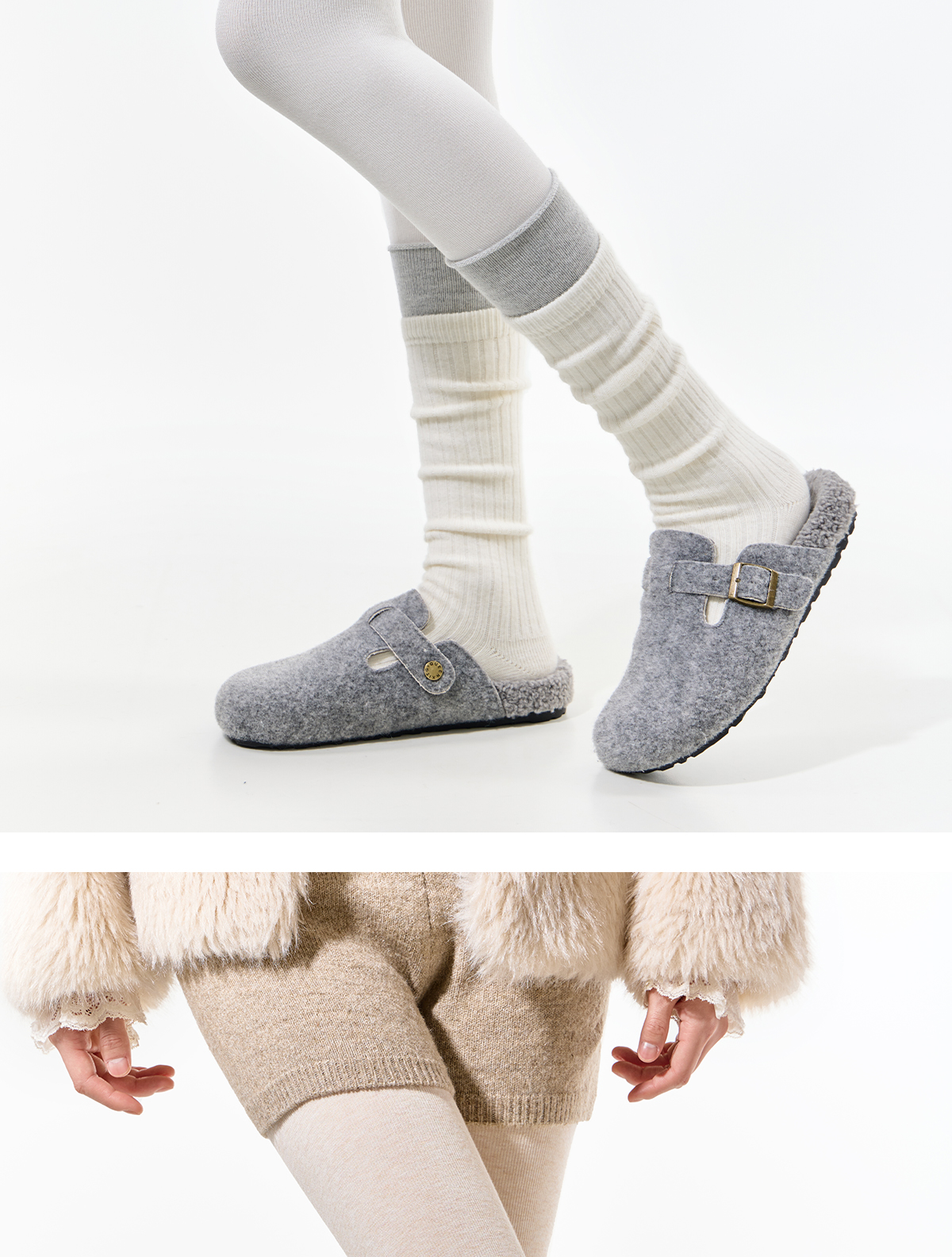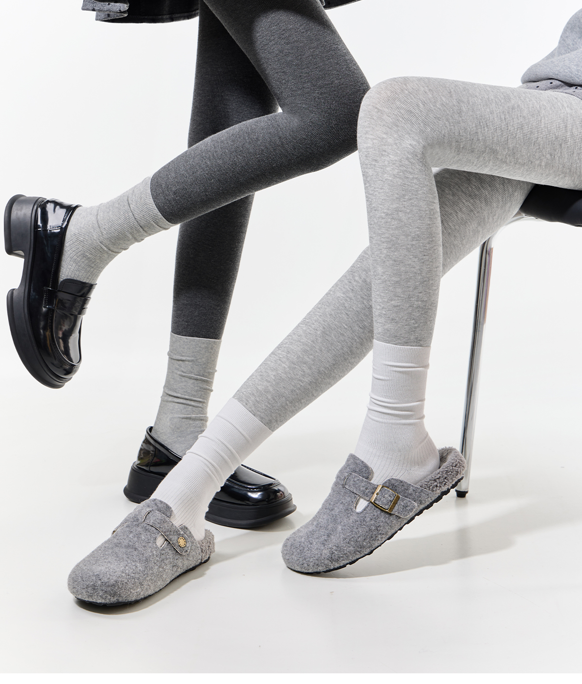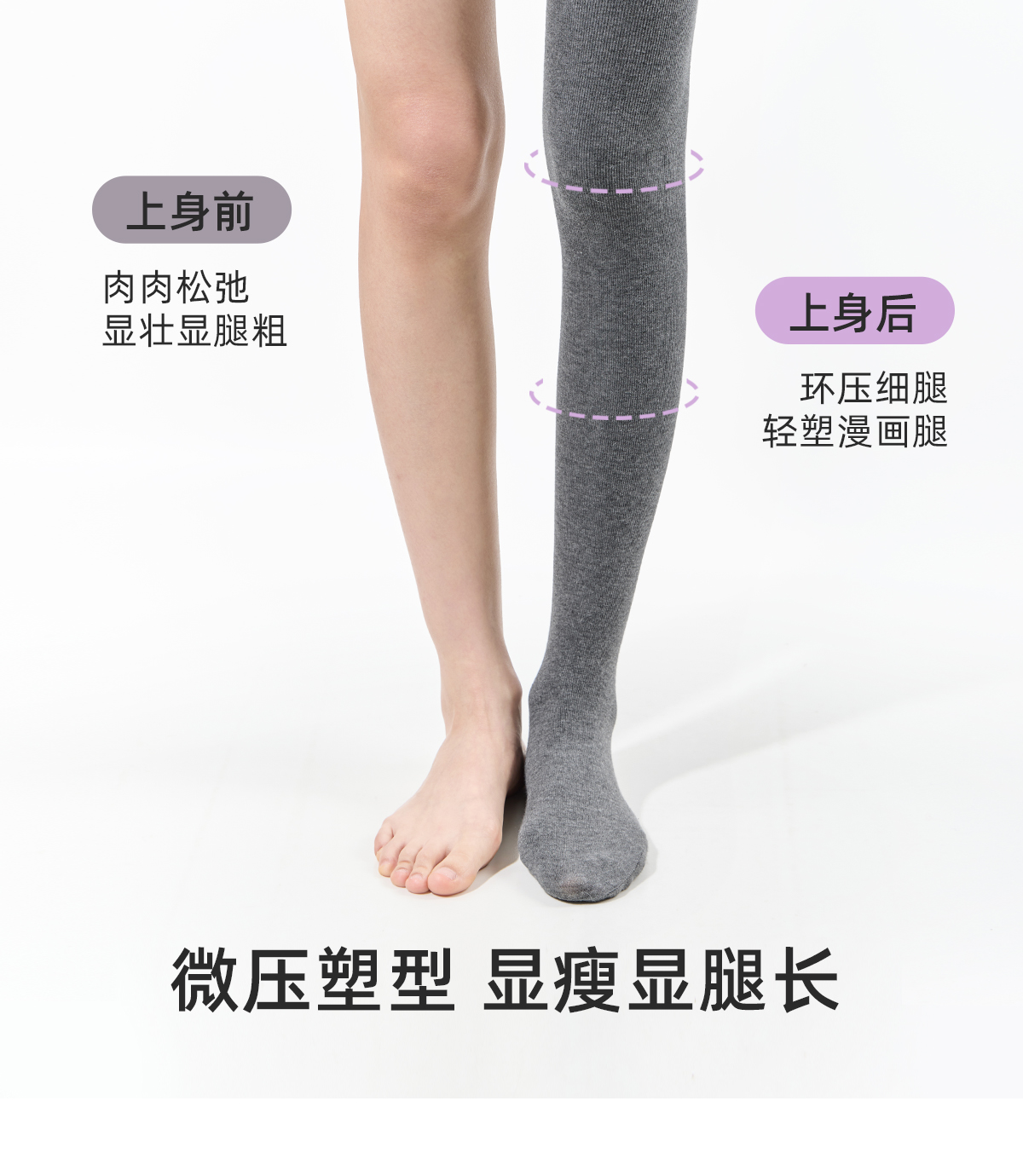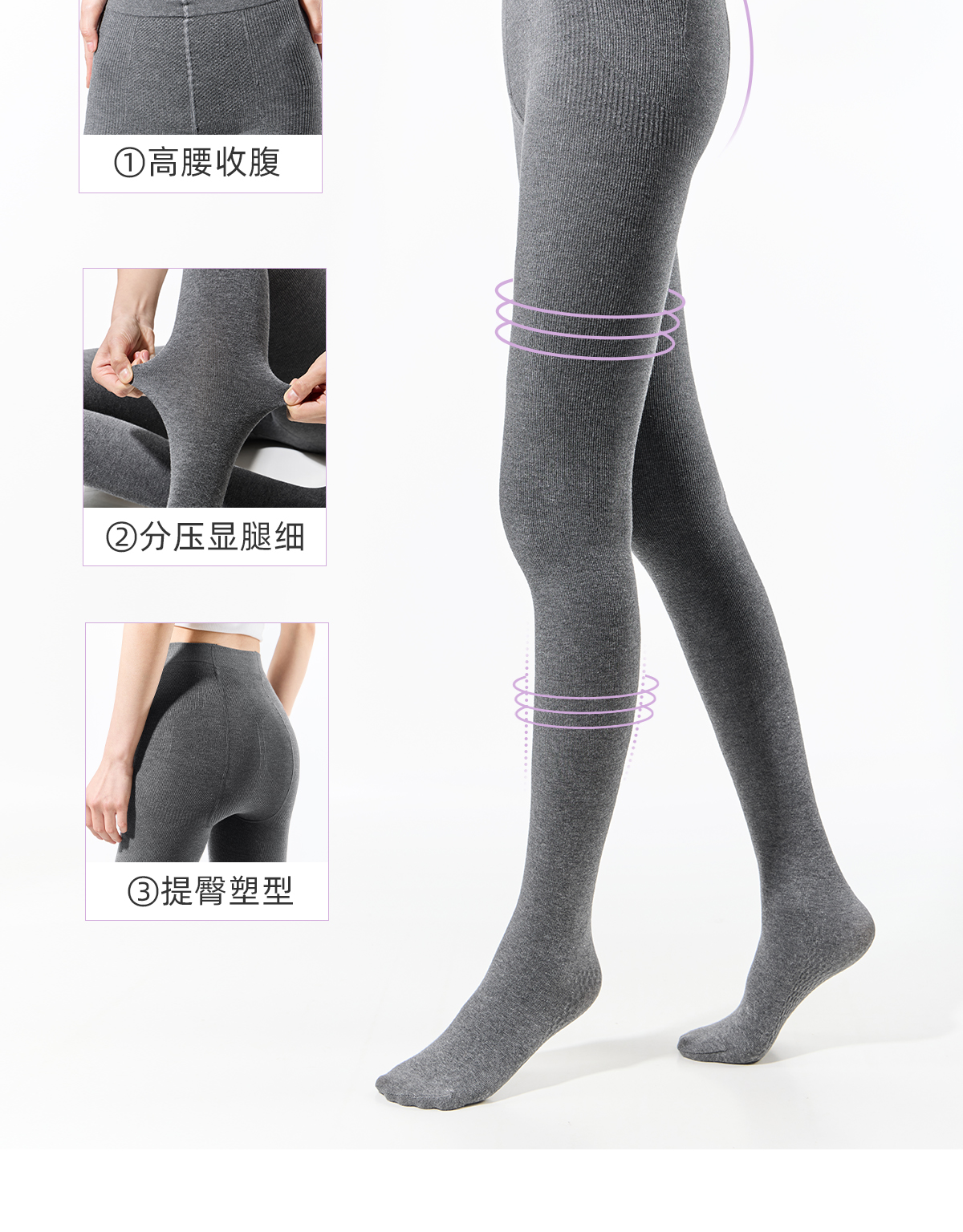 Purpleguys Dark Gray Pantyhose for Women Winter Vertical Stripe Pressure Slimming Thick Cashmere Outerwear Light Gray Leggings