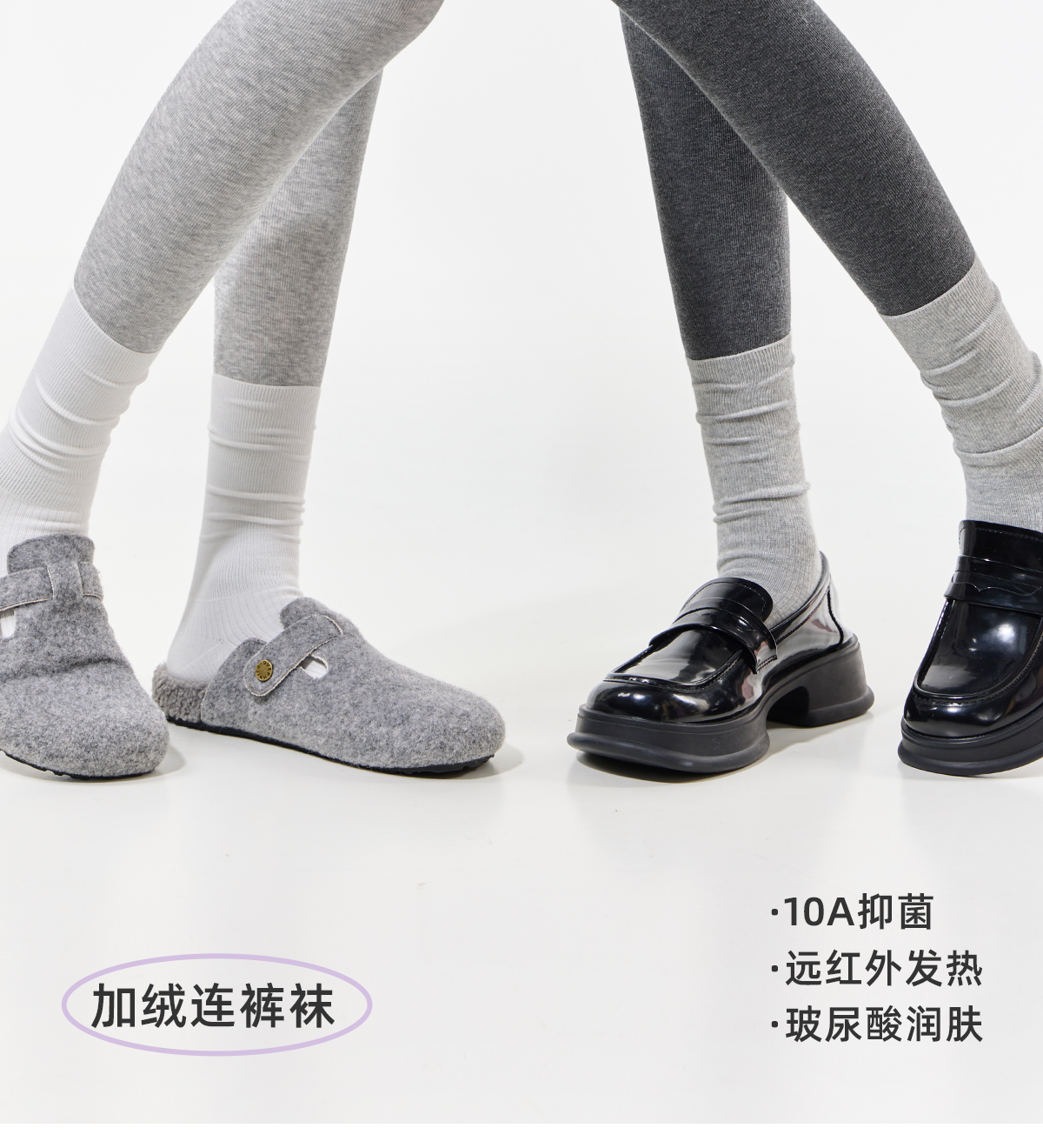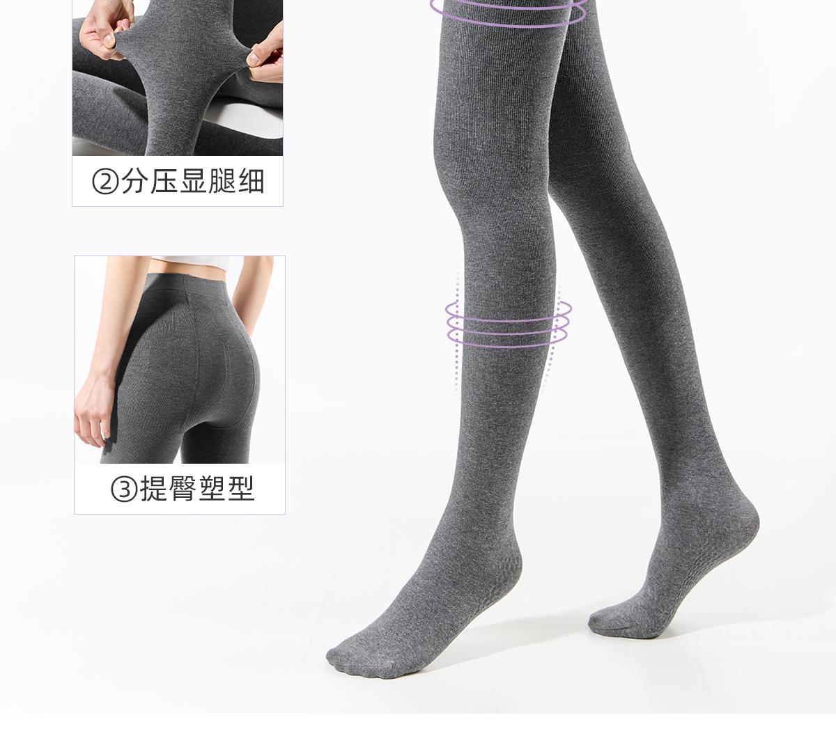 Purpleguys Dark Gray Pantyhose for Women Winter Vertical Stripe Pressure Slimming Thickened Fleece-Lined Outer Wear Light Gray Leggings