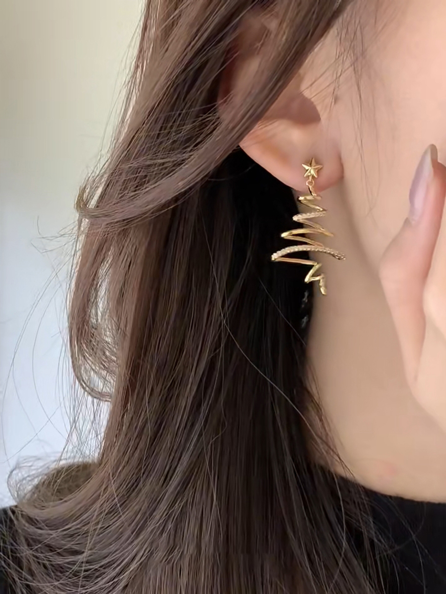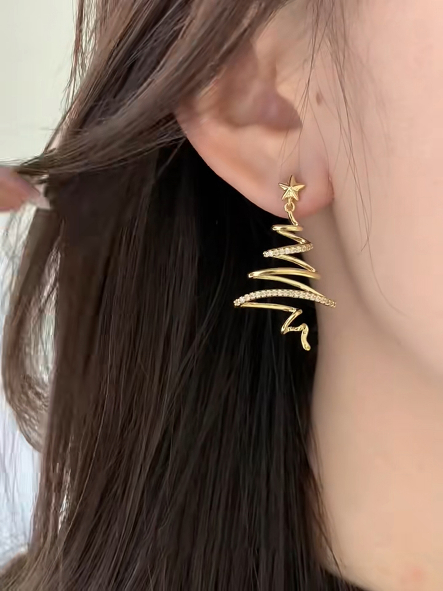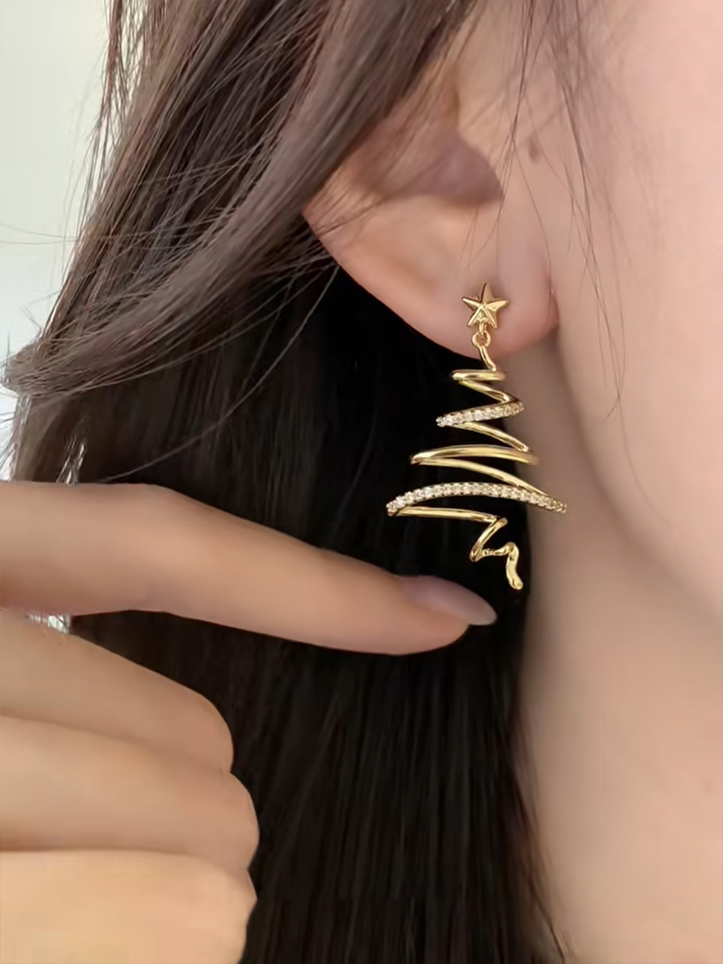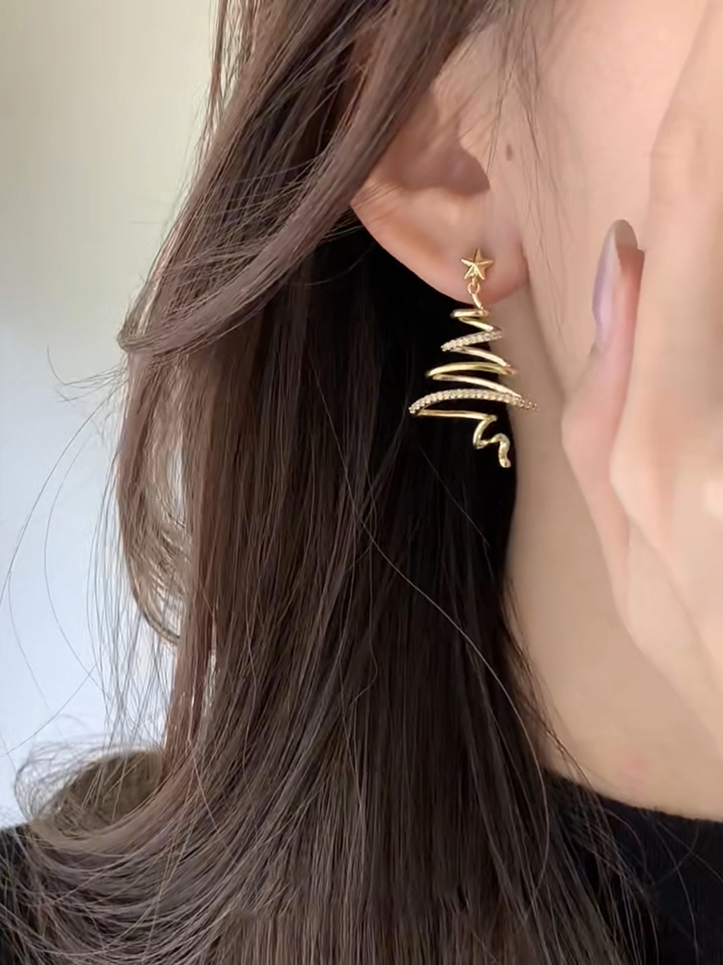 Retro Golden Sparkling Star Wishing Tree Christmas Earrings High-End Accessible Luxury Niche Fashion Christmas Earrings for Women
