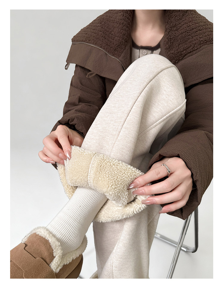 【Winter's Nemesis】Navy Blue Fleece-Lined Thickened Sweatpants for Women, Lamb Wool Sports Pants, Loose Woolen Straight-Leg Cotton Pants