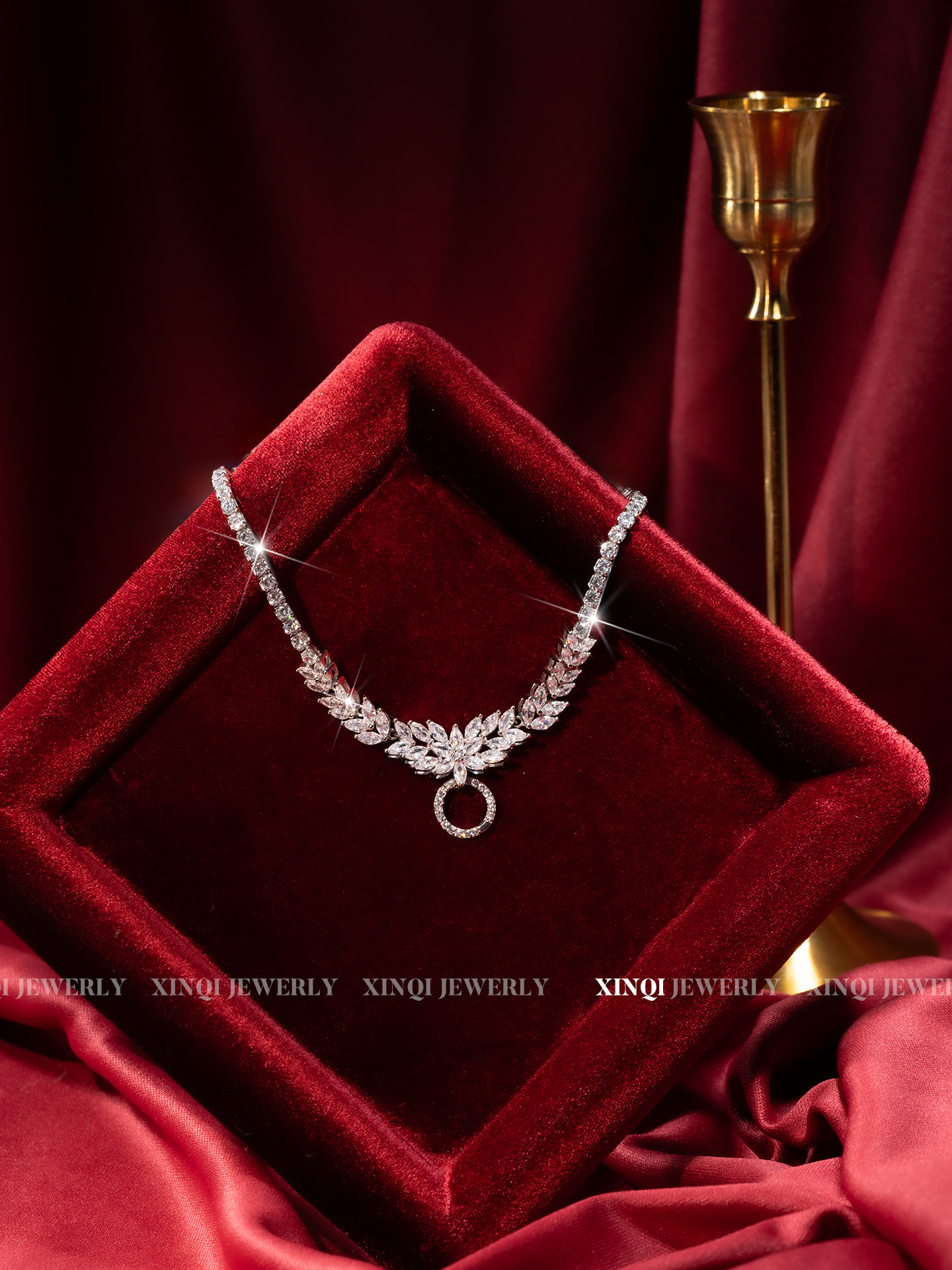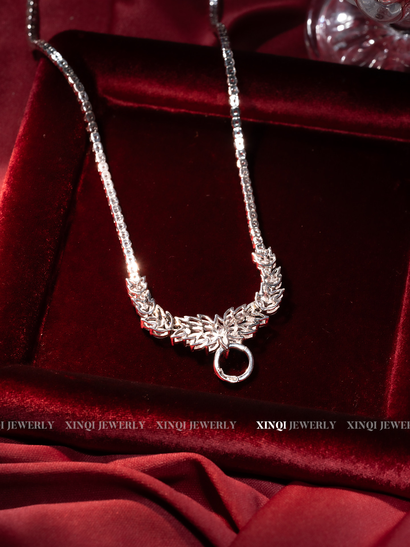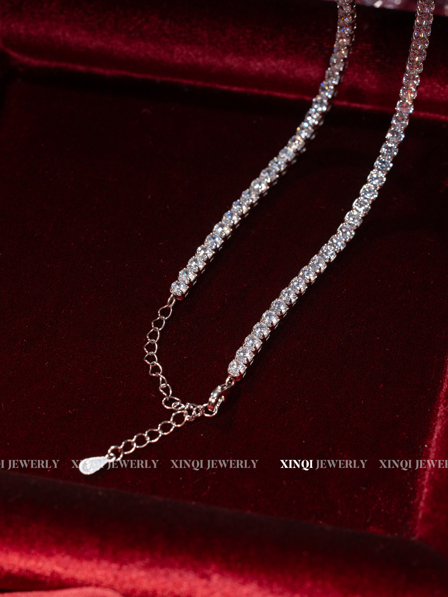 Xinqi High-Carbon Full Diamond Luxury Inlaid Versatile Silver Chain S925 Silver Luxurious Exquisite Evening Clavicle Universal Clasp Necklace