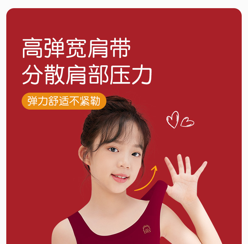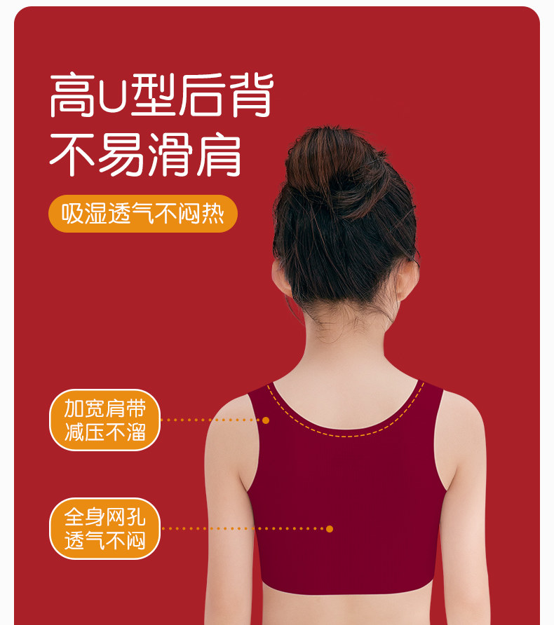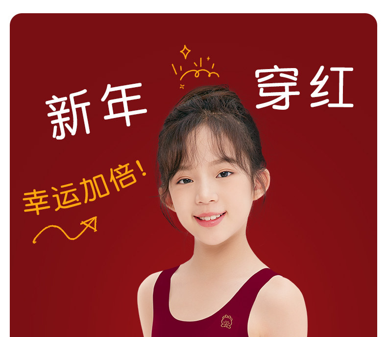 2026 Is the Year of the Horse, Children's Zodiac Year Underwear Set for 12-Year-Old Girls, Red Vest, Puberty Bra