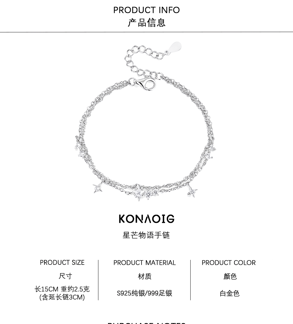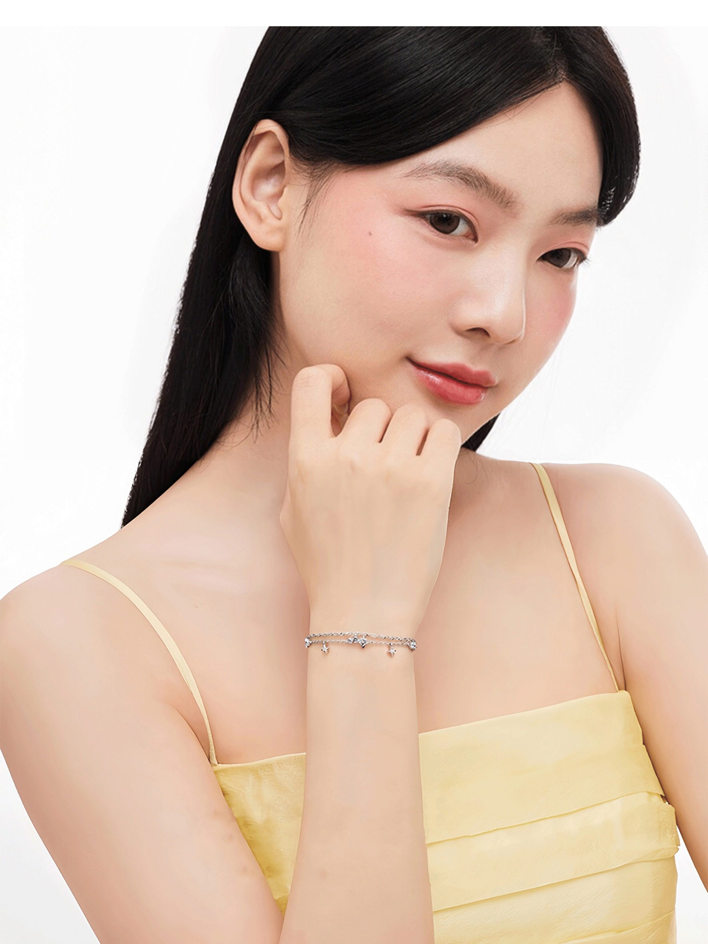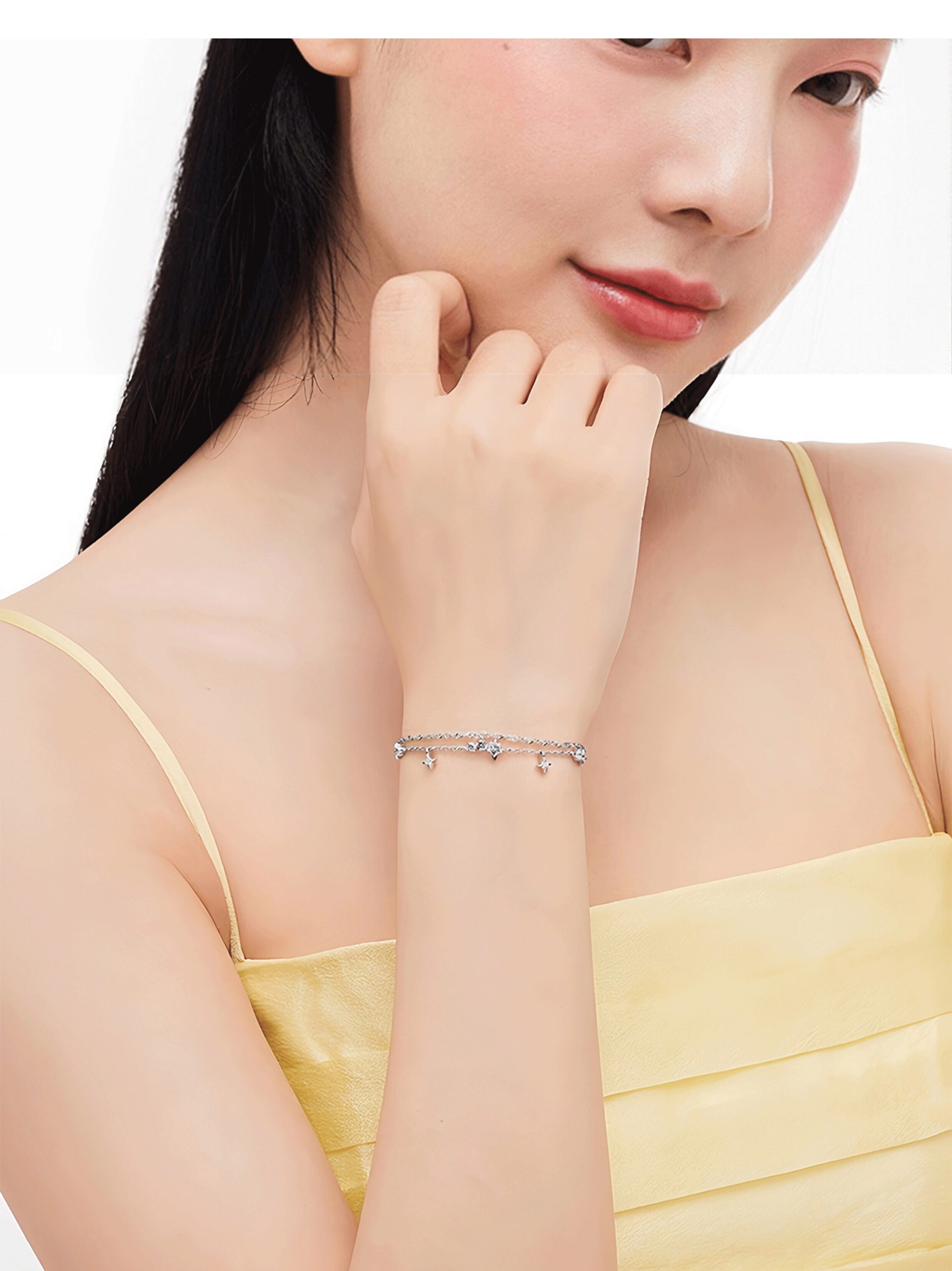 Starlight Story All-Over 999 Pure Silver Star Stacking Bracelet for Women, Light Luxury Niche Gift for Girlfriend or Best Friend