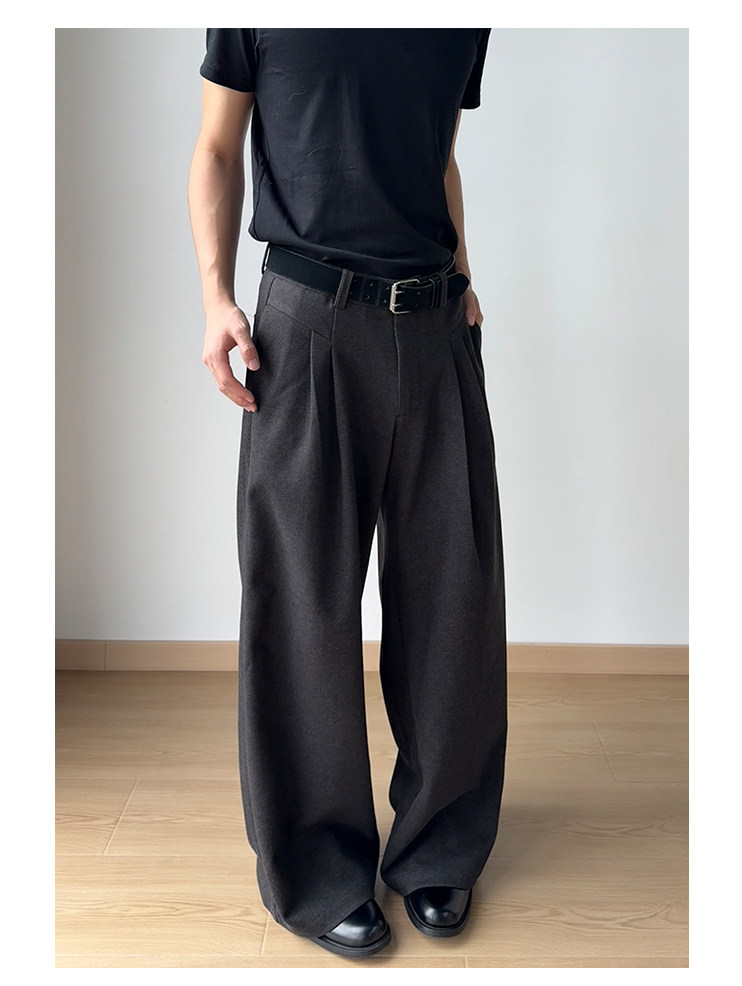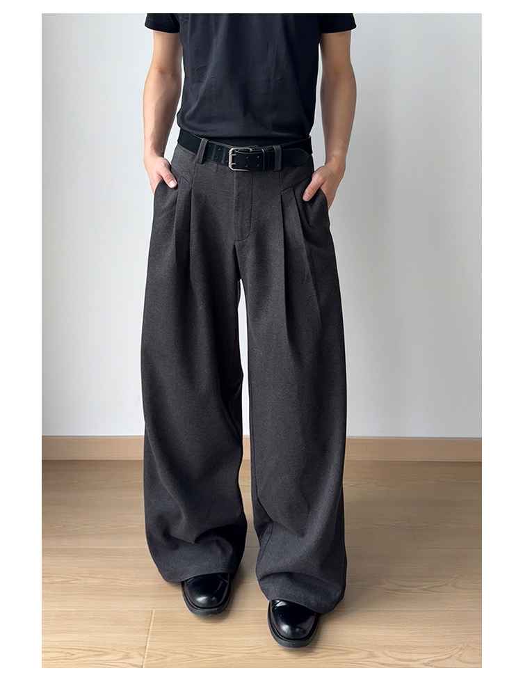 「Nico's Style」Sukchor Double-Pleated Three-Dimensional Cut High-Fashion Commuter Drape Loose A-Line Trousers
