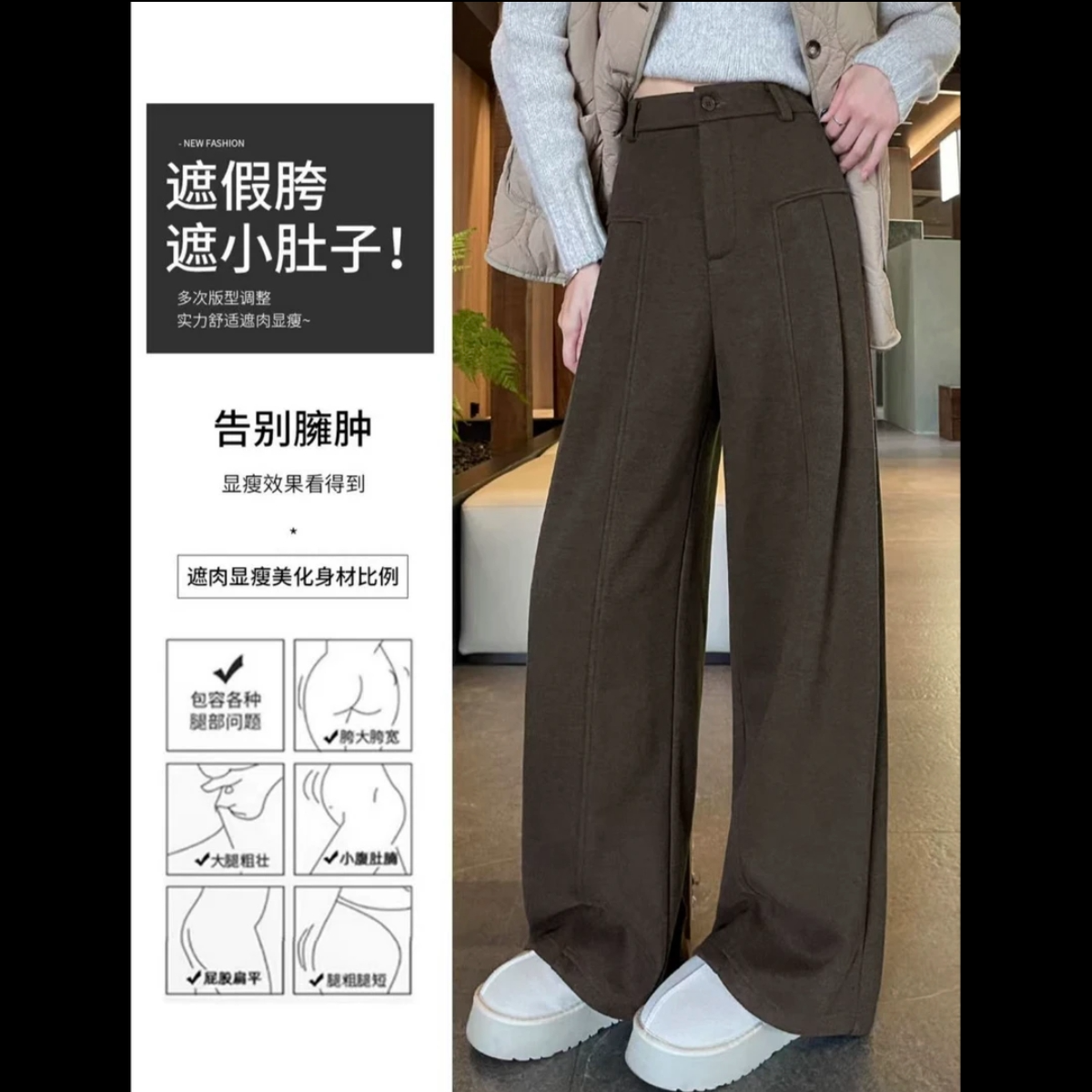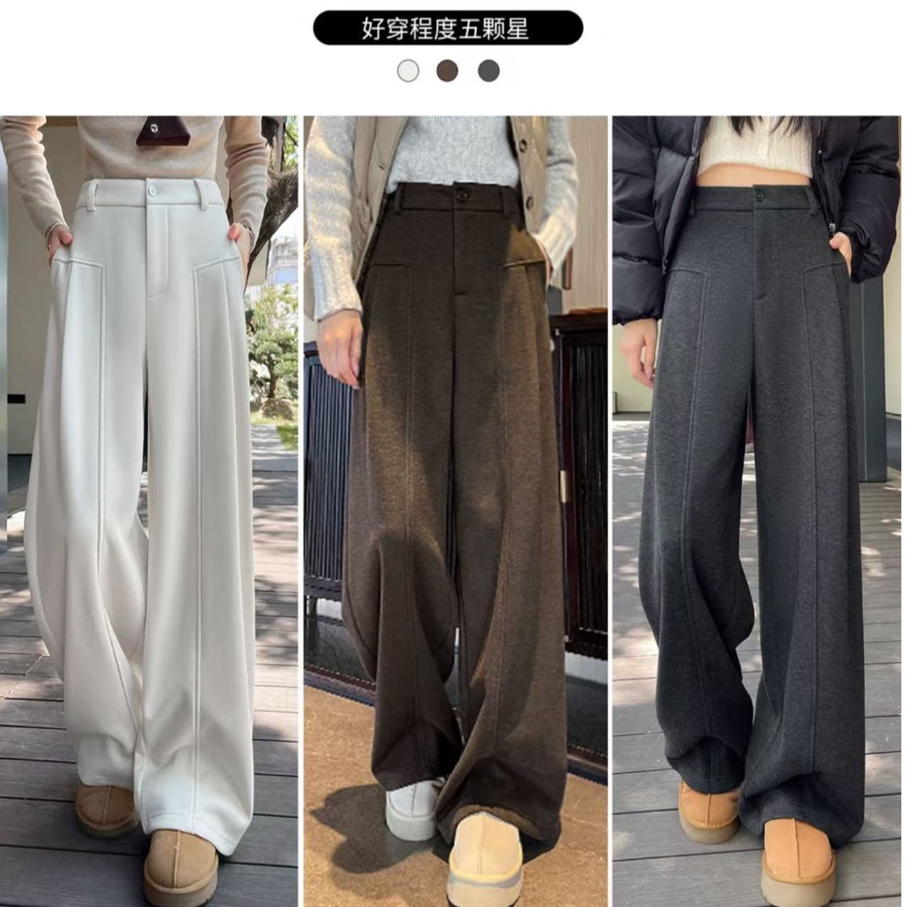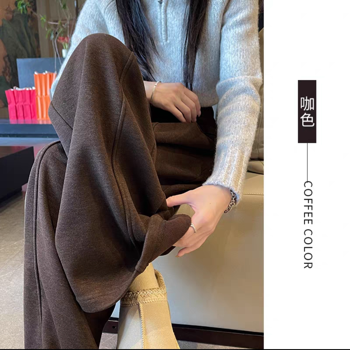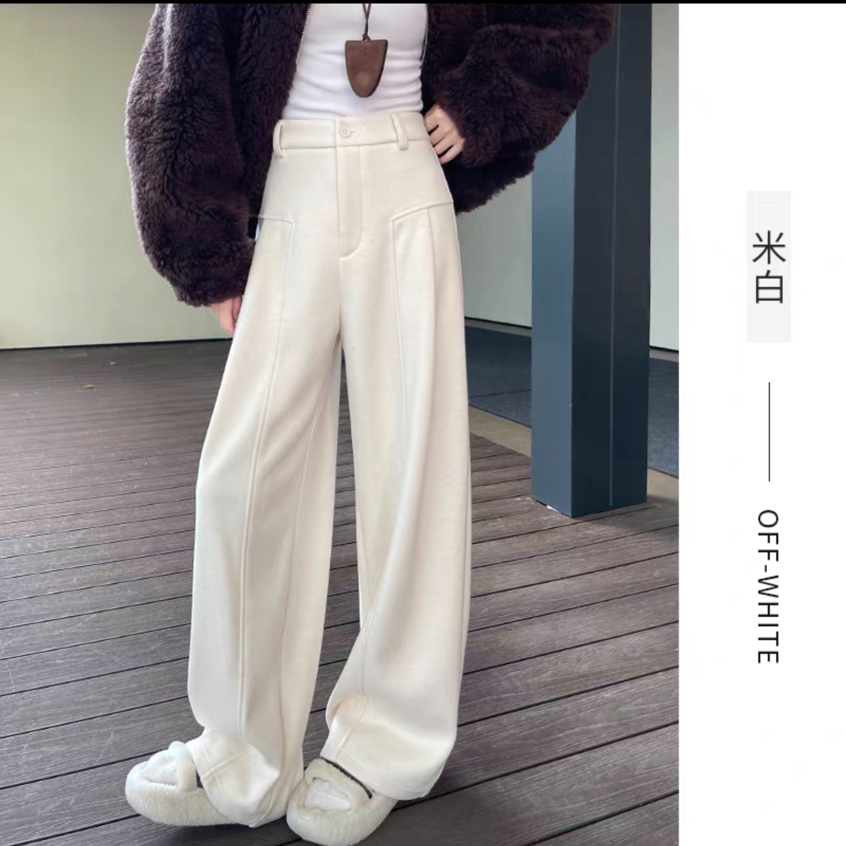 Fleece-Lined Solid Color Slimming Straight-Leg Suit Pants for Women, New Autumn/Winter 2025 Casual Thickened Wide-Leg Pants for Women