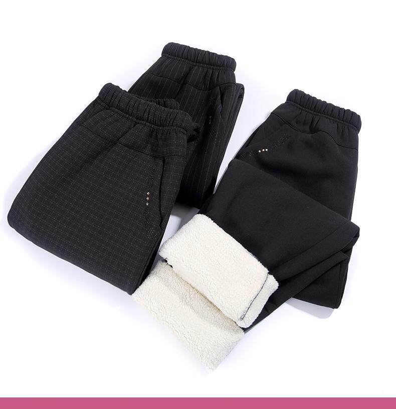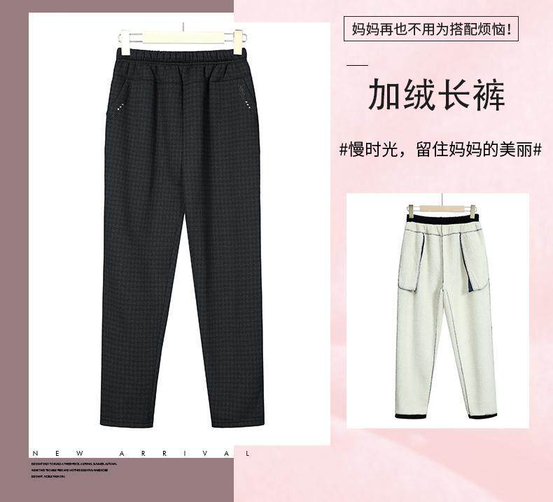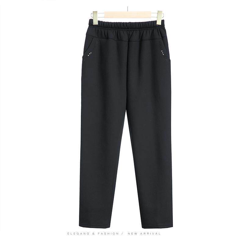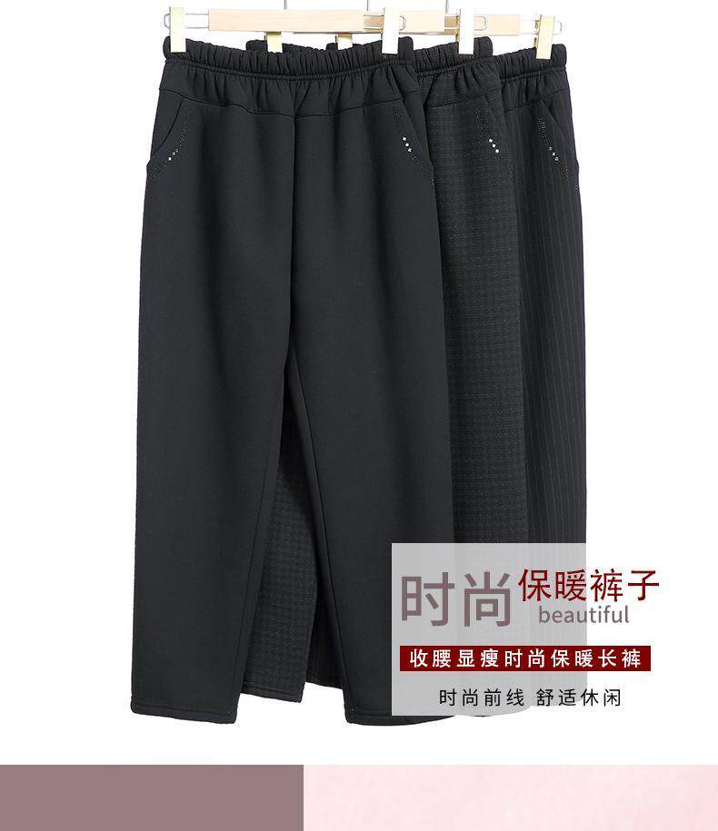 Middle-Aged and Elderly Women's Pants, Autumn and Winter Long Pants, Mom's Fleece-Lined Thick High-Waisted Warm Cotton Pants, Grandma's Straight-Leg Outerwear Pants