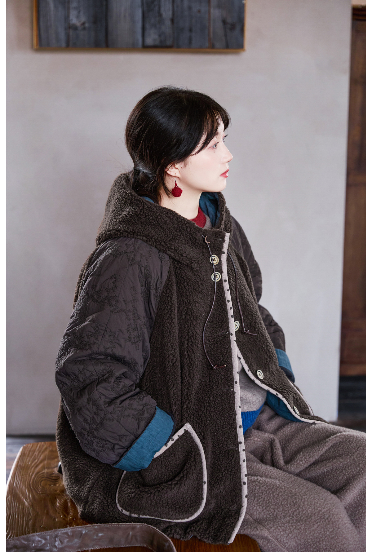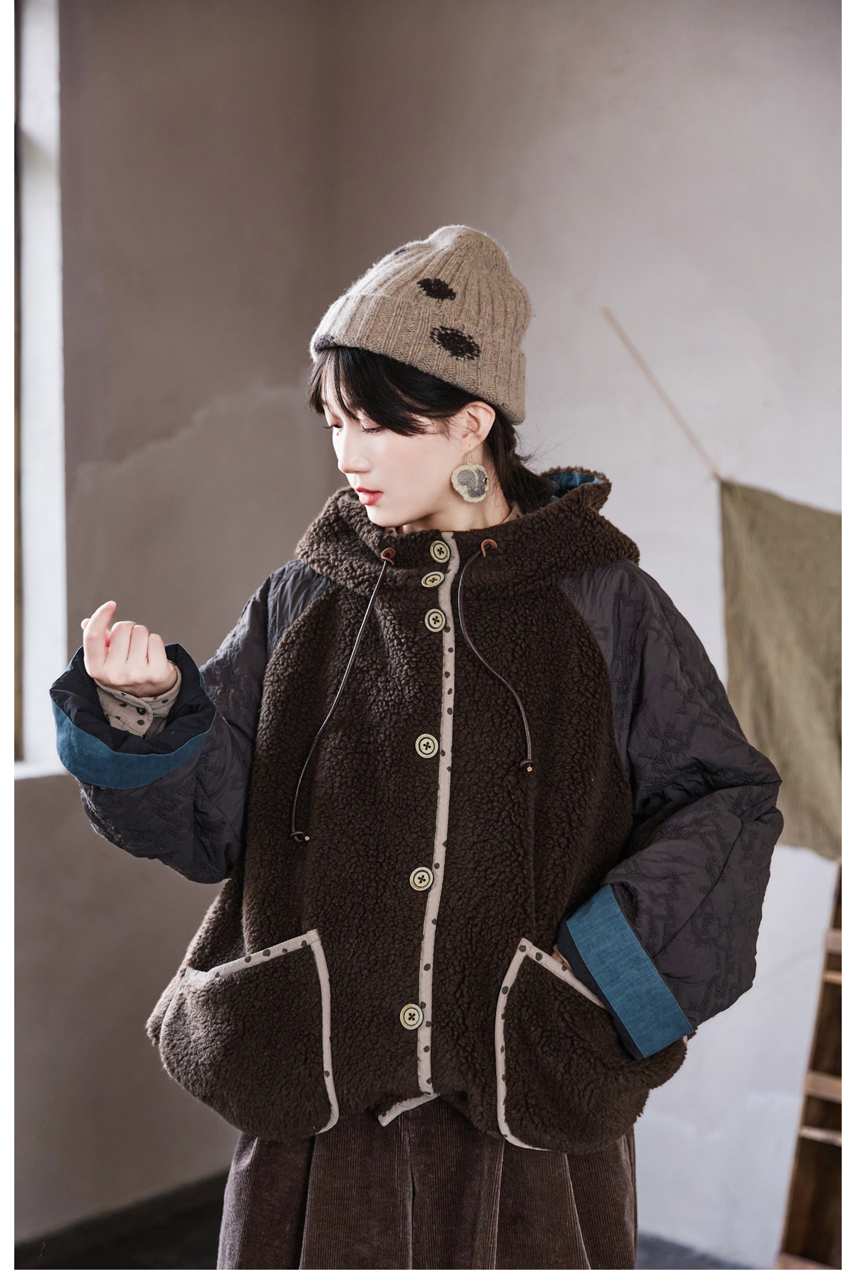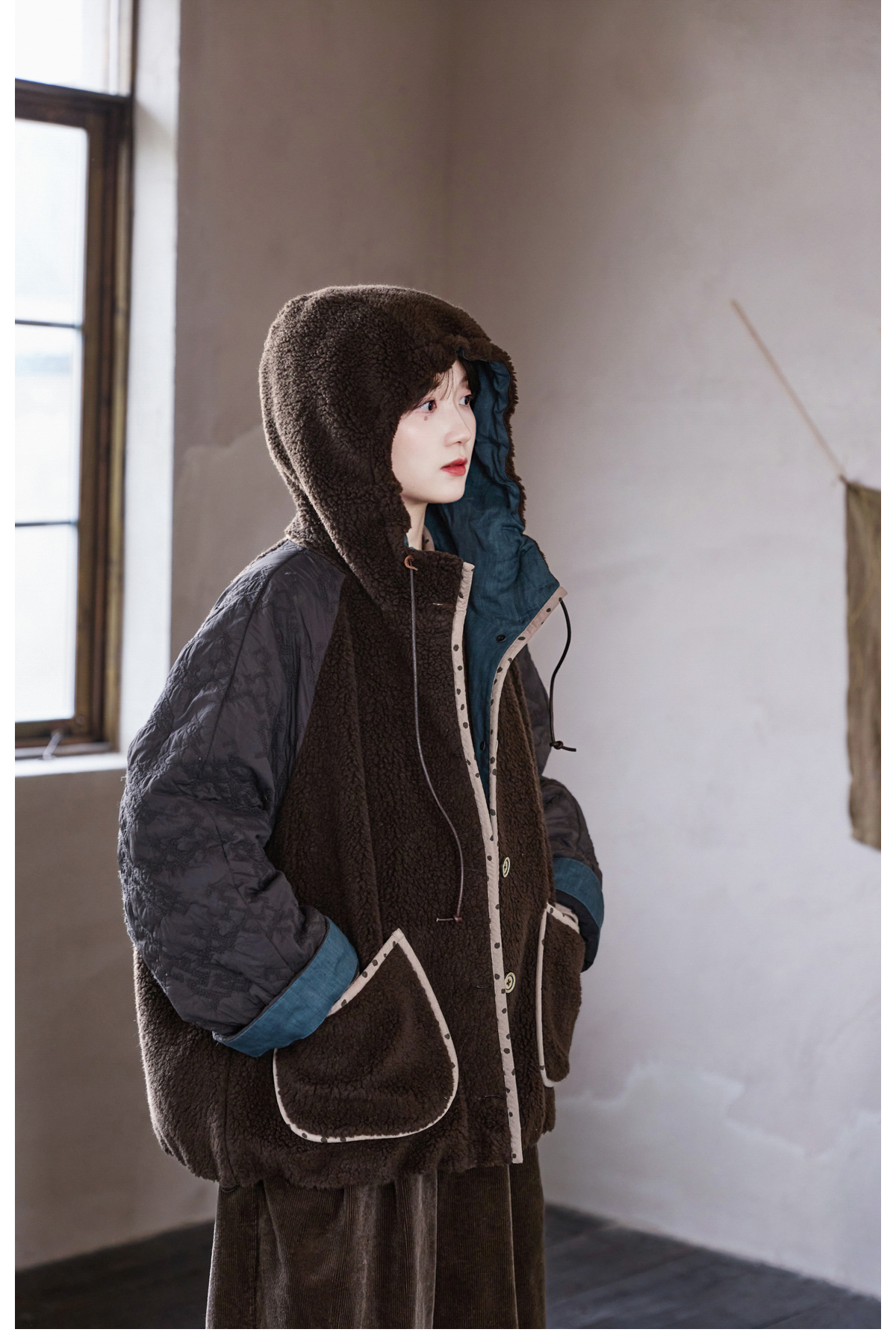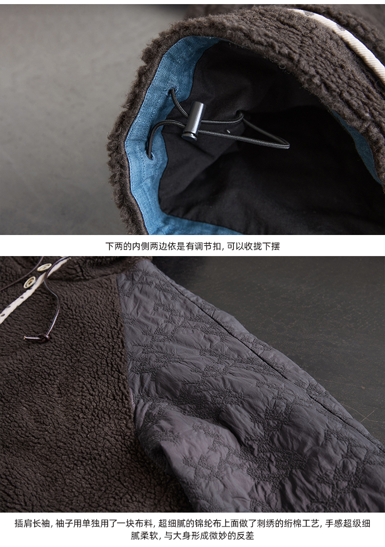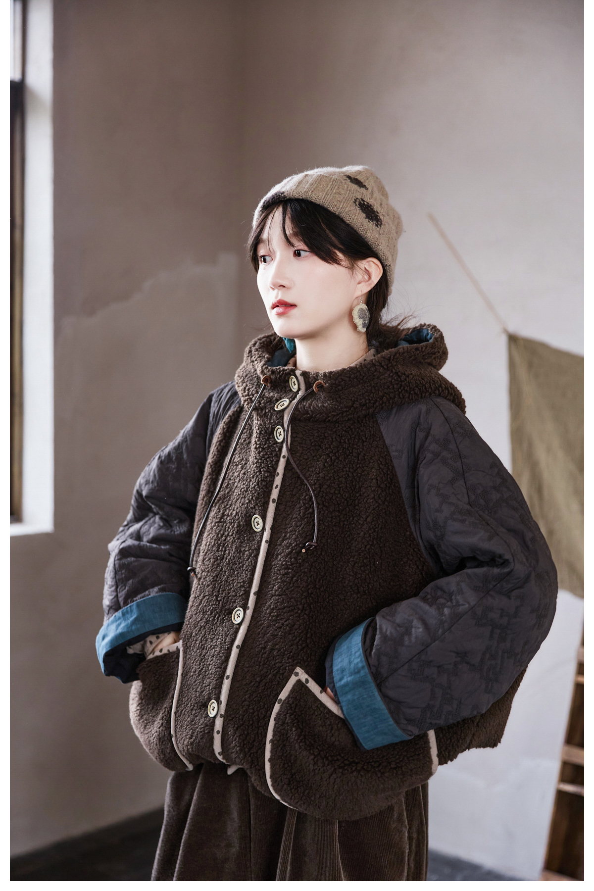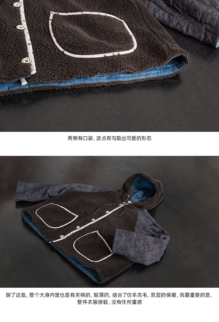 Original [Miscellaneous Thoughts] Winter Style River Dolphin Gray Imported Faux Lamb Wool Thick Warm Hooded Cotton Jacket 7690
