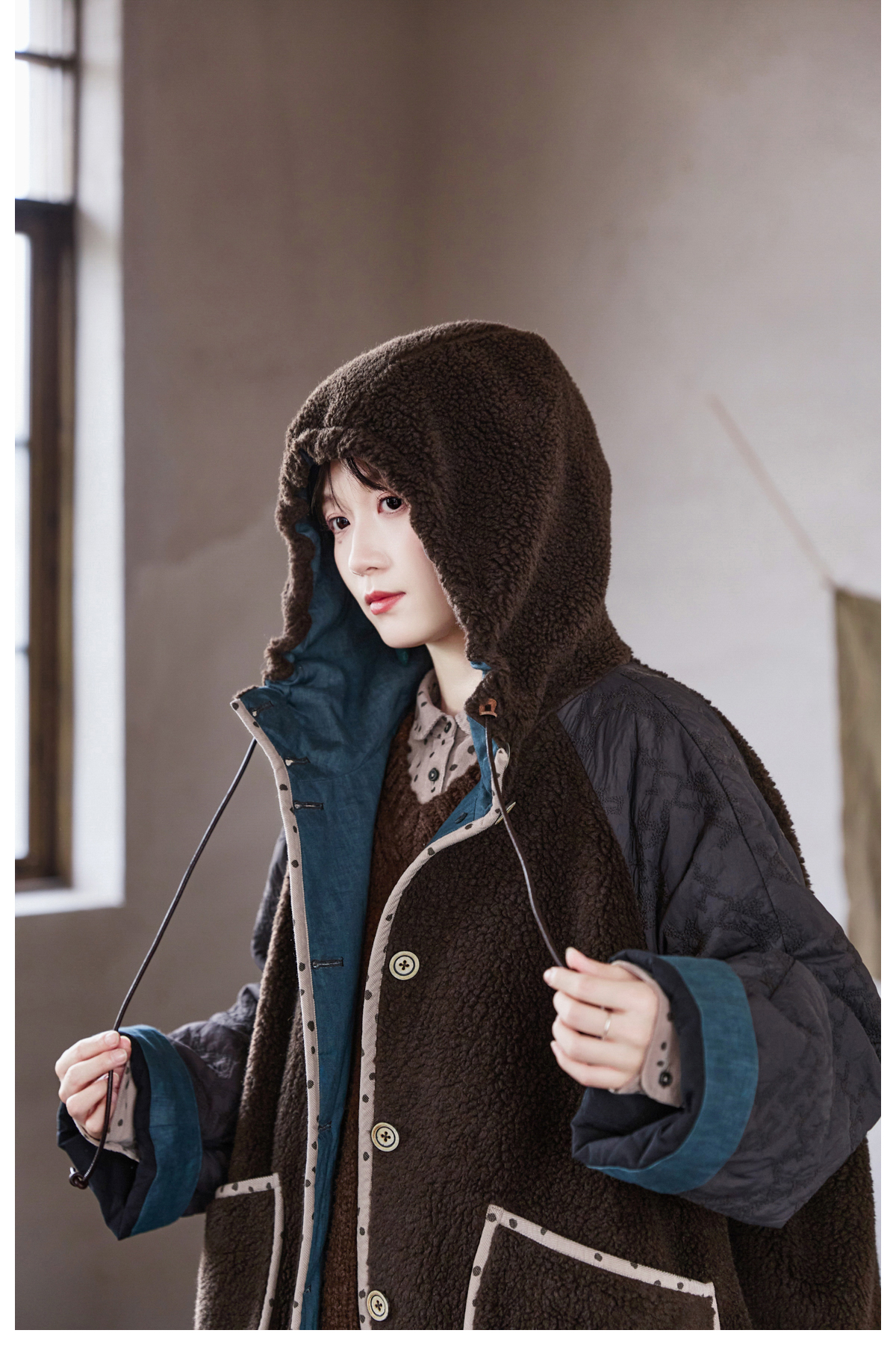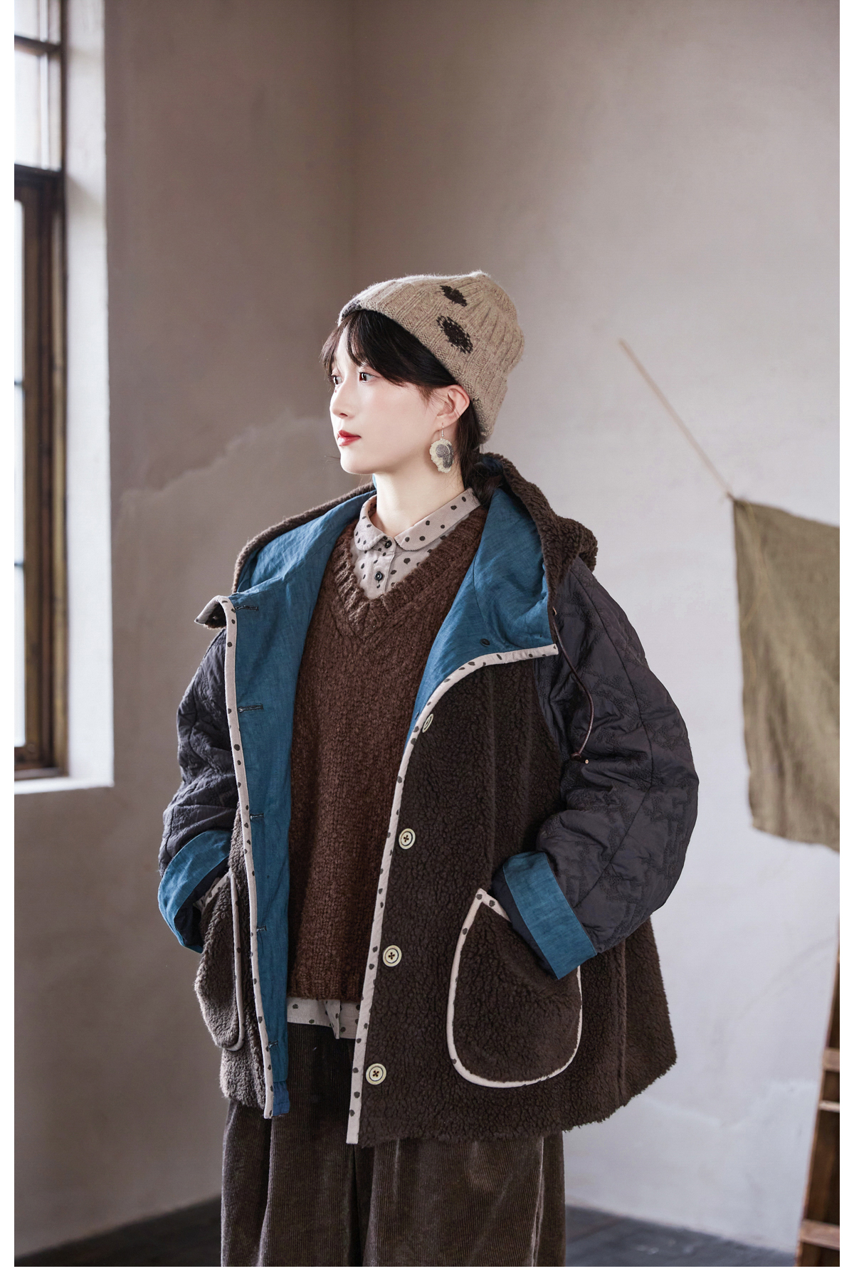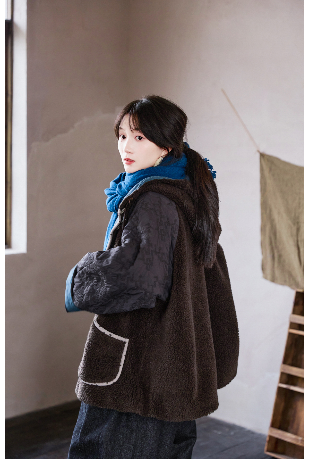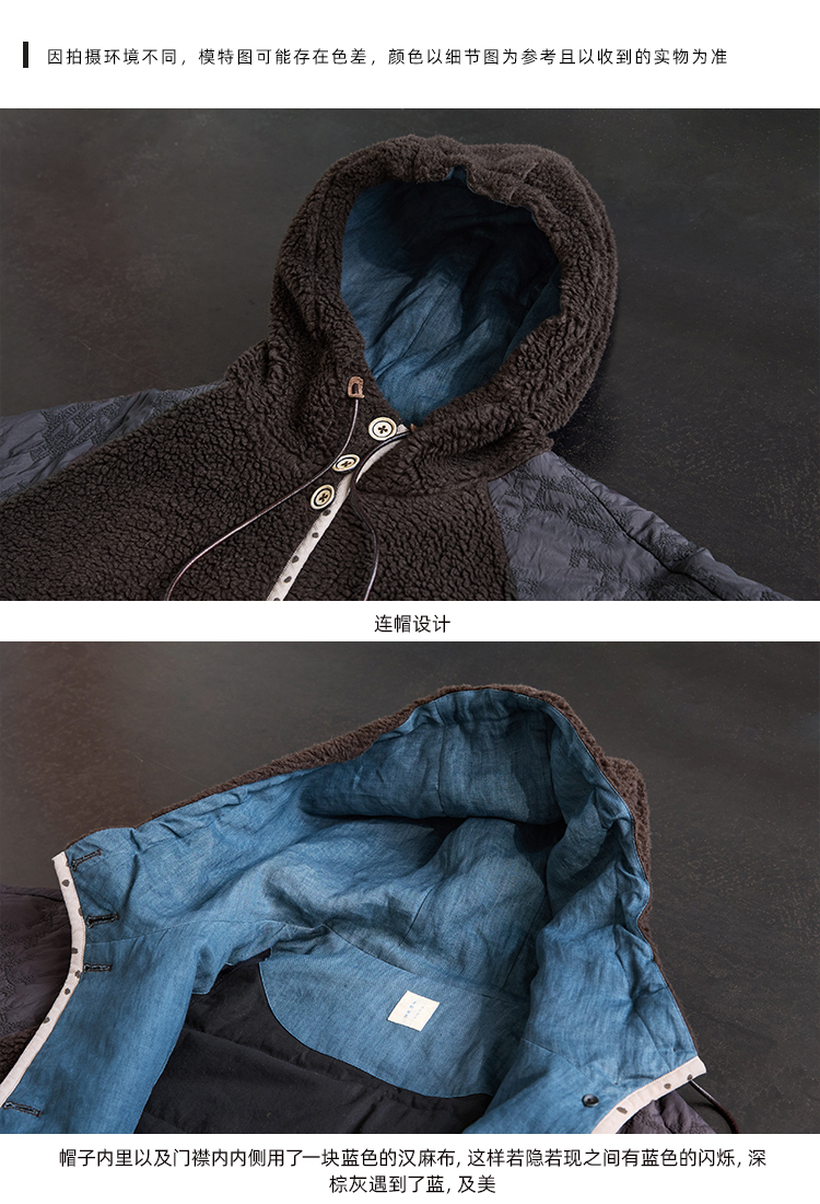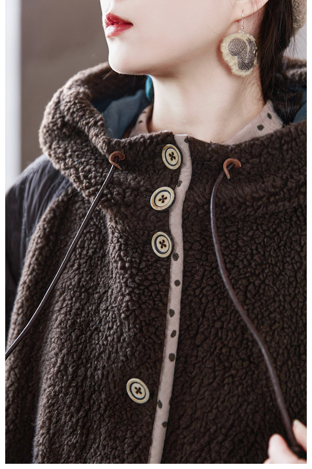 Original [Miscellaneous Thoughts] Winter Style River Dolphin Gray Imported Faux Lamb Wool Thick Warm Hooded Cotton Jacket 7690