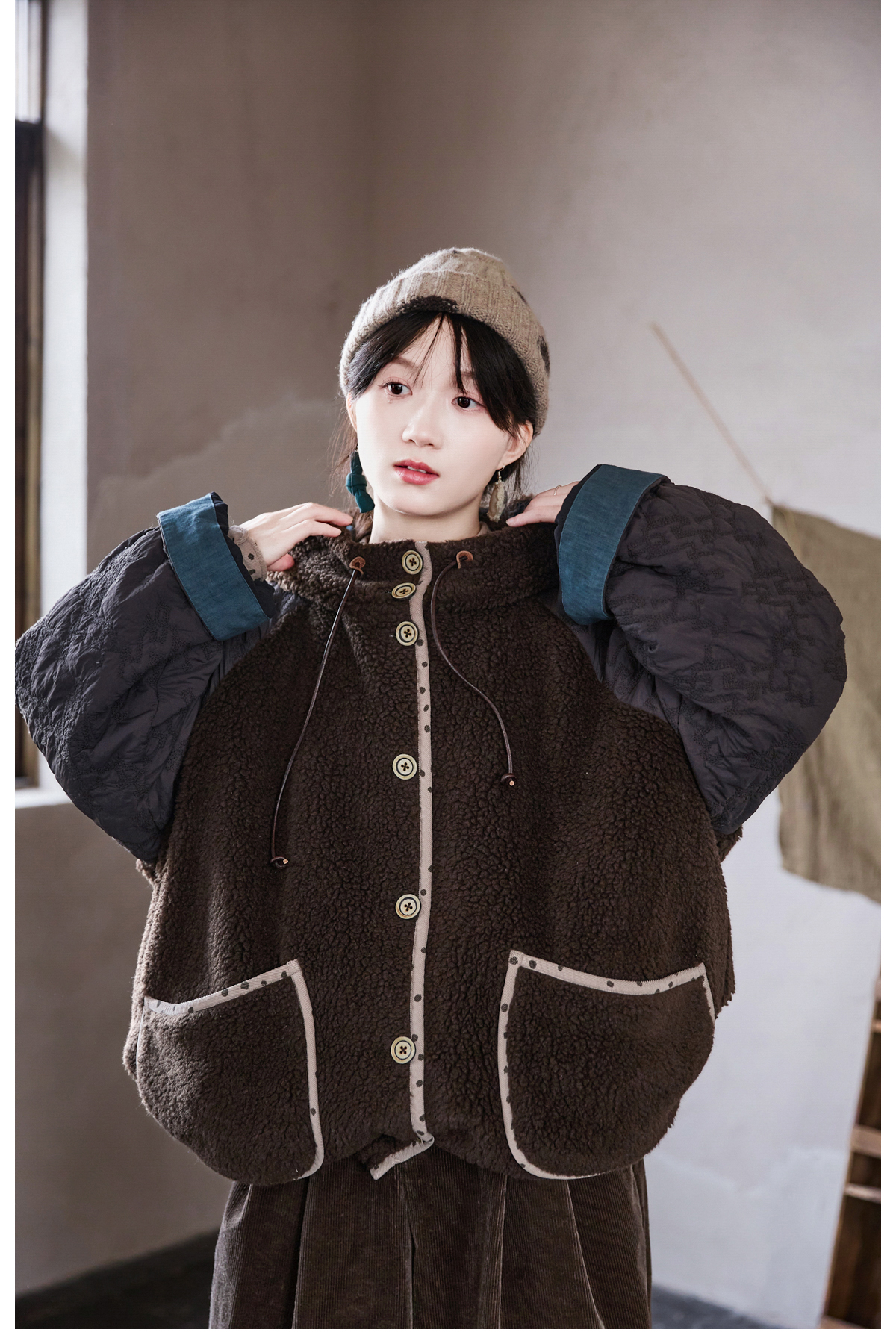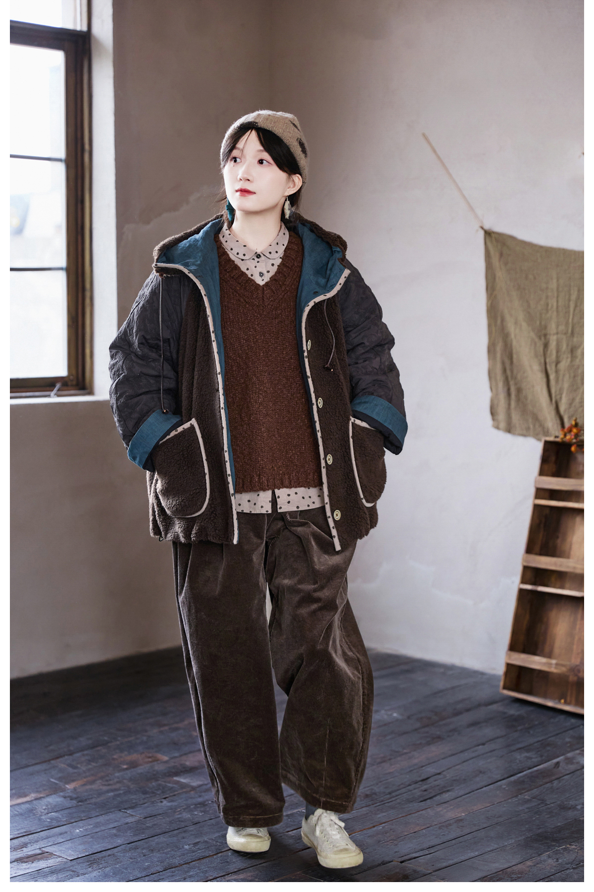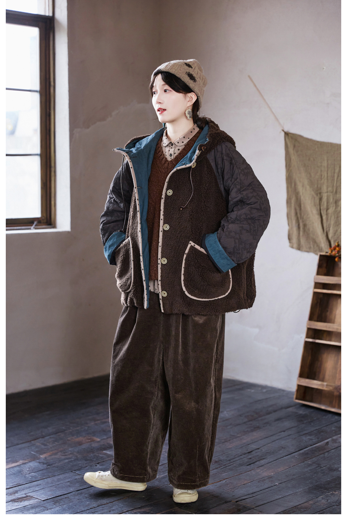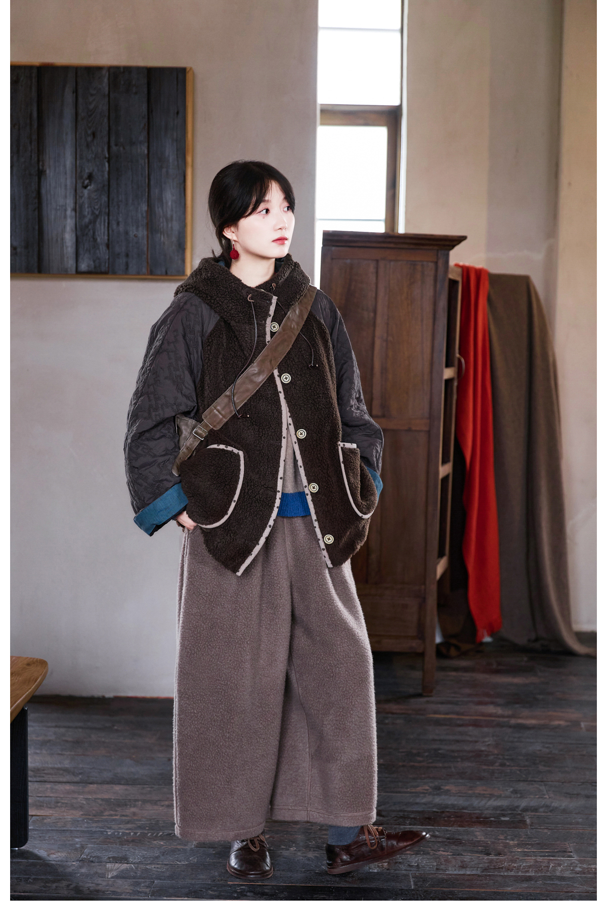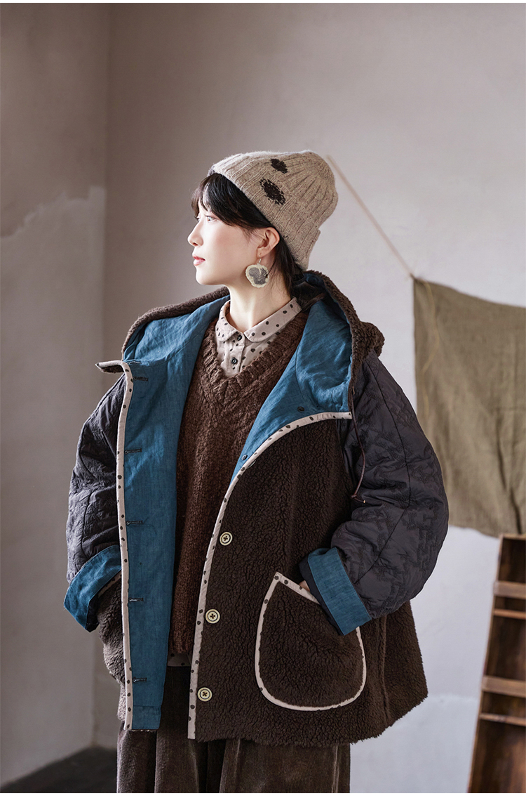 Original [Miscellaneous Thoughts] Winter Style River Dolphin Gray Imported Faux Lamb Wool Thick Warm Hooded Cotton Jacket 7690