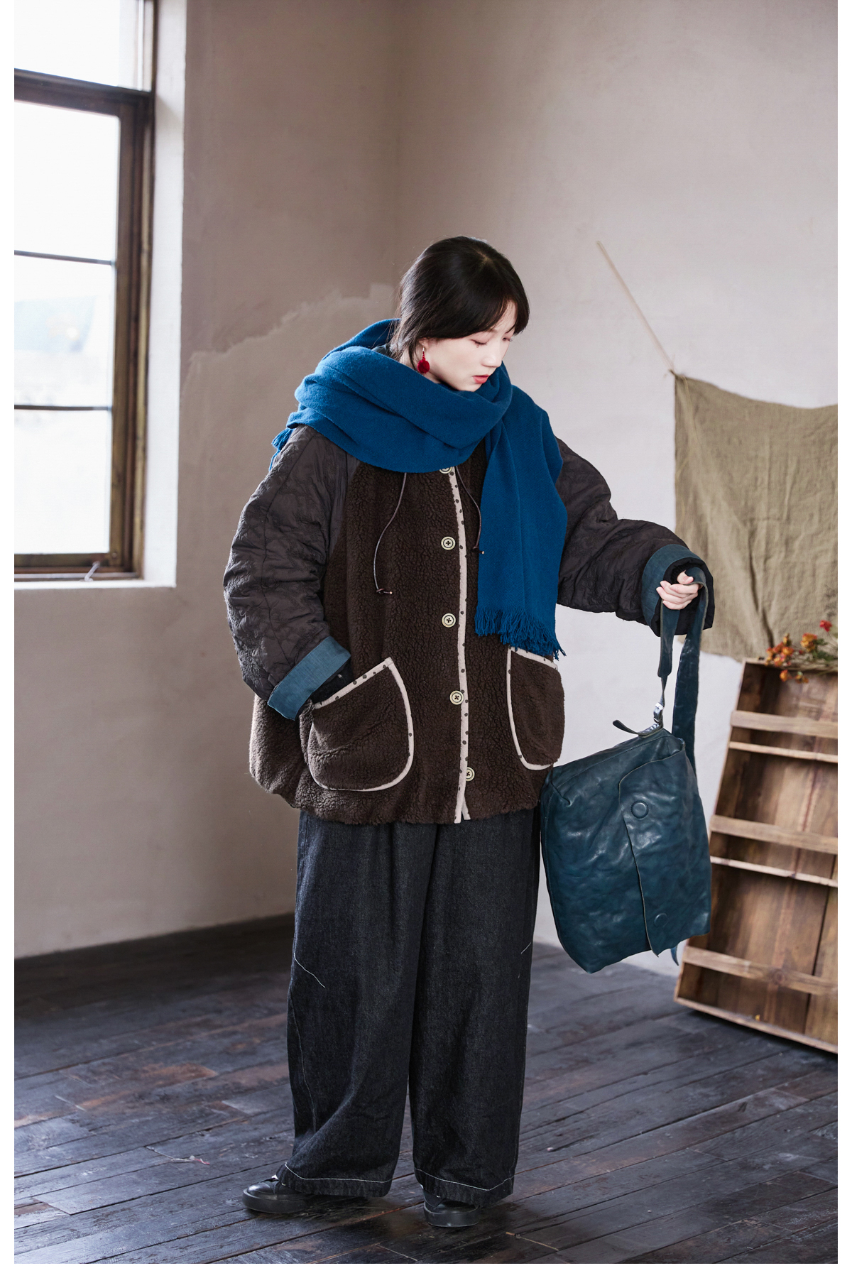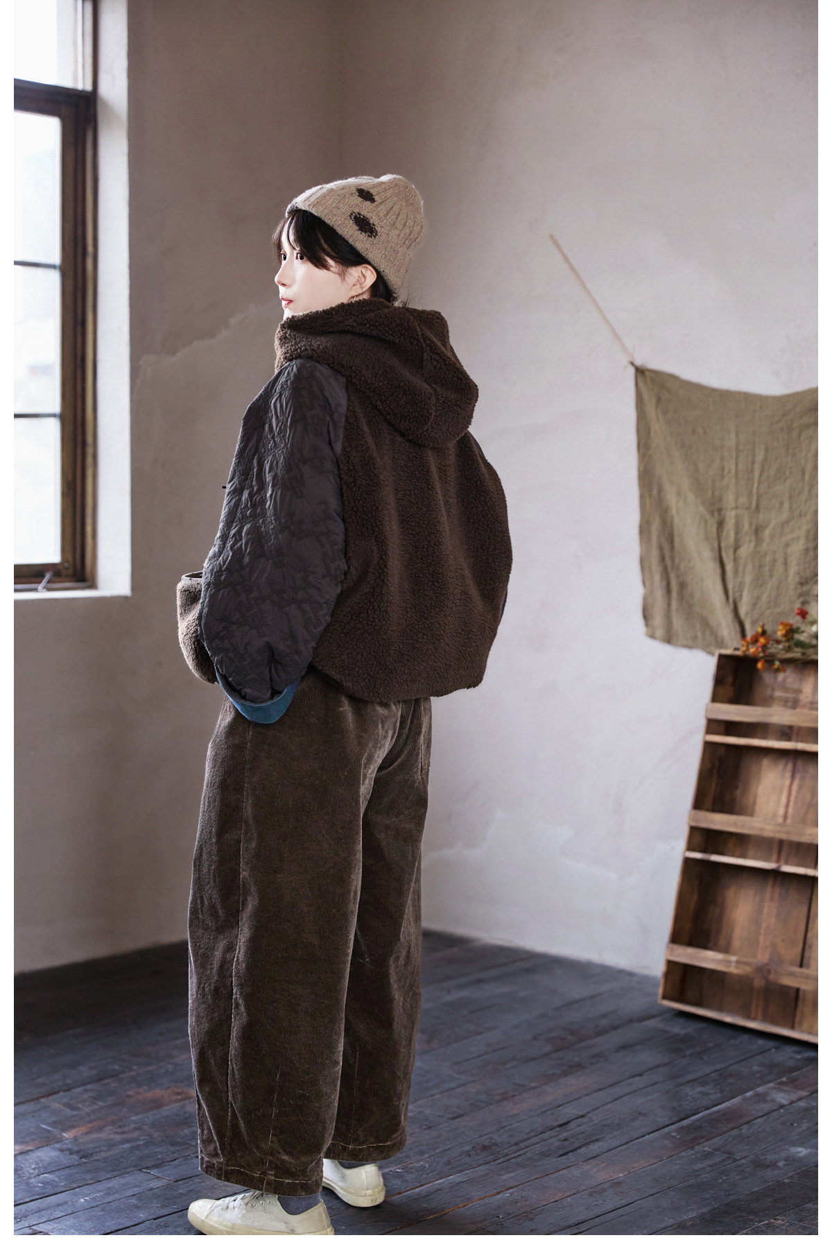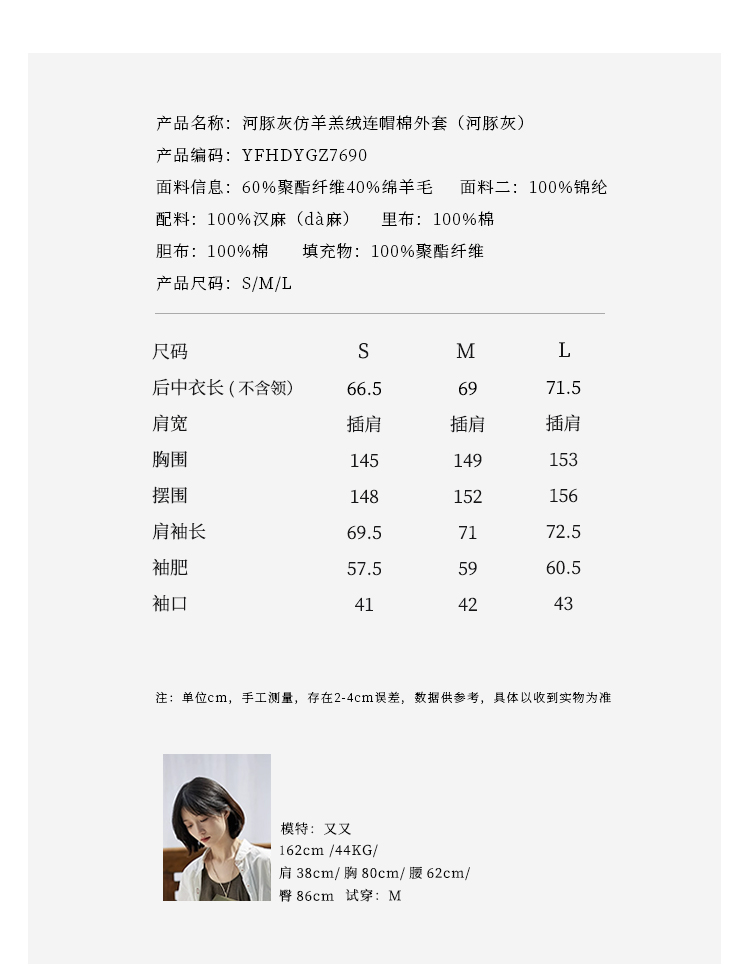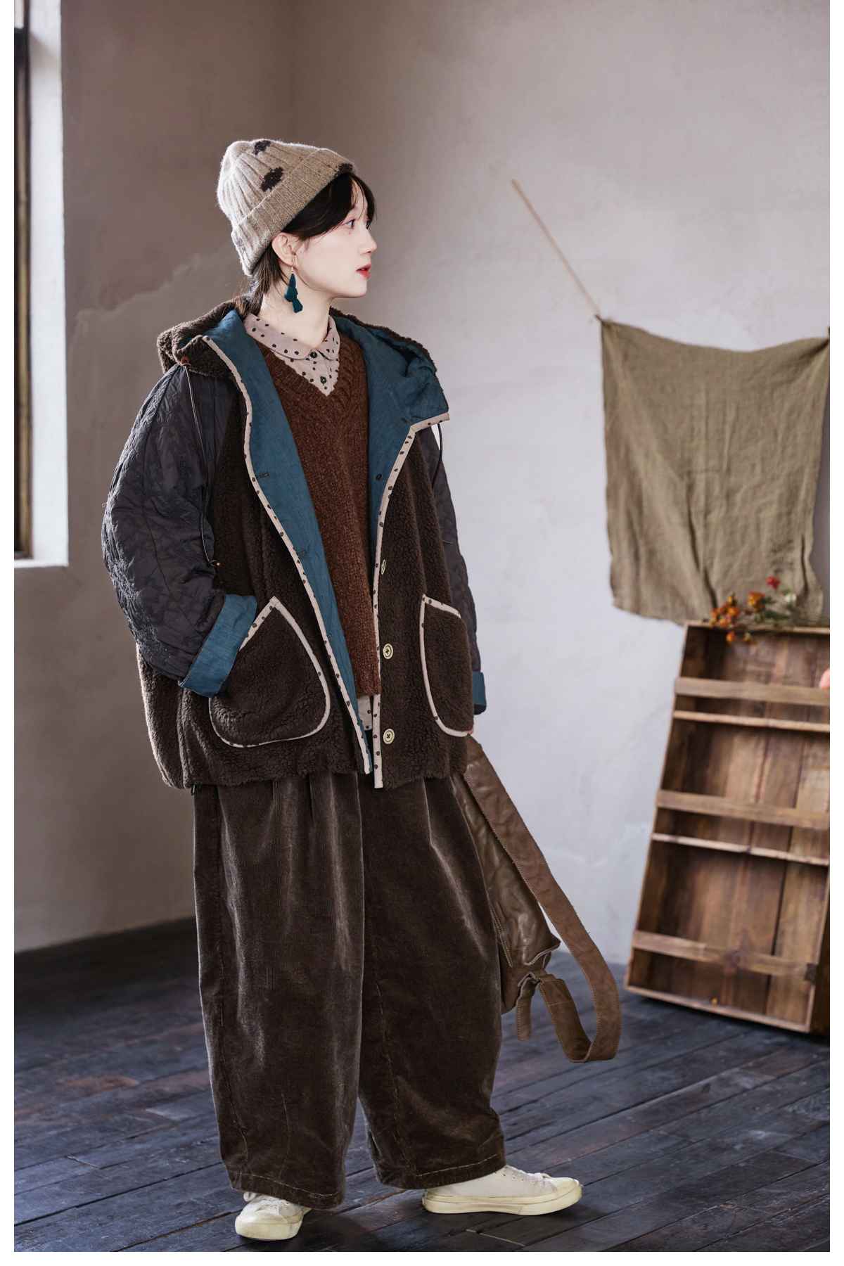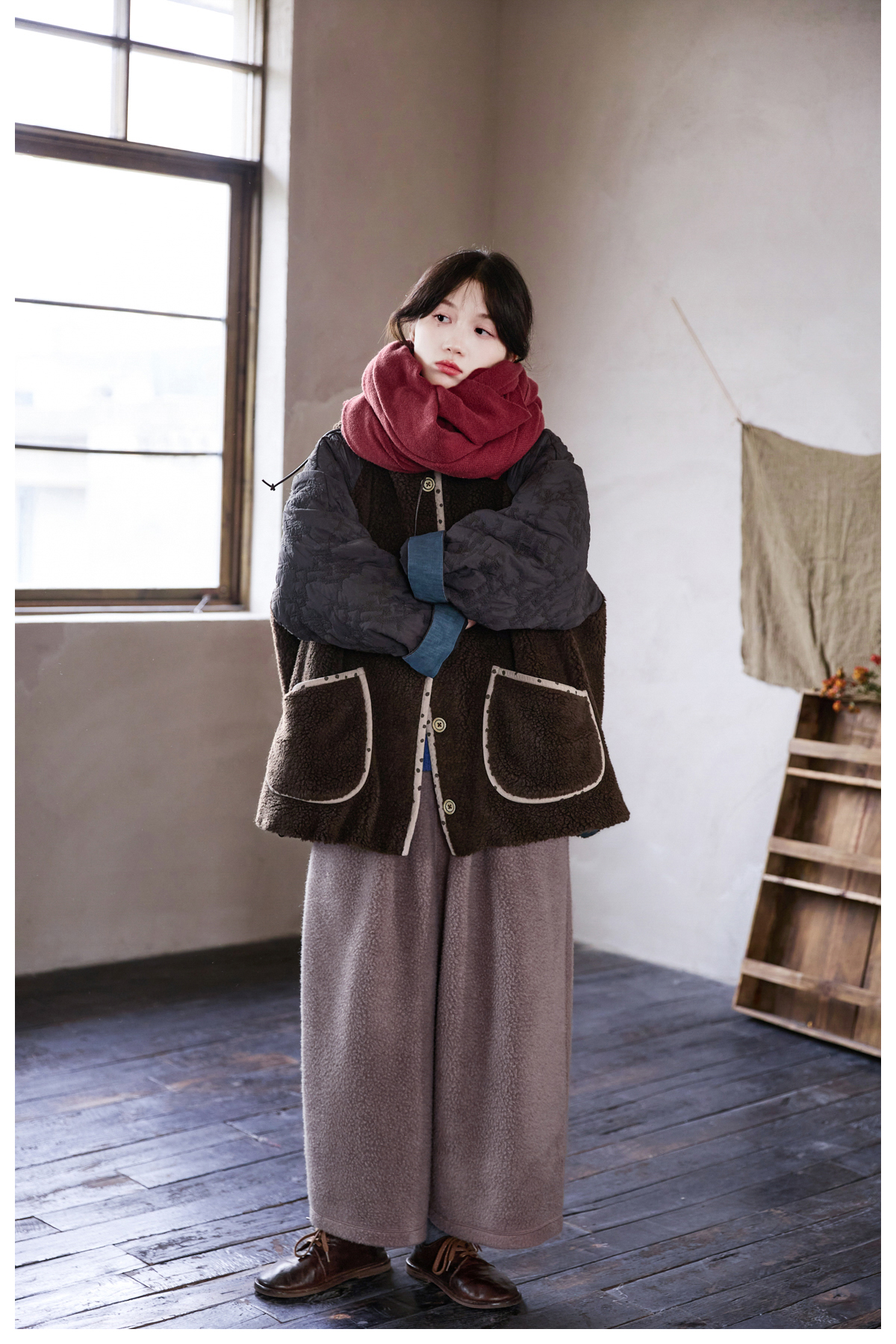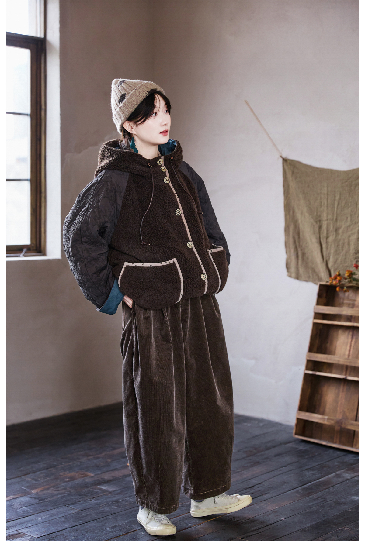 Original [Miscellaneous Thoughts] Winter Style River Dolphin Gray Imported Faux Lamb Wool Thick Warm Hooded Cotton Jacket 7690