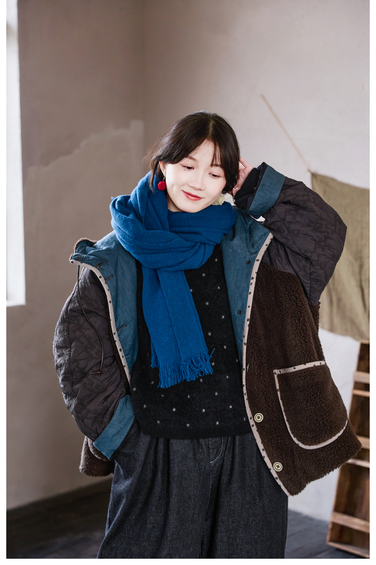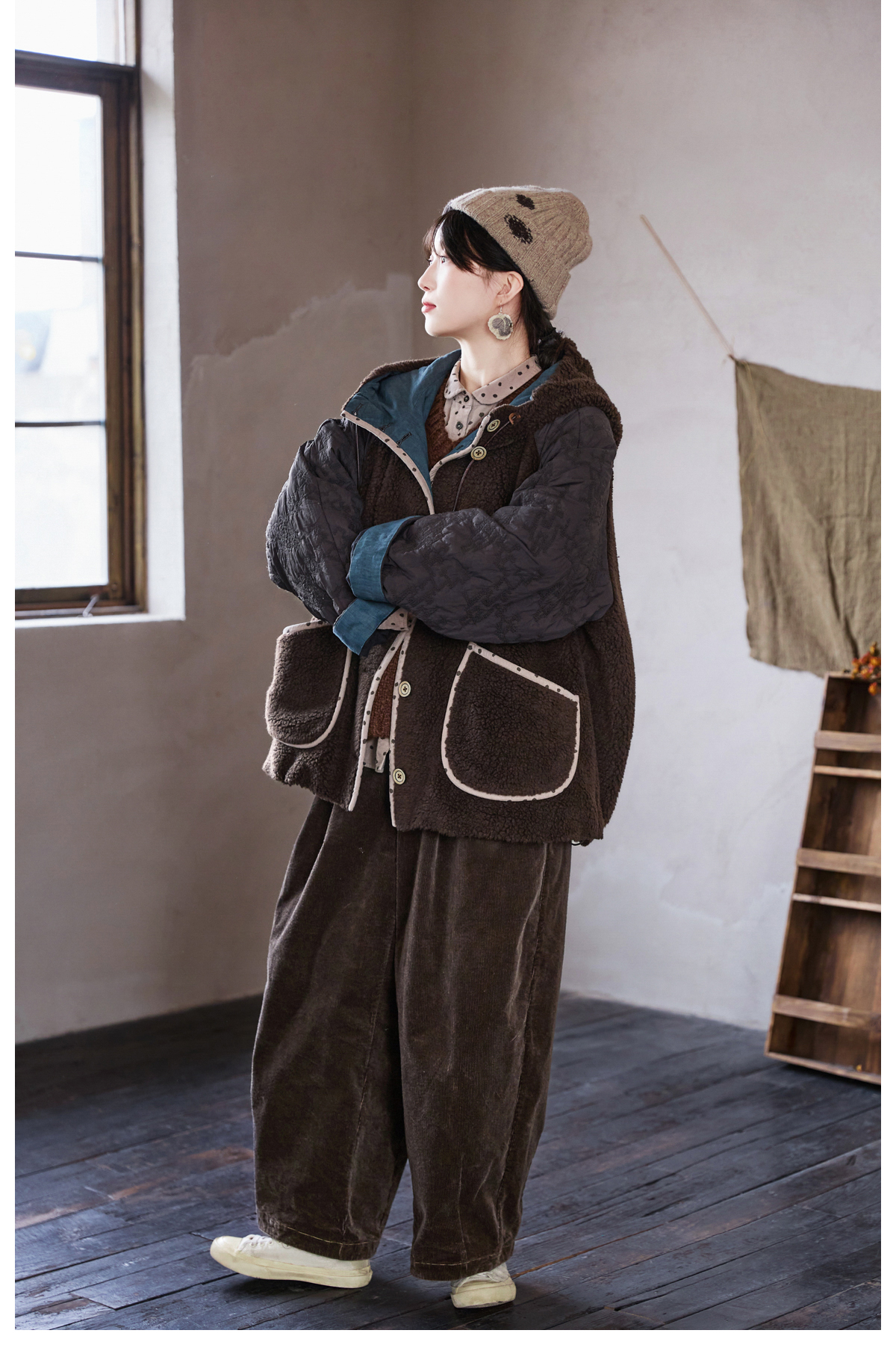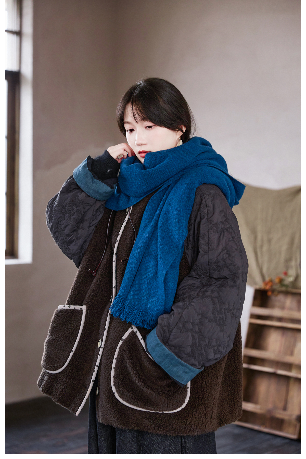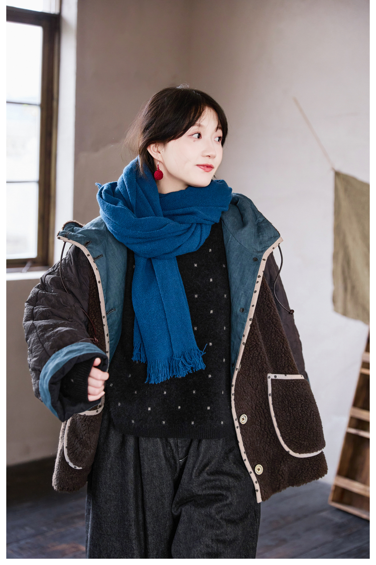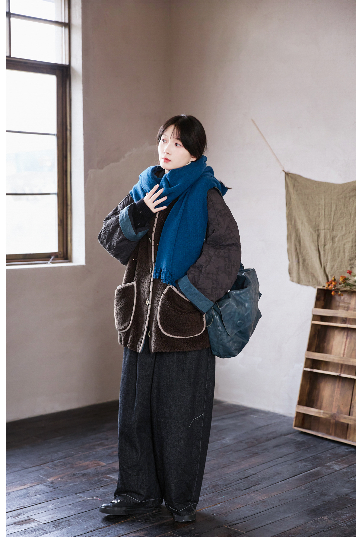 Original [Miscellaneous Thoughts] Winter Style River Dolphin Gray Imported Faux Lamb Wool Thick Warm Hooded Cotton Jacket 7690