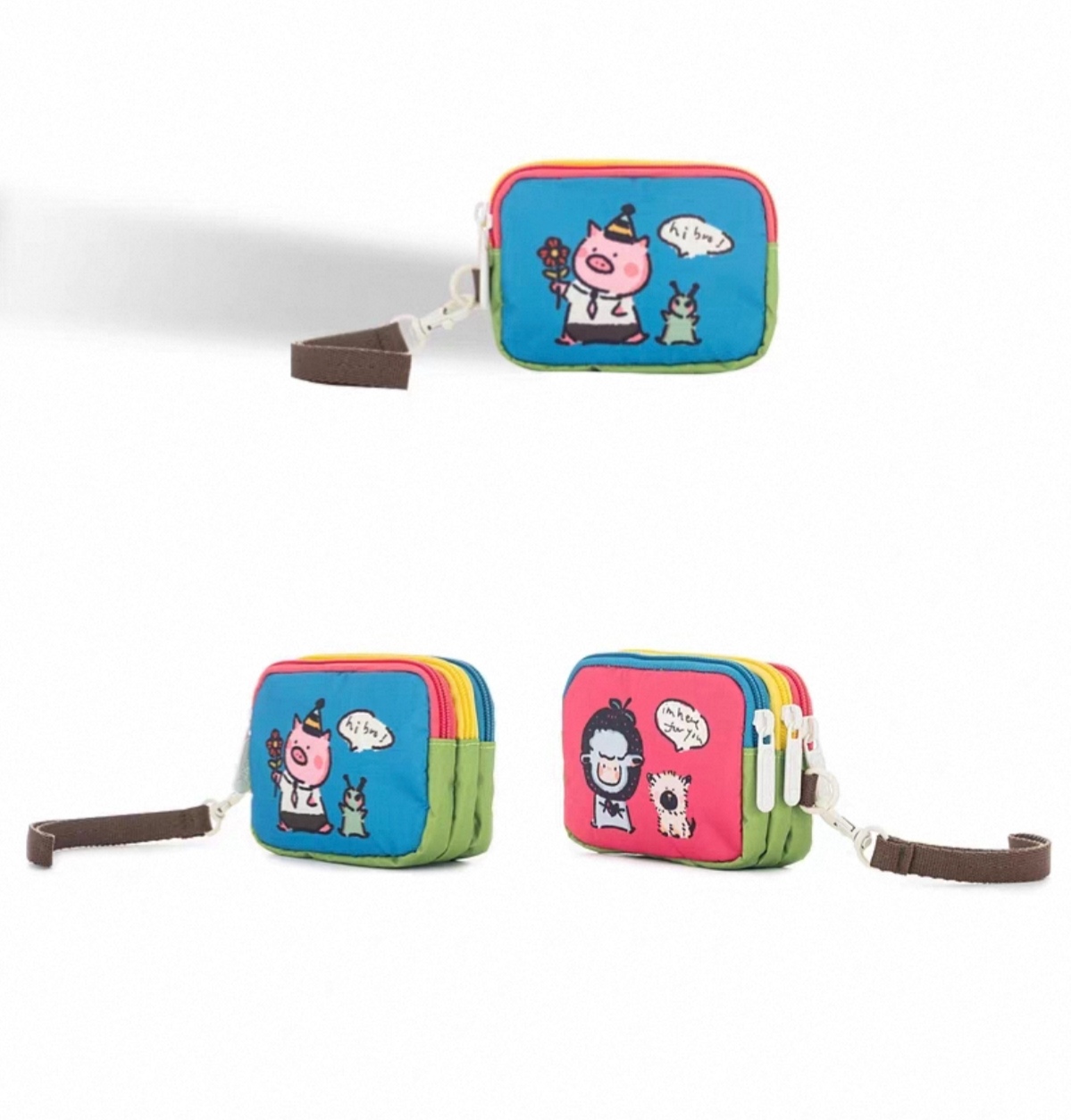 New Little Lamb Baudelaire Series Color-Block Cute Animal Three-Zipper Clutch Bag Handbag Storage Bag