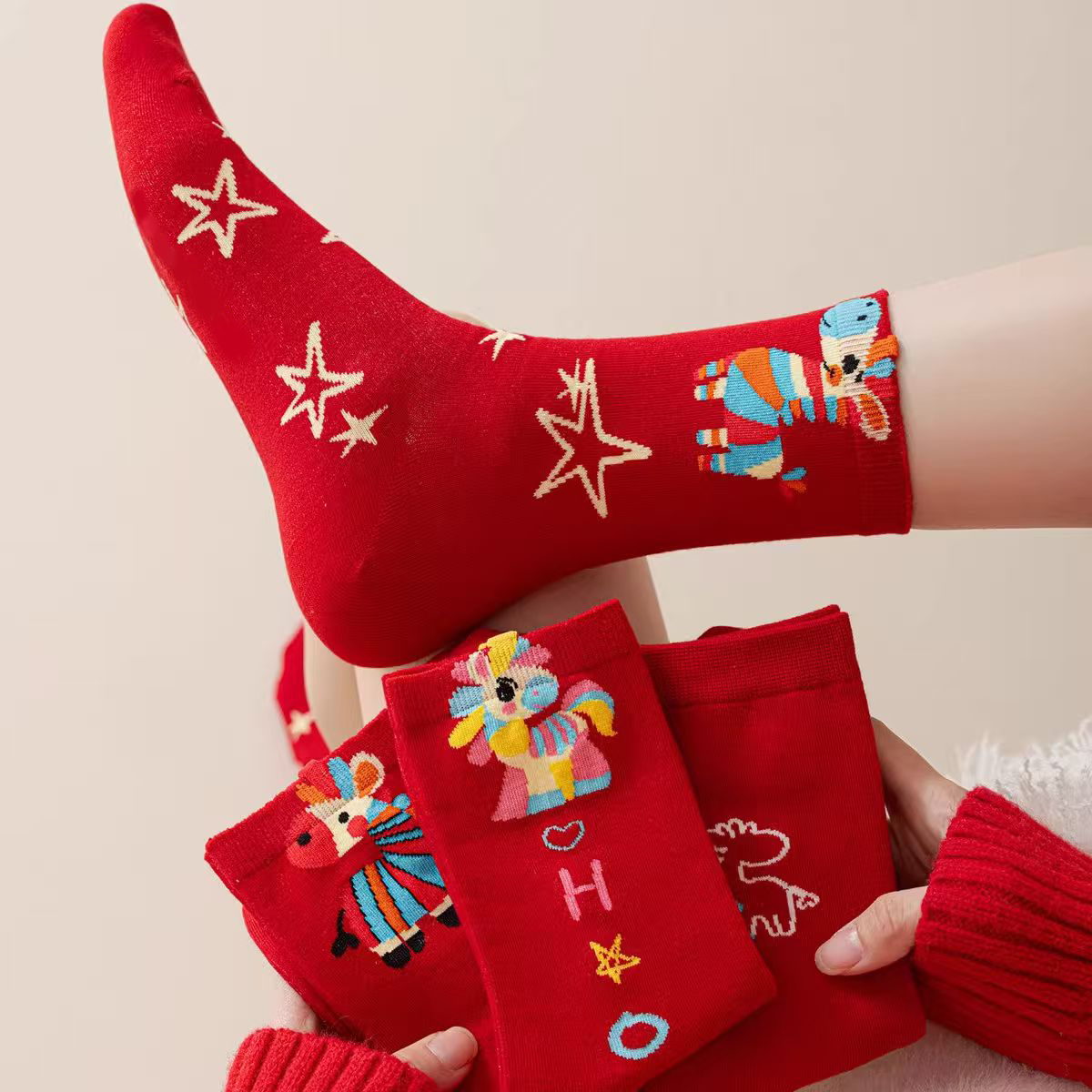 Year of the Horse Zodiac Year Socks Women's New Year Gift Box Red Socks 2026 Horse Zodiac Autumn and Winter Men's Couple Socks