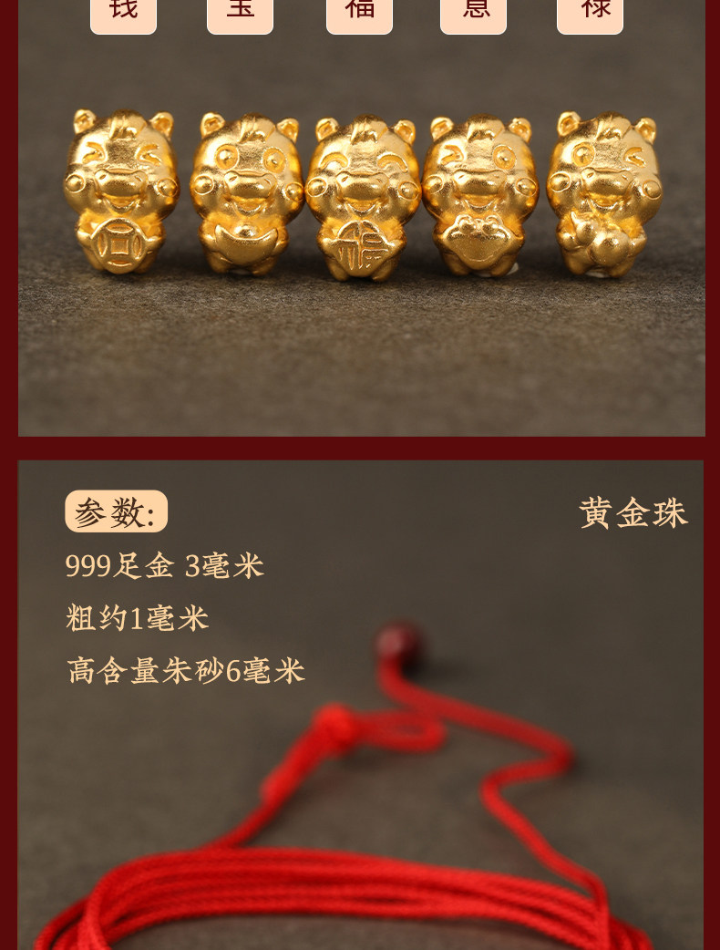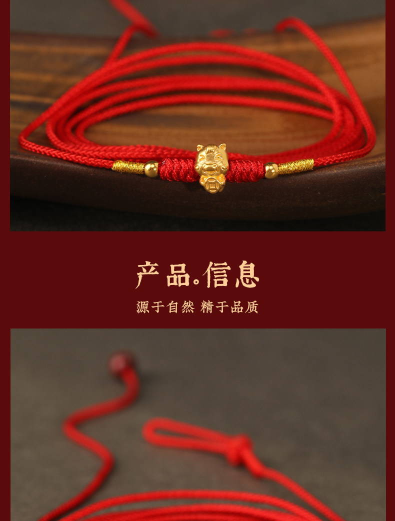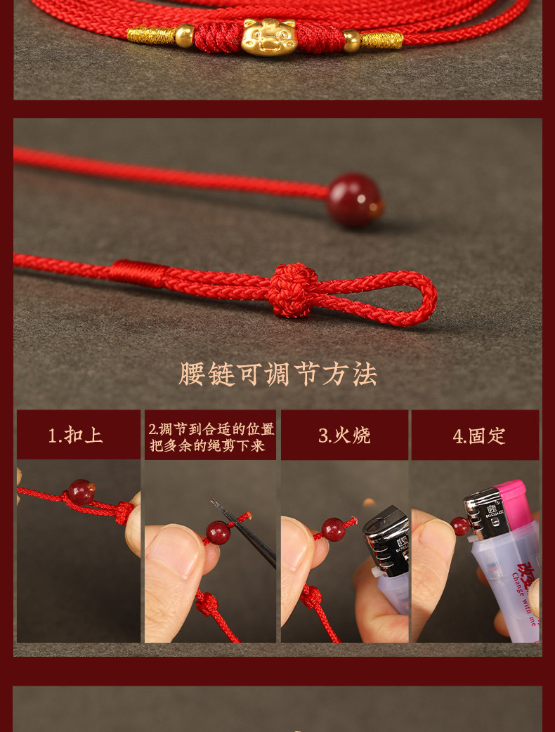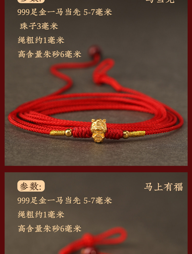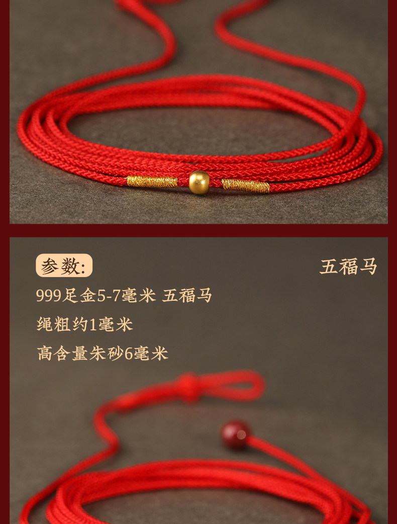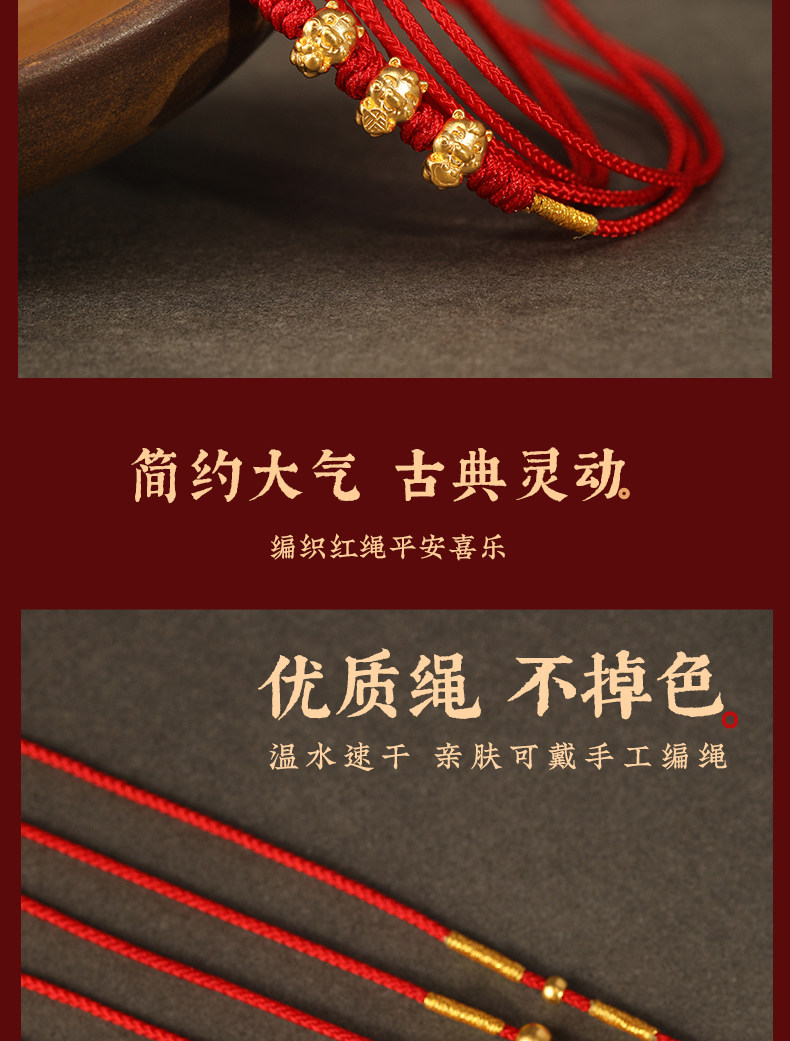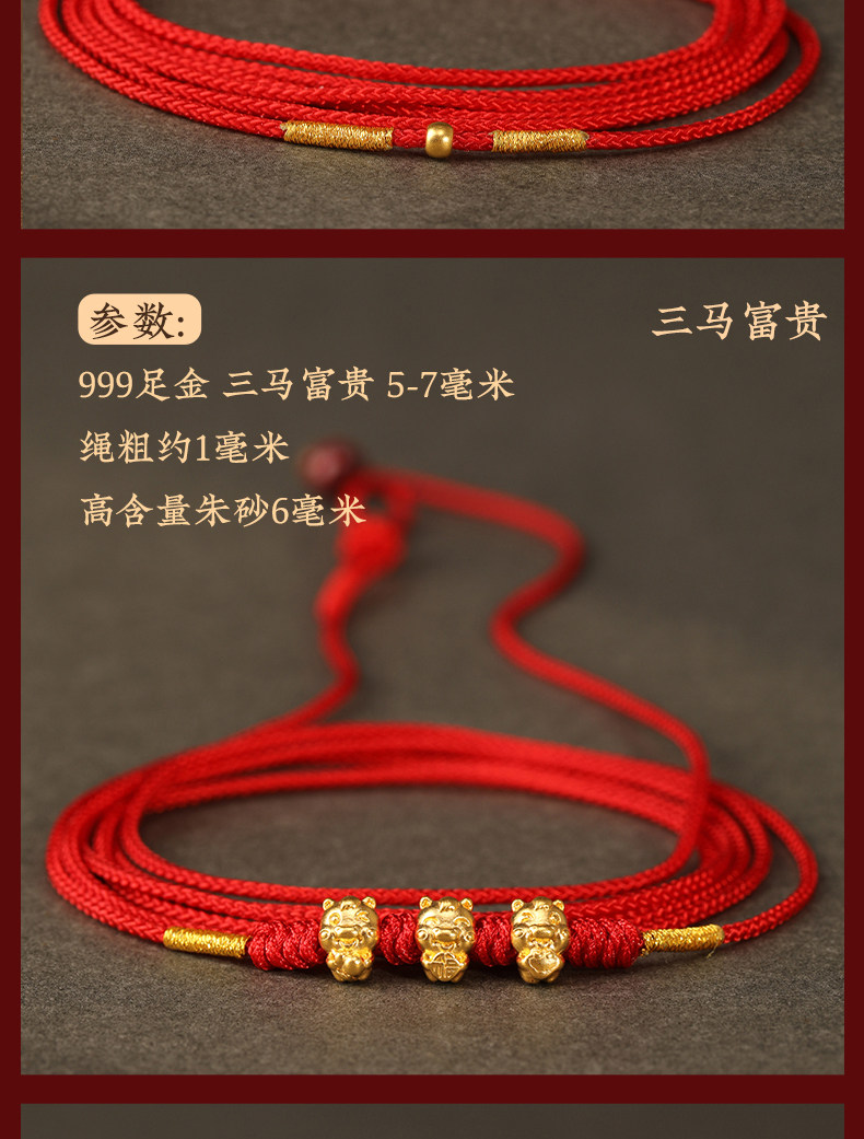 Gold Horse Year Zodiac Year 999 Pure Gold Money-Attracting Waist Chain for Women, Auspicious Red Waist Rope, Unisex Fortune Bead Red Rope