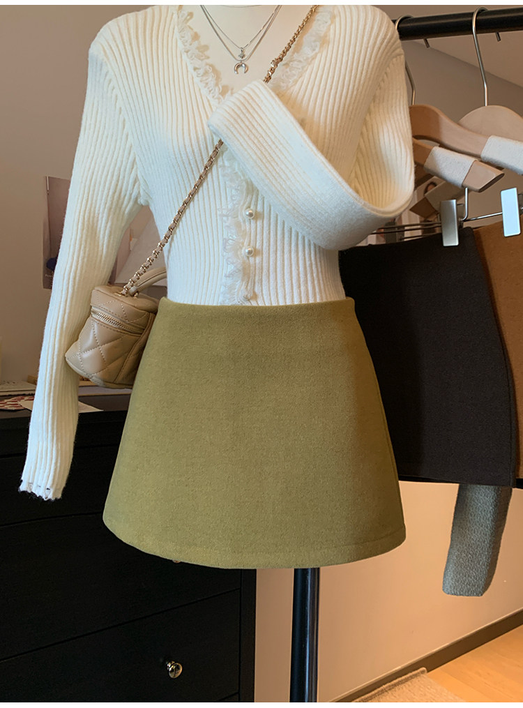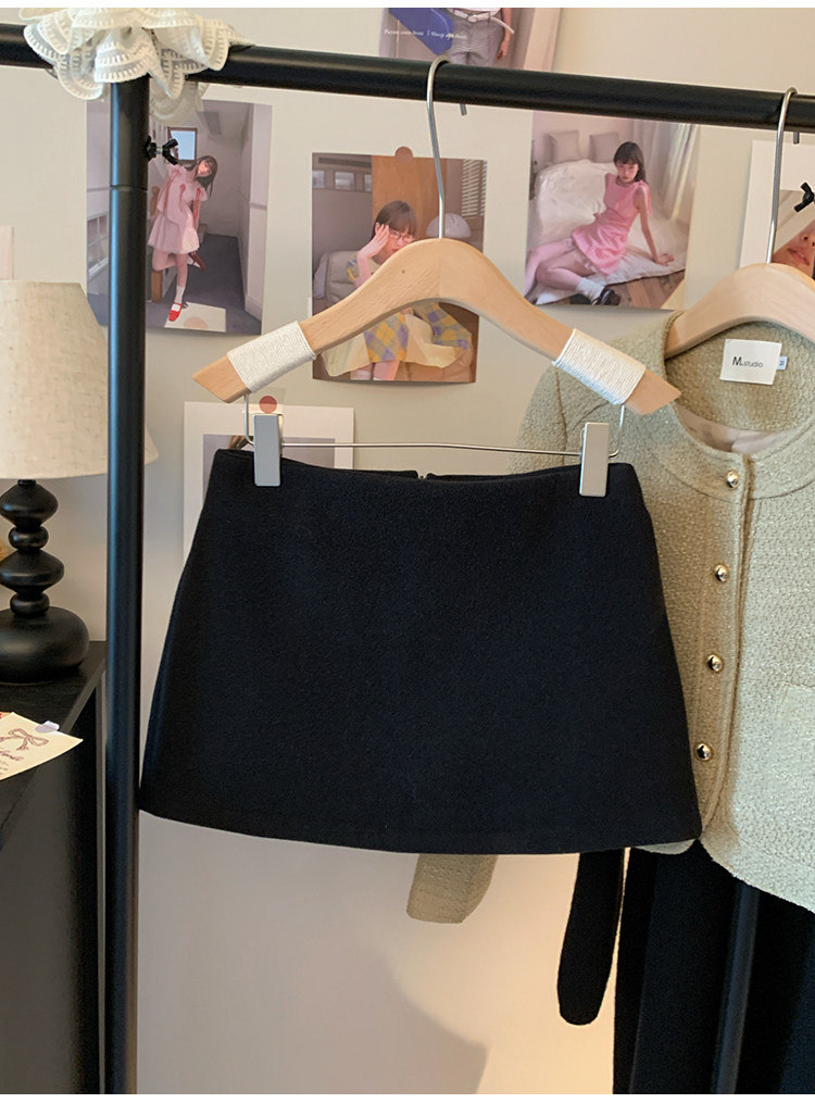 American-Style Spicy Girl Woolen Mini Skirt for Women, Spring Season, Petite Size, Black Sexy Ultra-Short A-Line Skirt, Bodycon Skirt