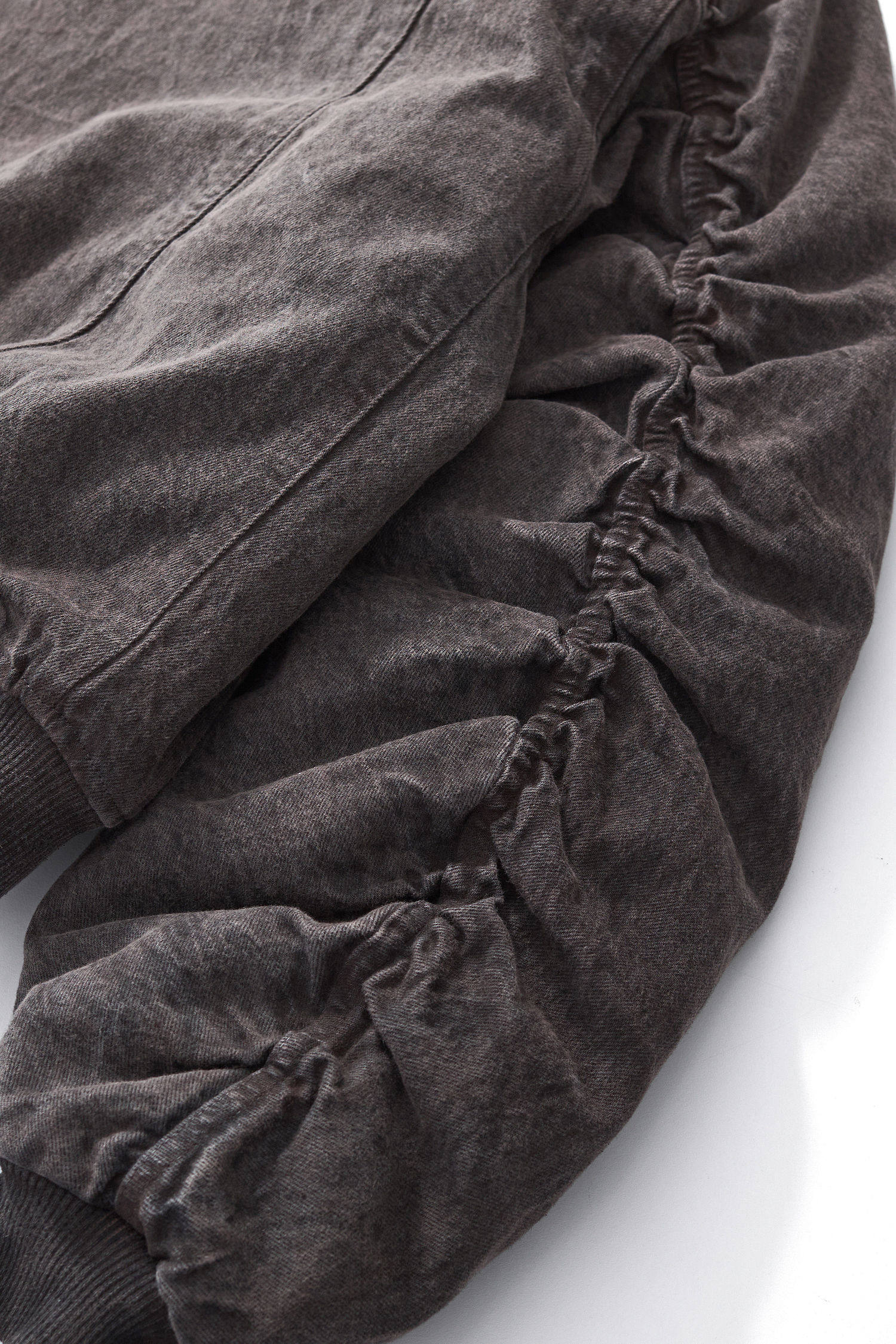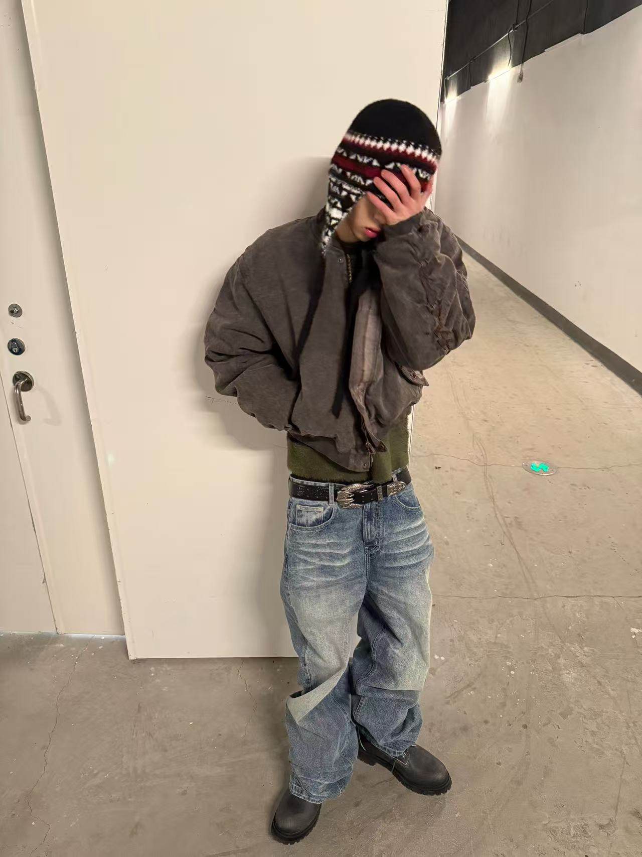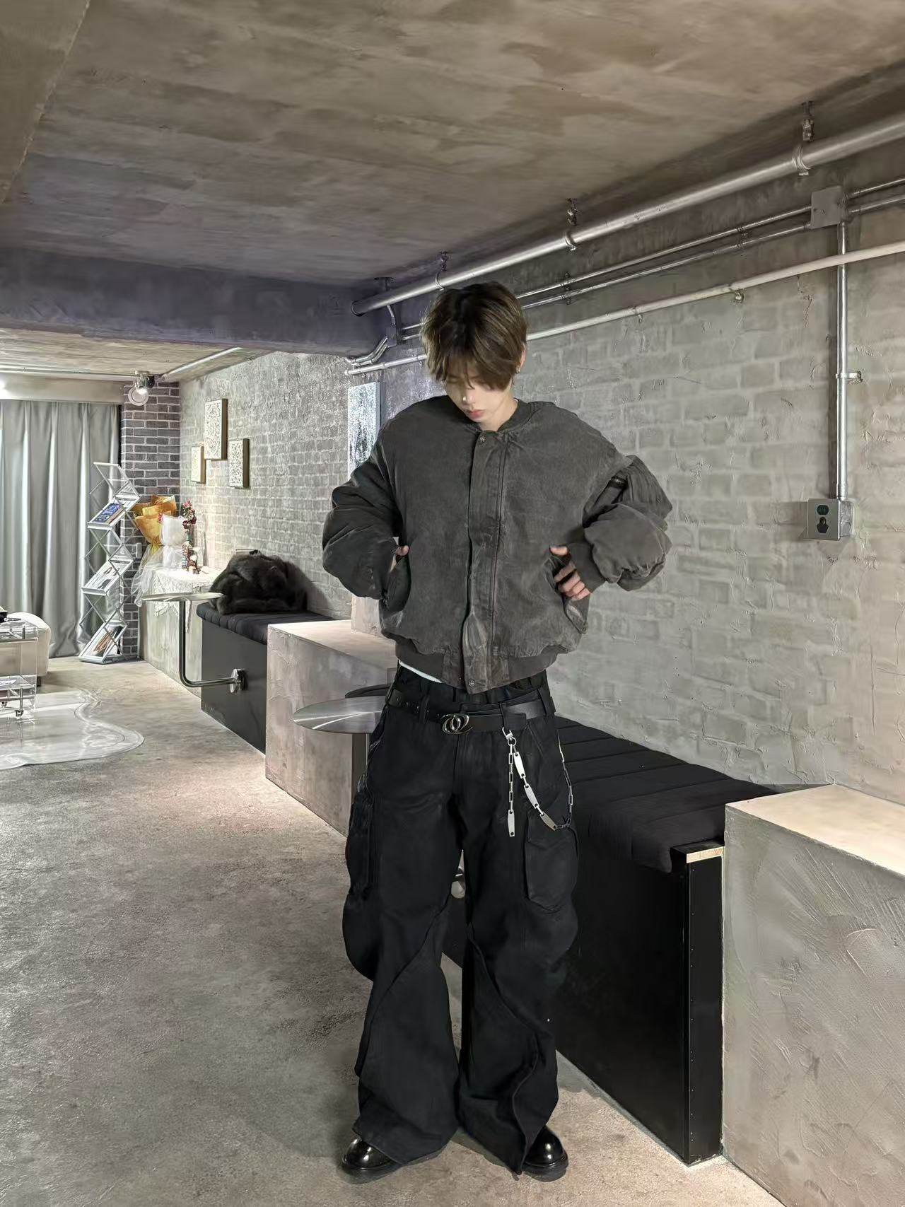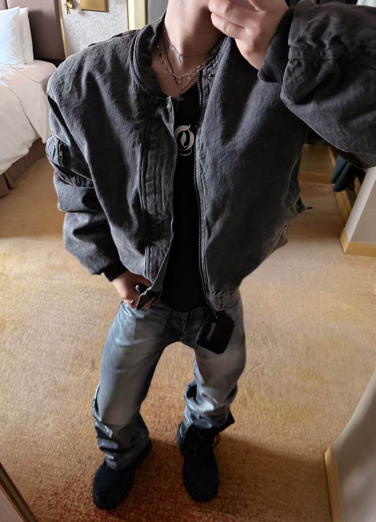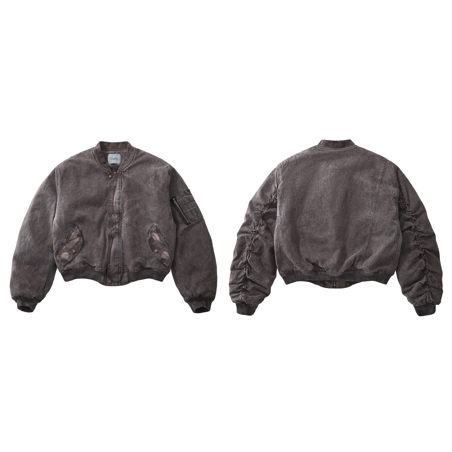 Suninwave 25Aw'Xia Shan Hu' Flame Gray Heavy Washed Dirty-Dyed Silhouette Bomber Cotton Jacket