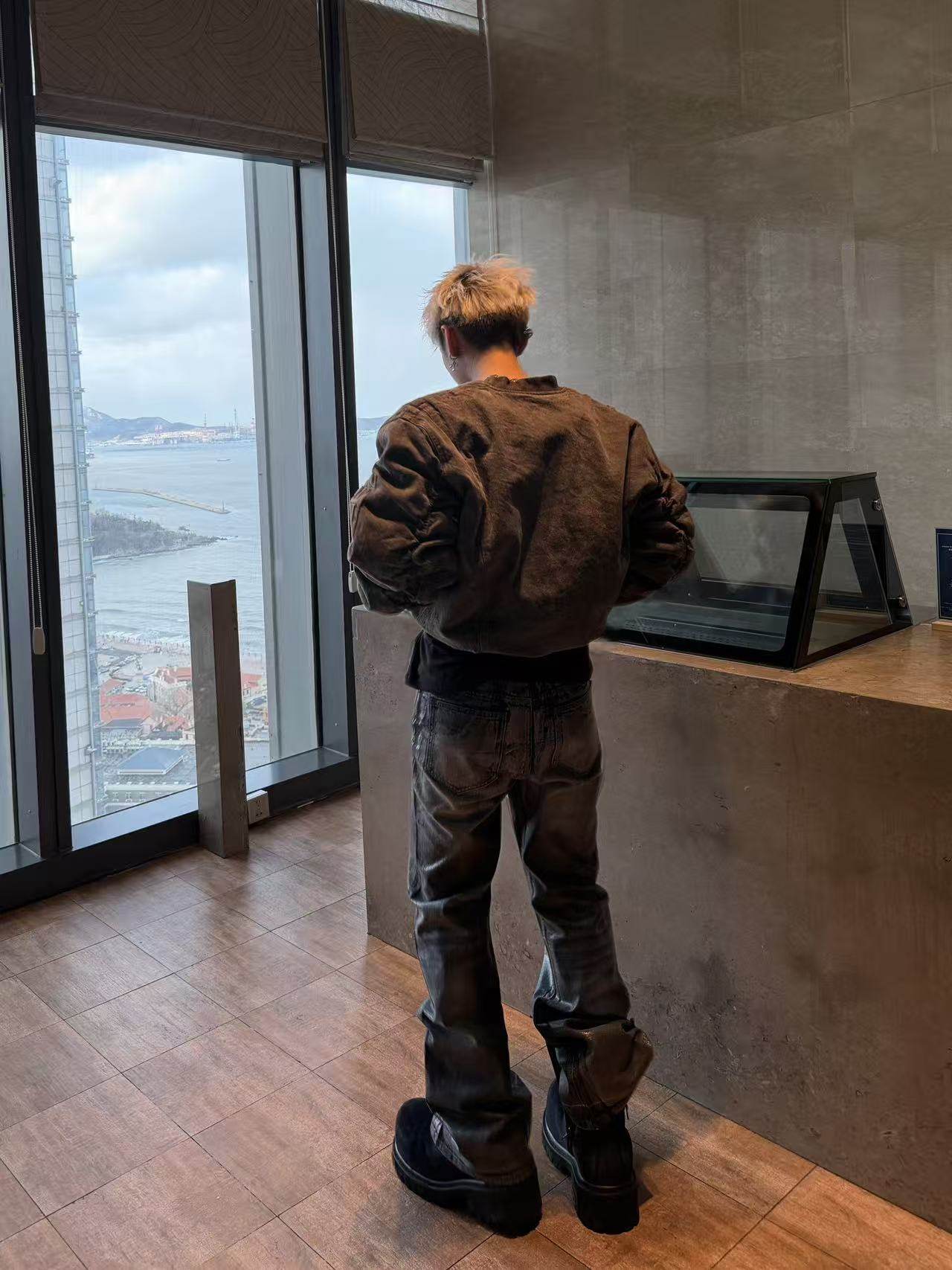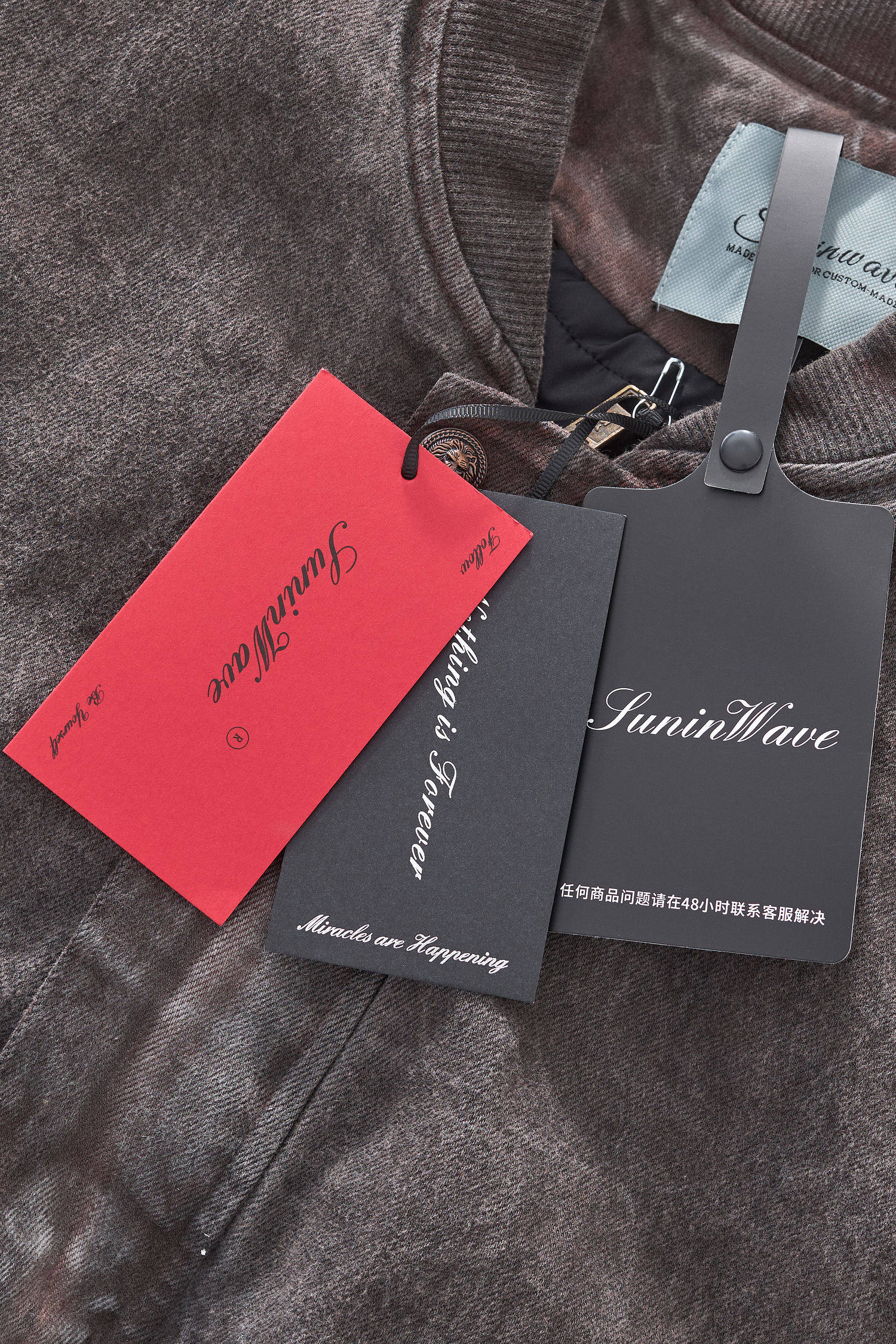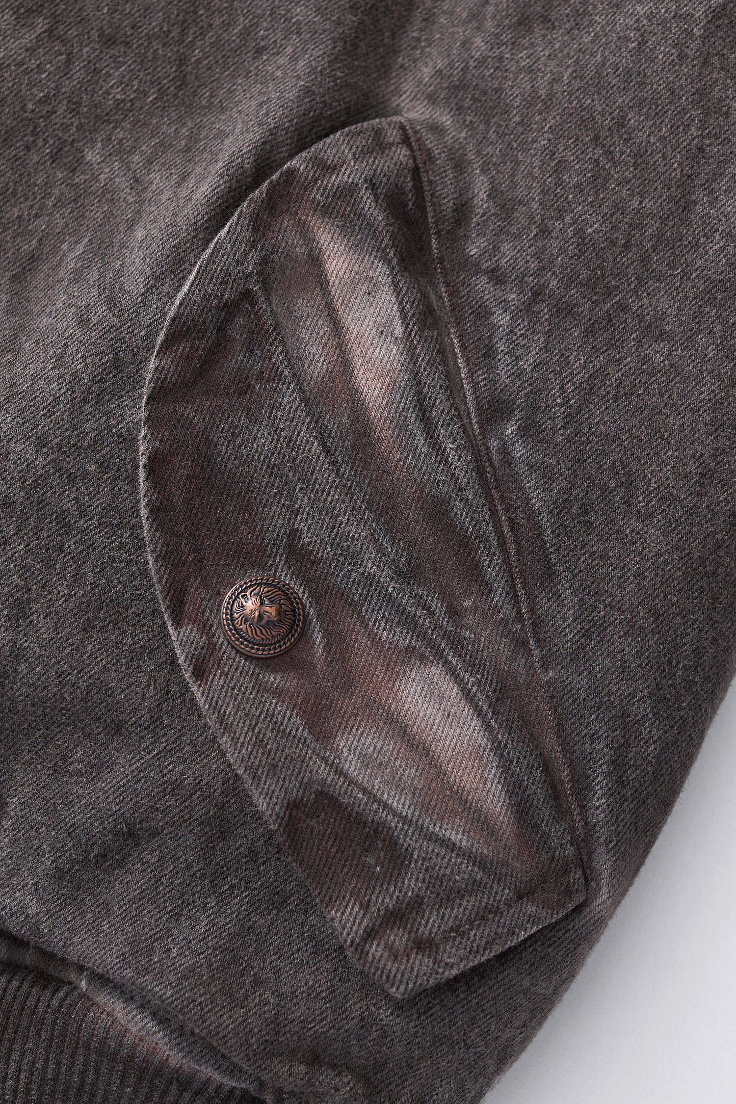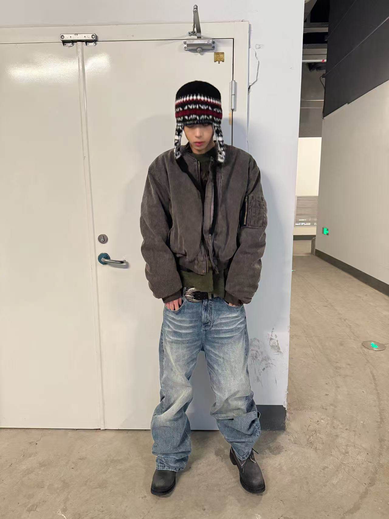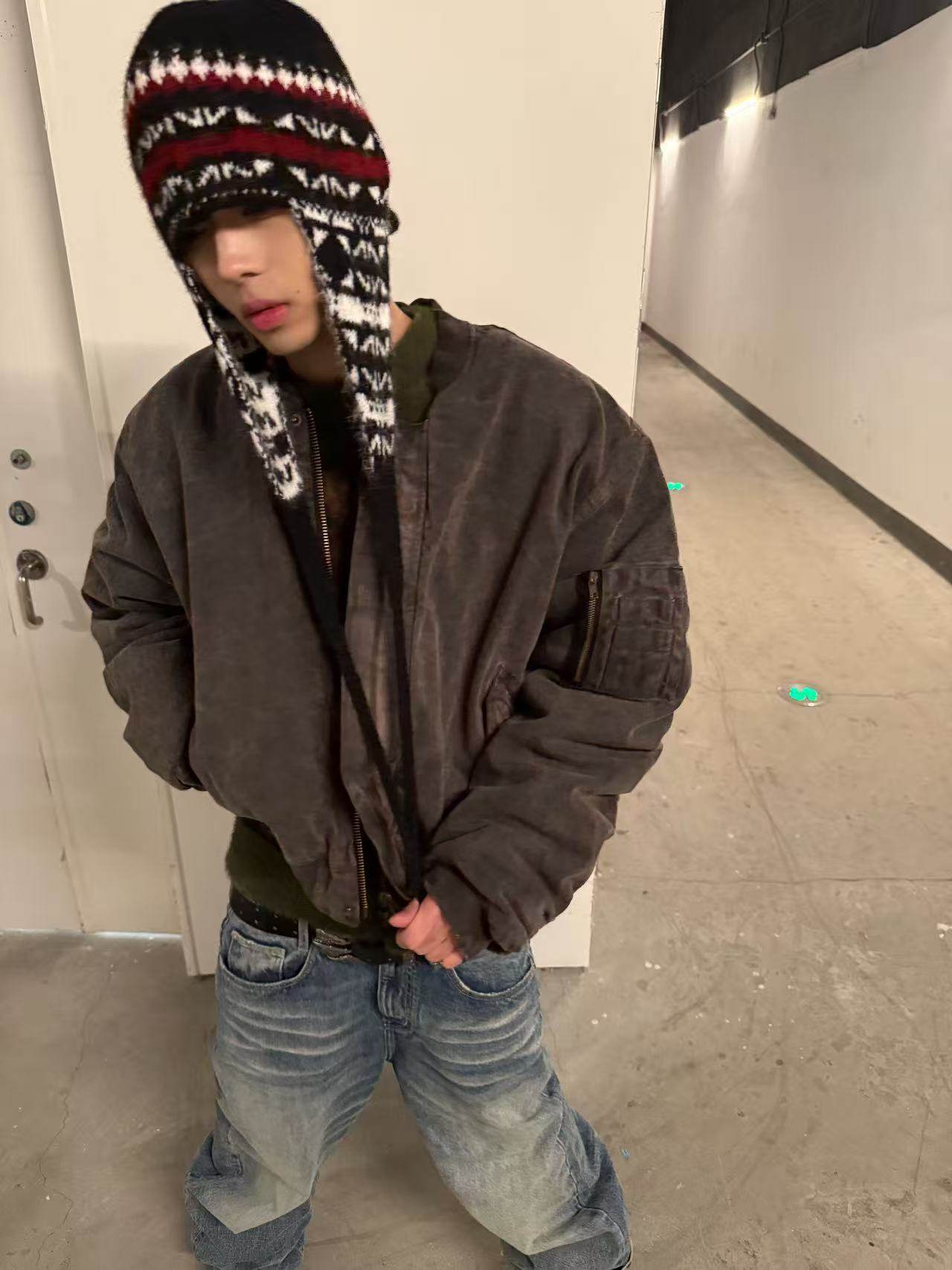 Suninwave 25Aw'Xia Shan Hu' Flame Gray Heavy Washed Dirty-Dyed Silhouette Bomber Cotton Jacket