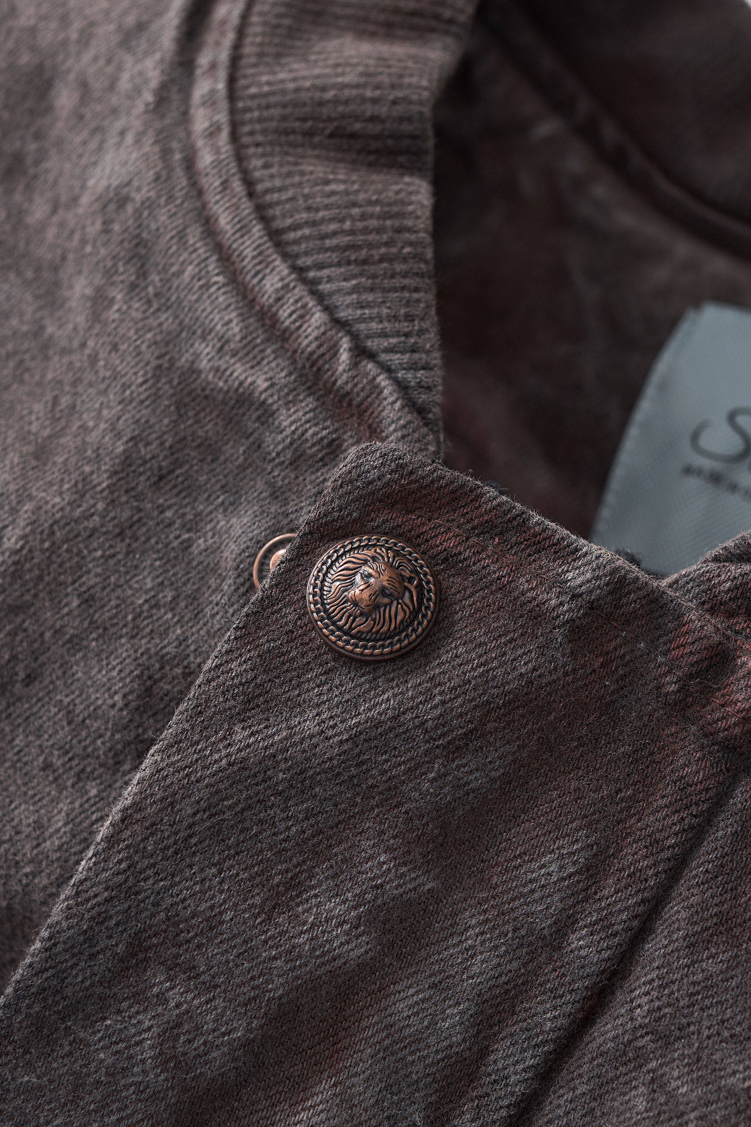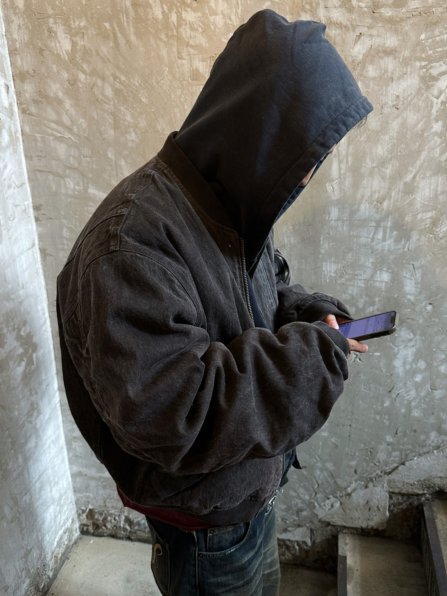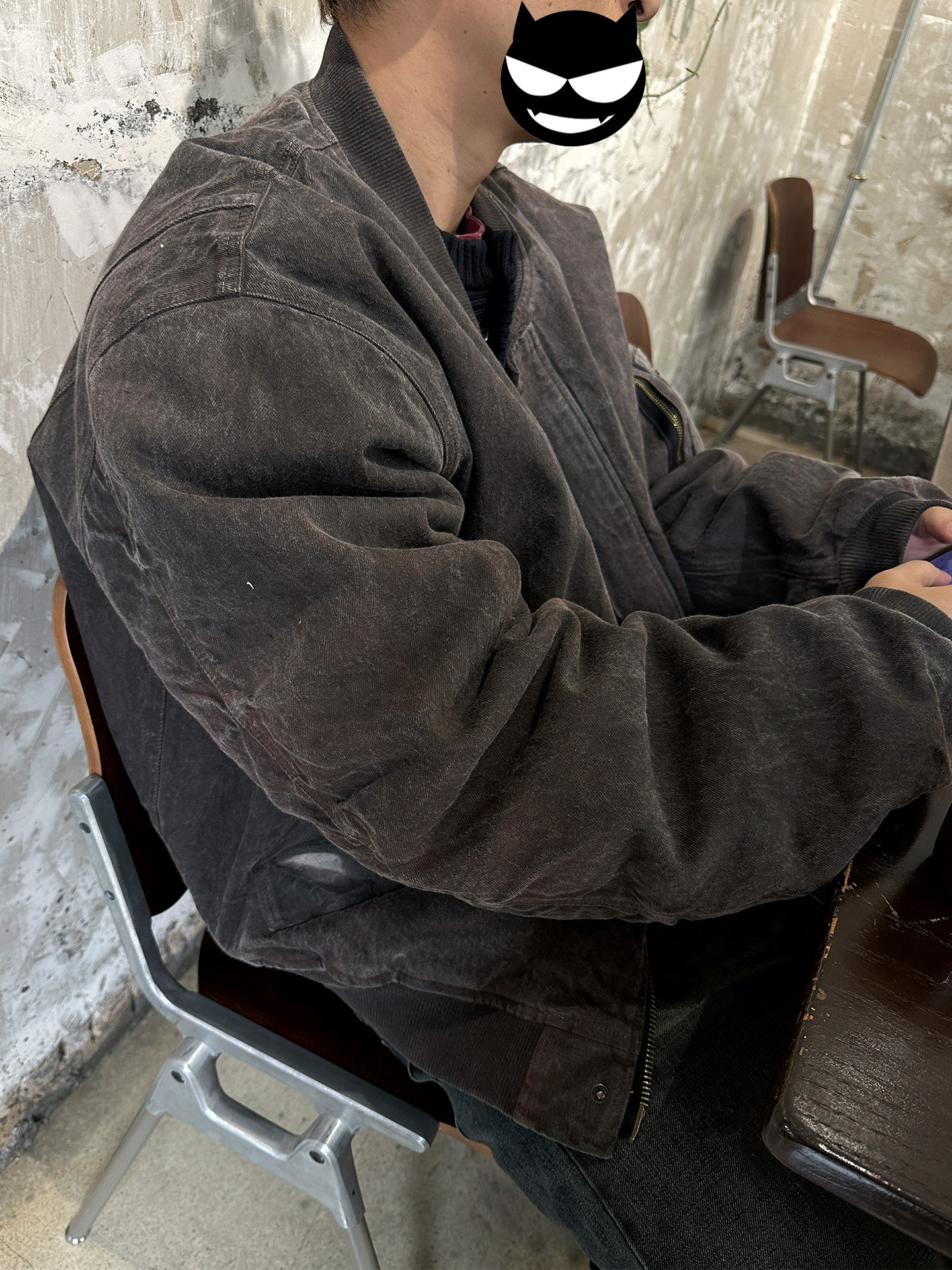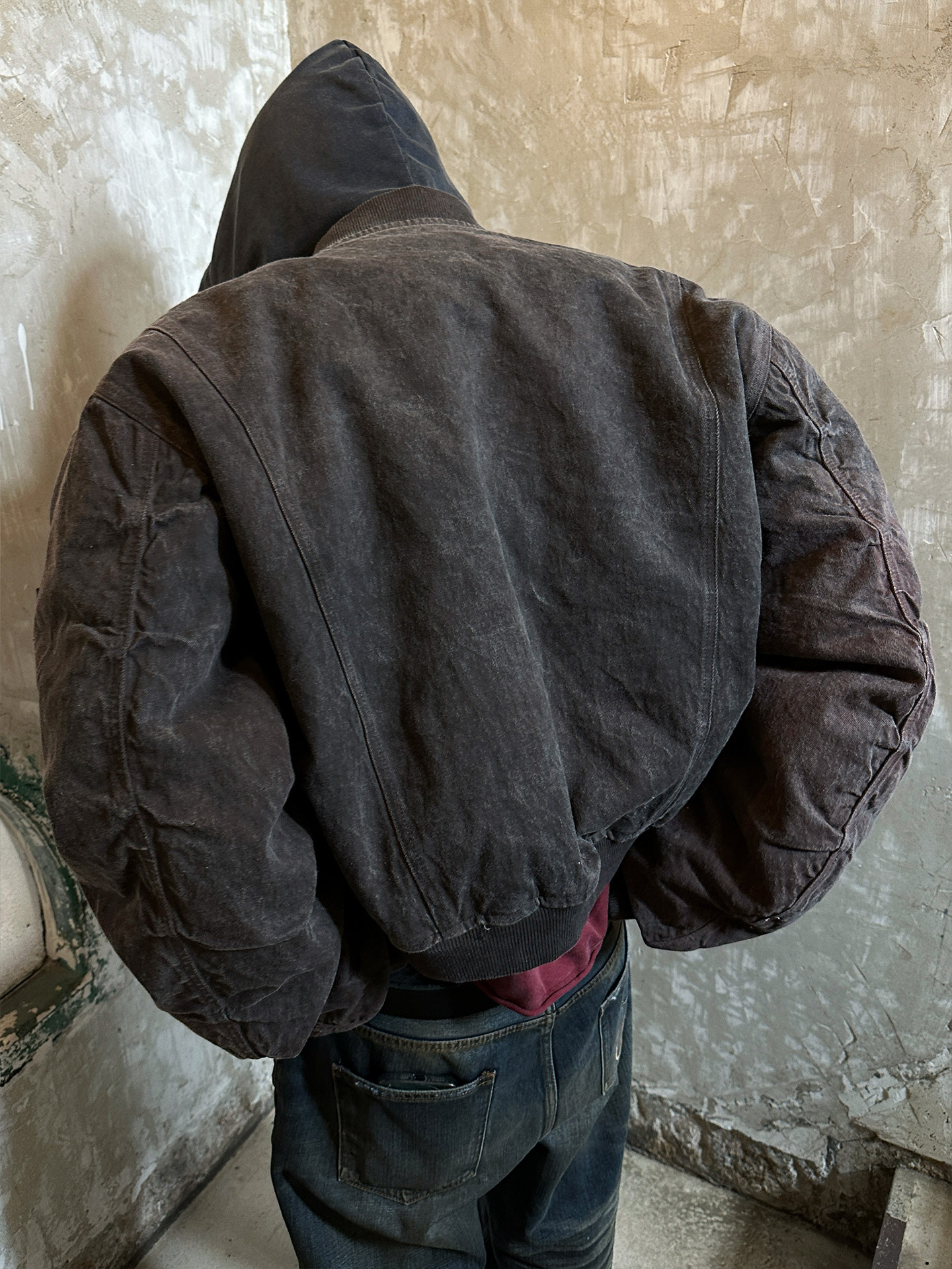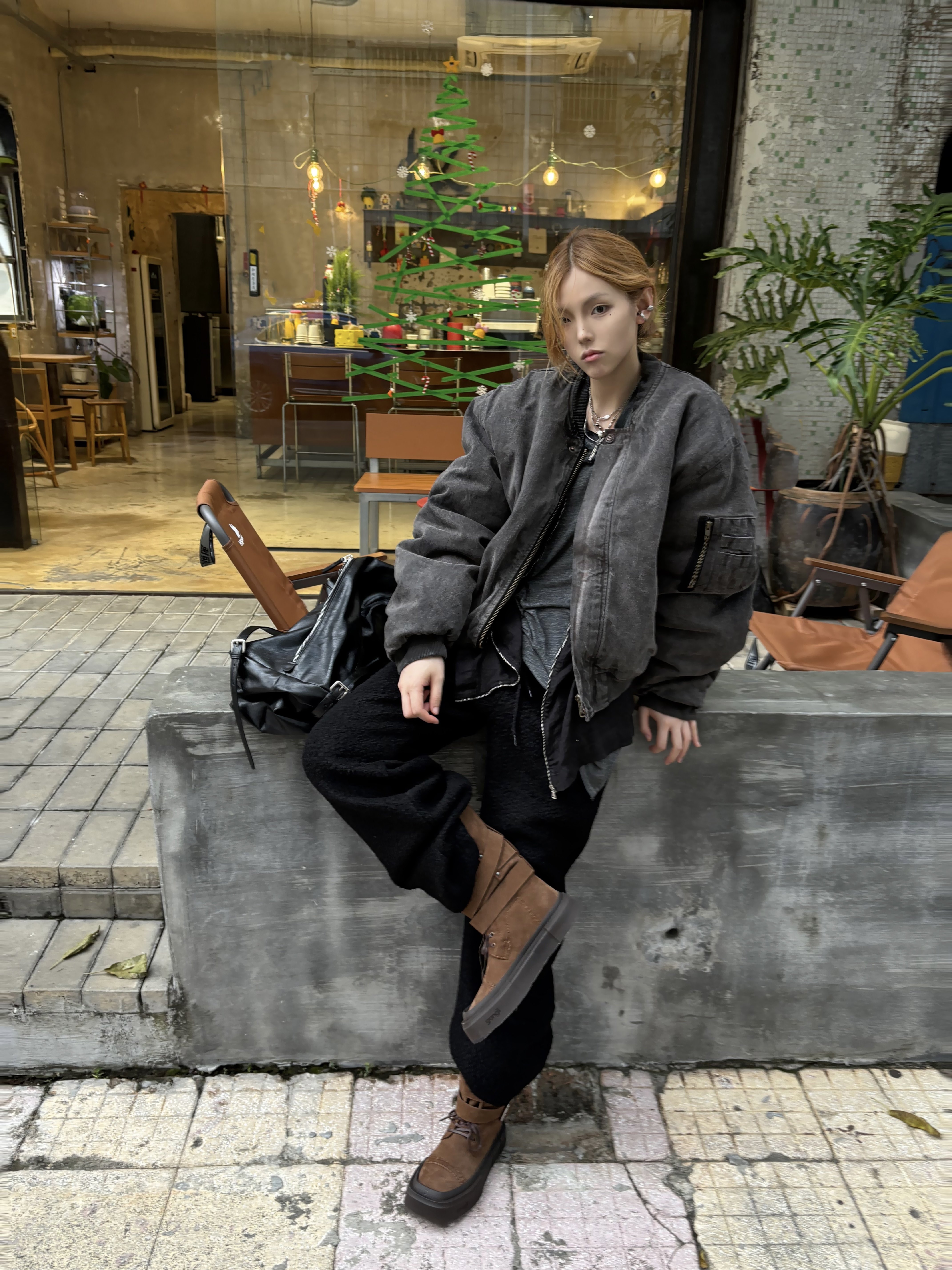 Suninwave 25Aw'Xia Shan Hu' Flame Gray Heavy Washed Dirty-Dyed Silhouette Bomber Cotton Jacket