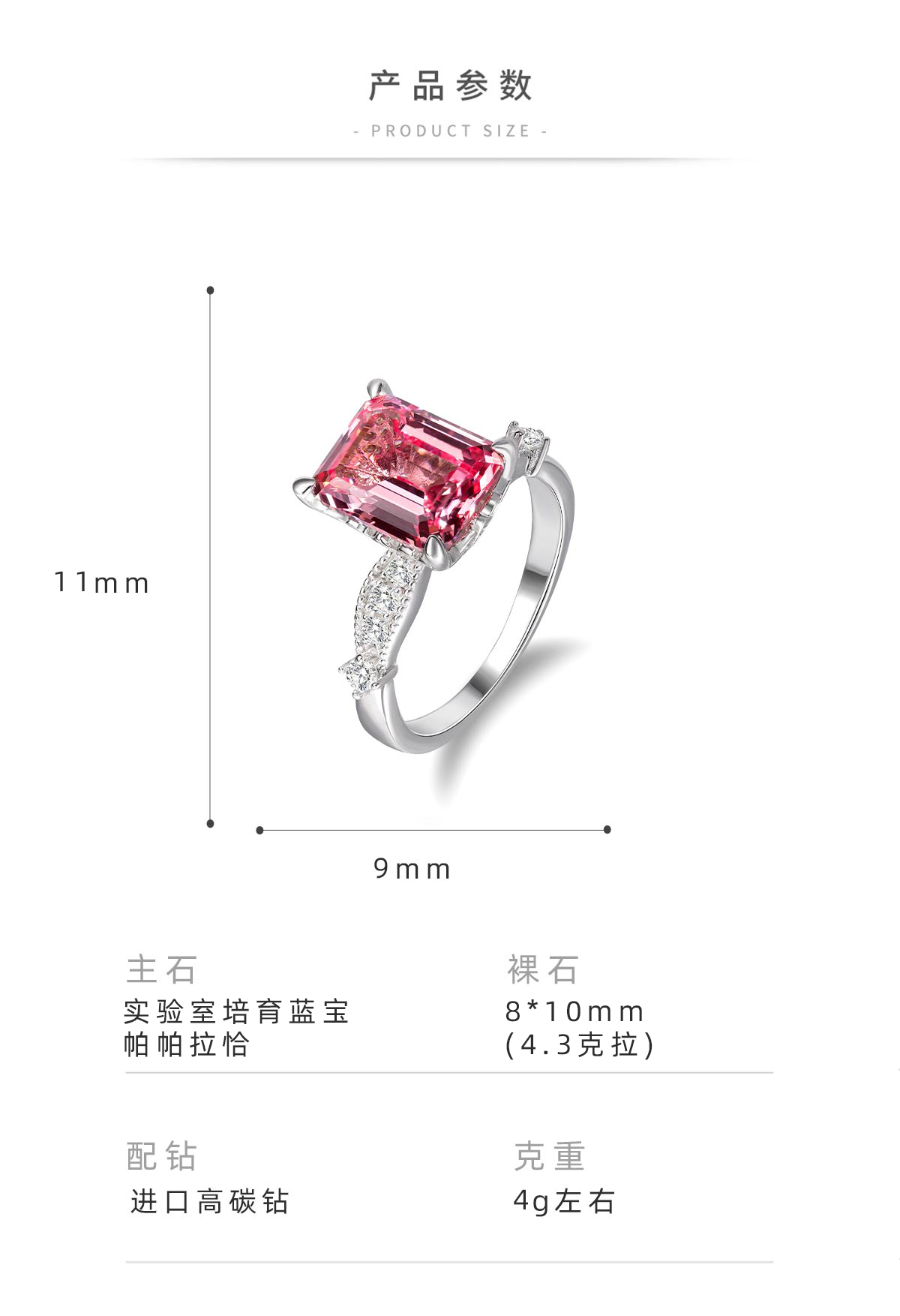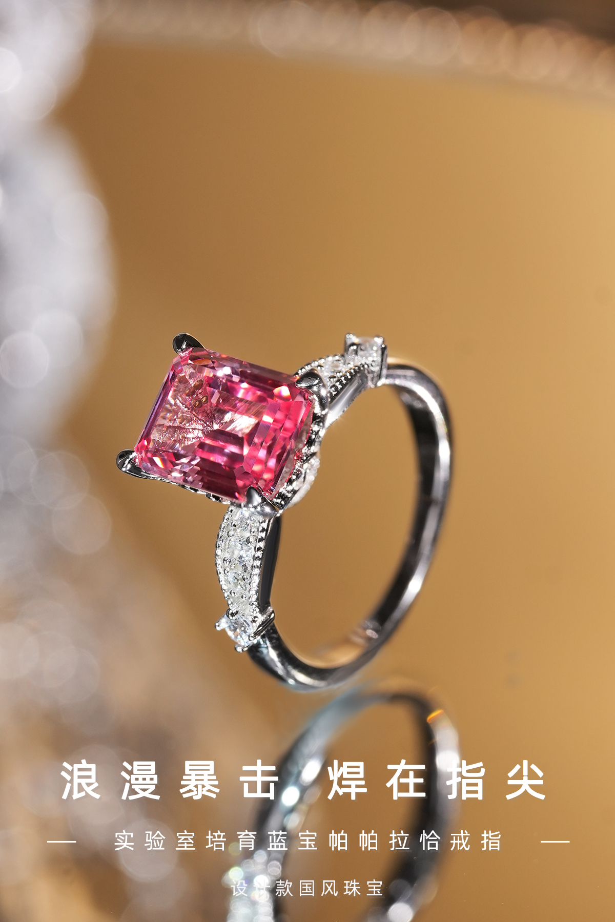 Vising Jewelry Lab-Grown Sapphire Padparadscha 4.3 Carat Ring Pink Gemstone Pink Diamond