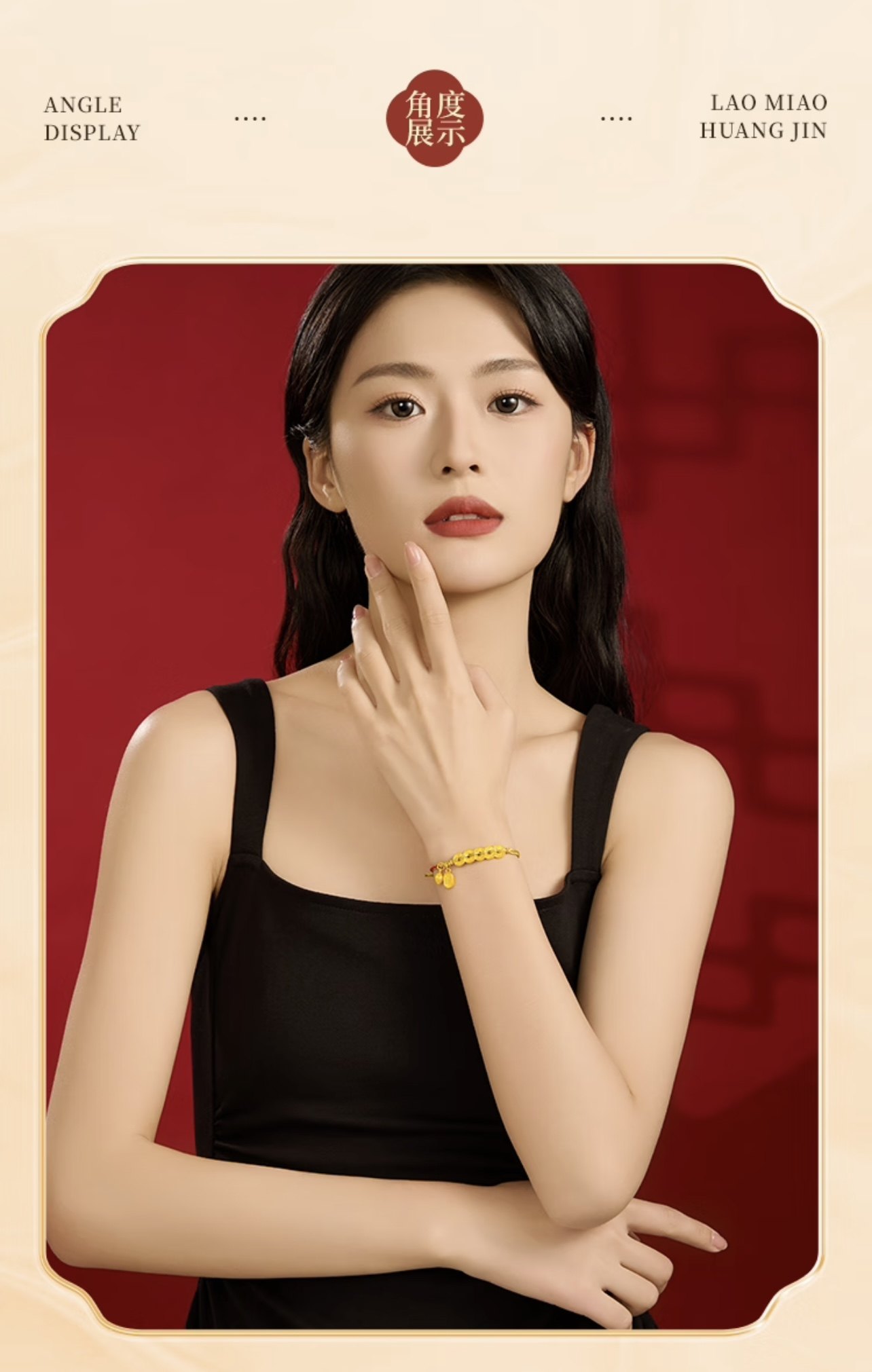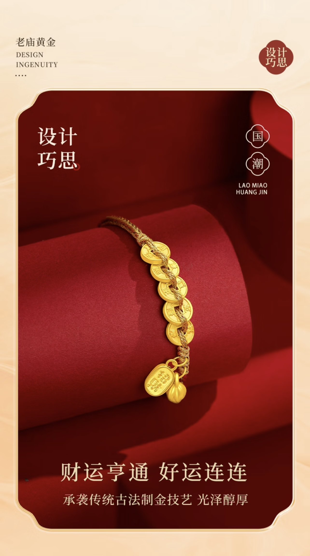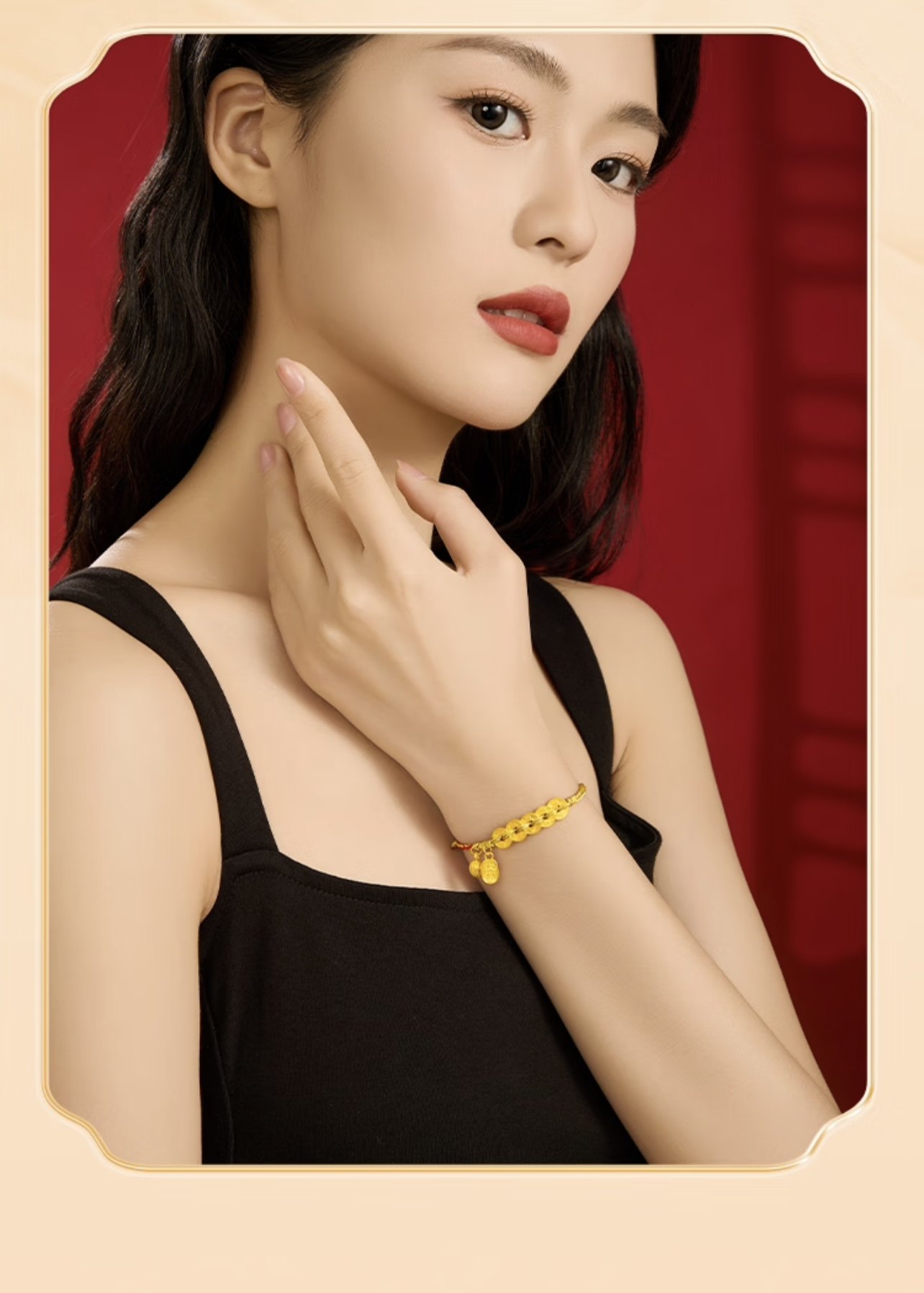 Old Temple Gold Bracelet with Five Emperors Coins and Red String for the Year of Birth, Gold for Wealth and Good Fortune, Gift for Girlfriend or Valentine's Day