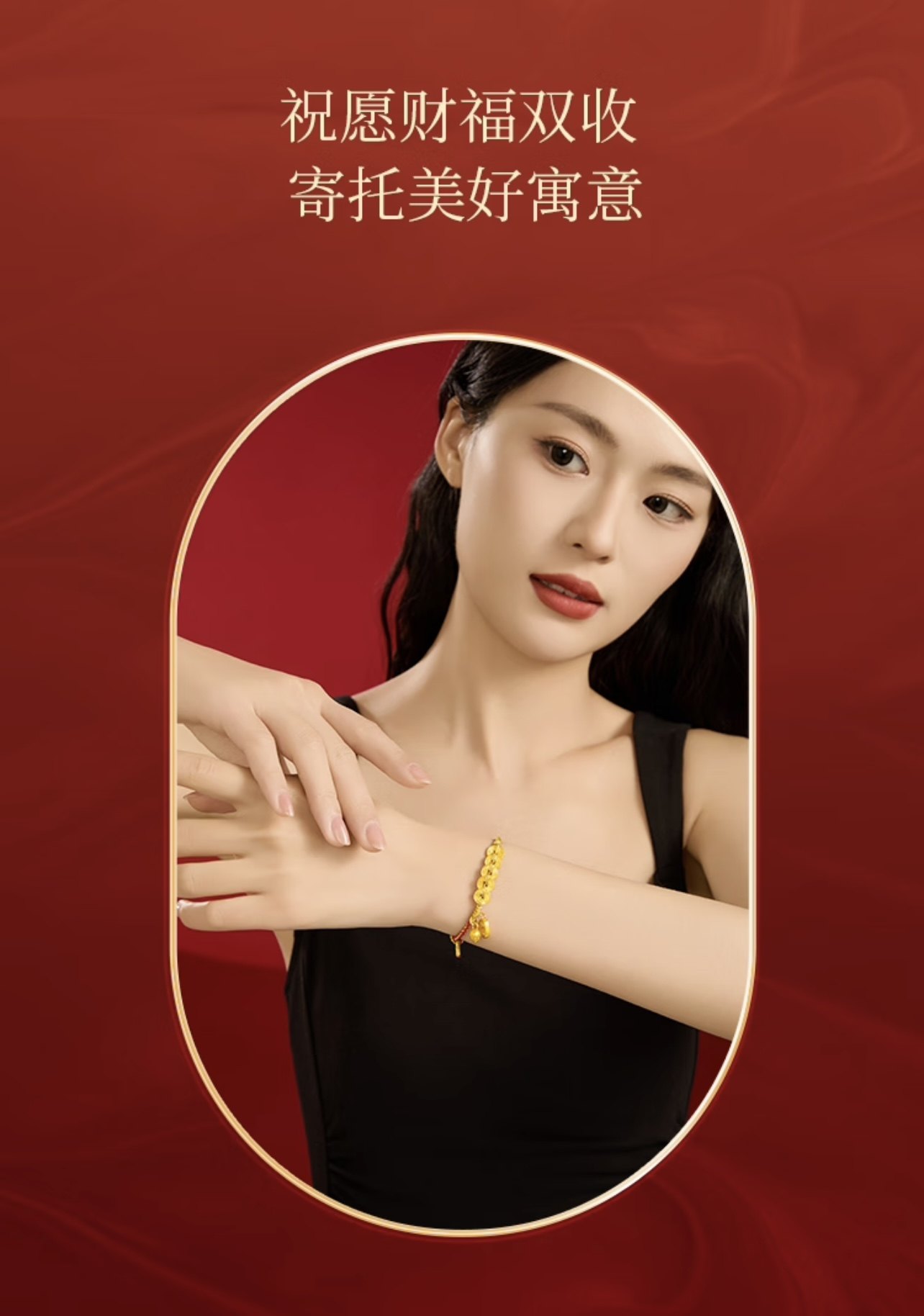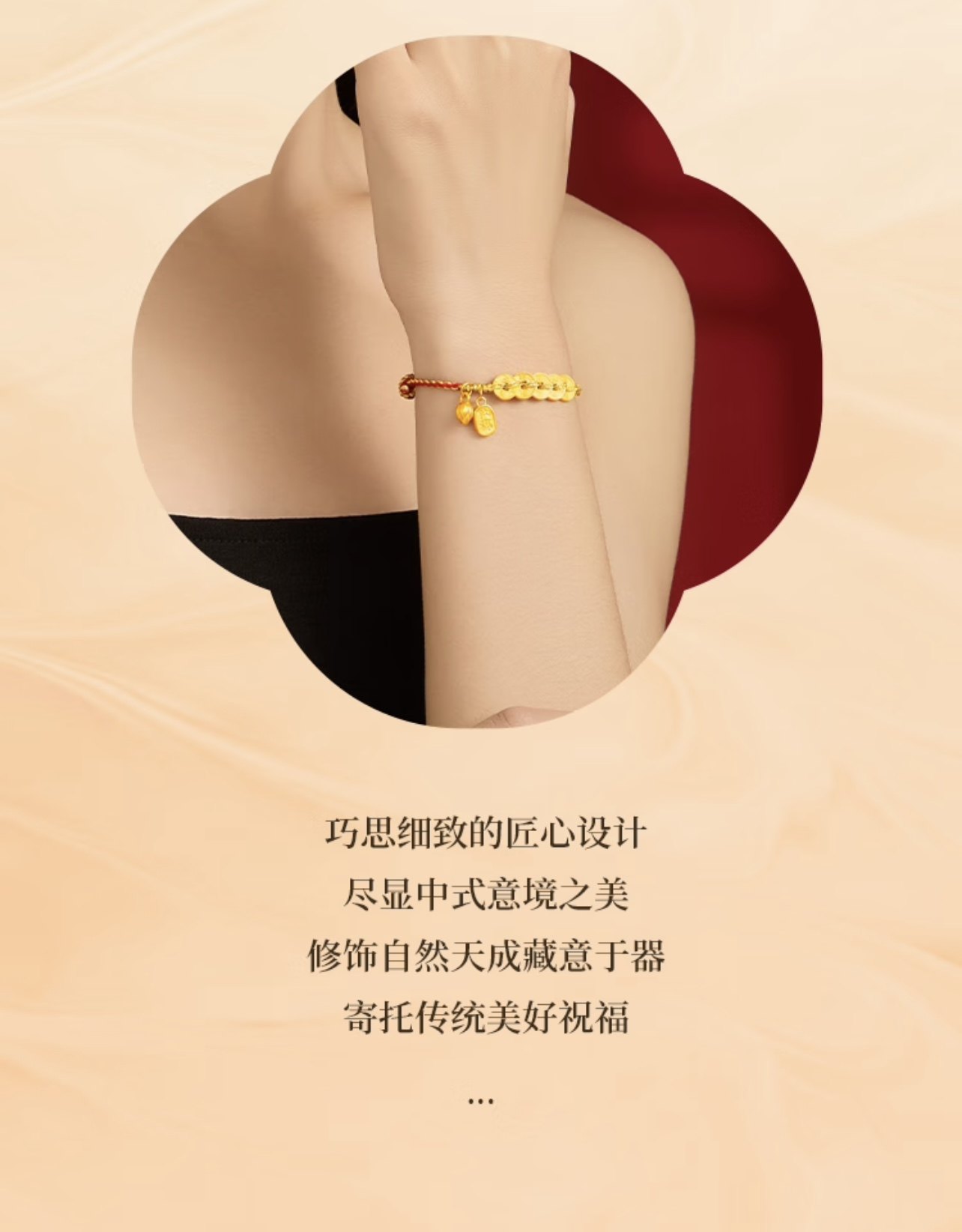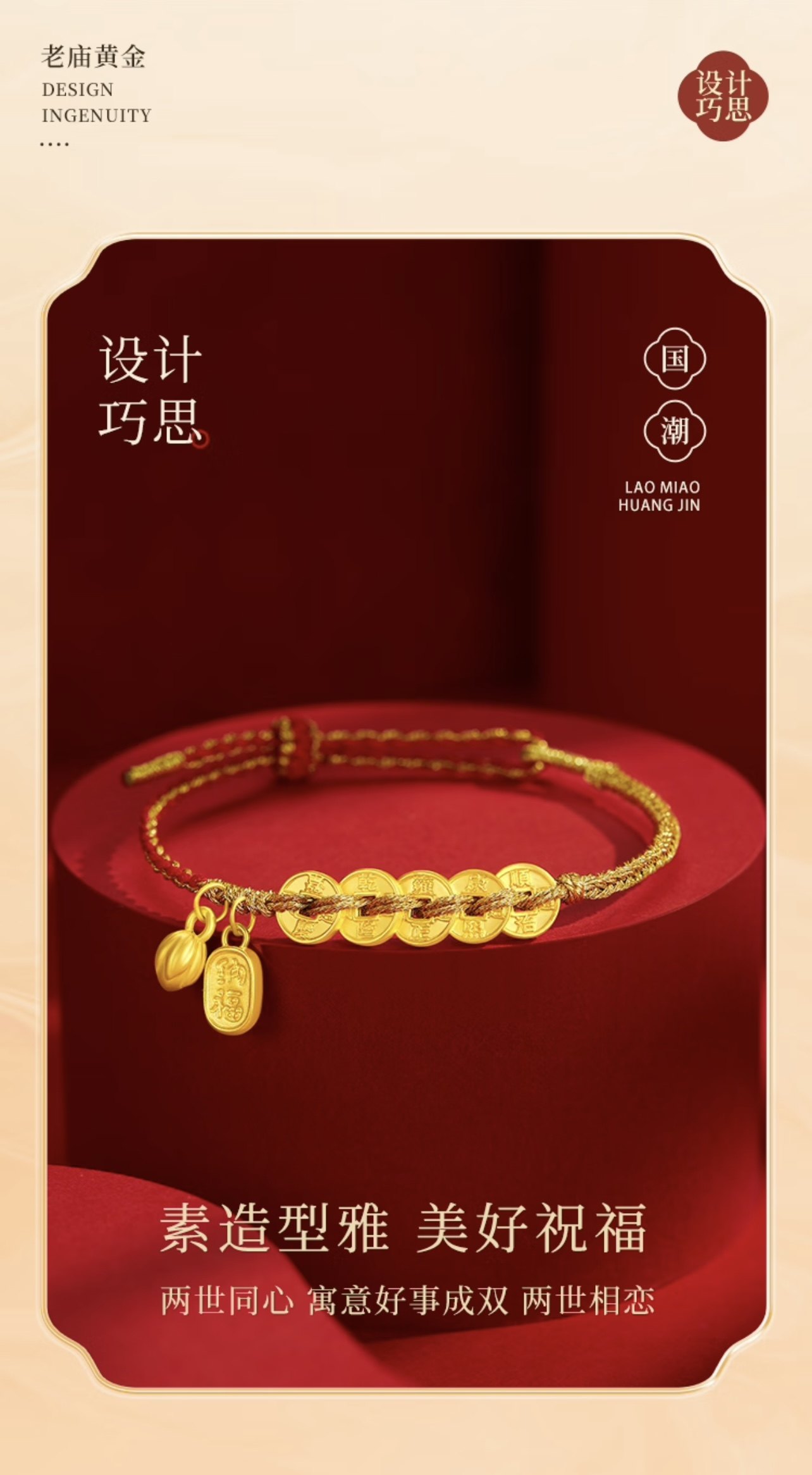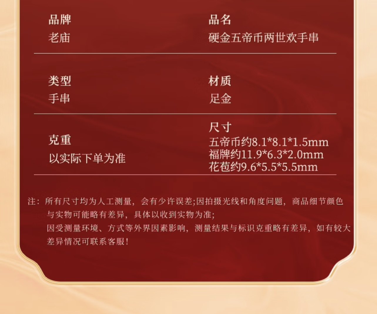 Old Temple Gold Bracelet with Five Emperors Coins and Red String for the Year of Birth, Gold for Wealth and Good Fortune, Gift for Girlfriend or Valentine's Day