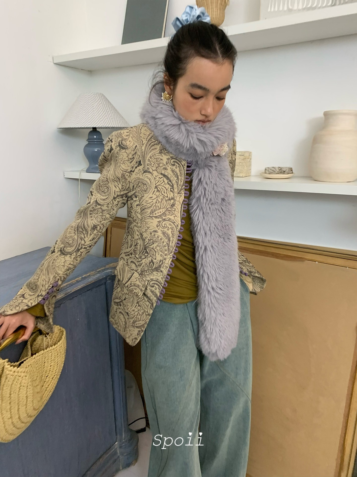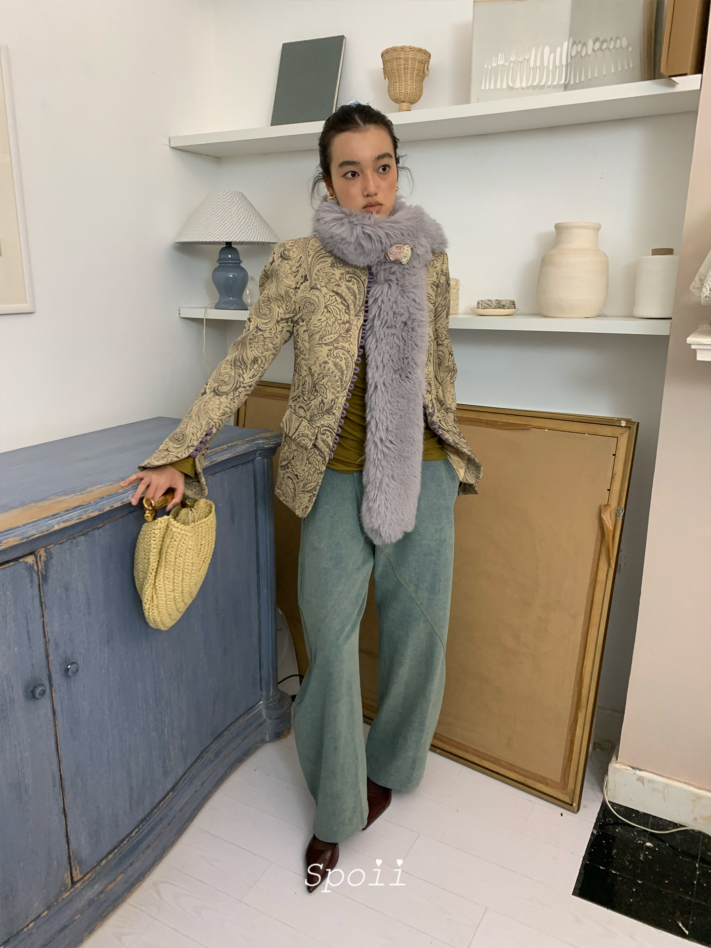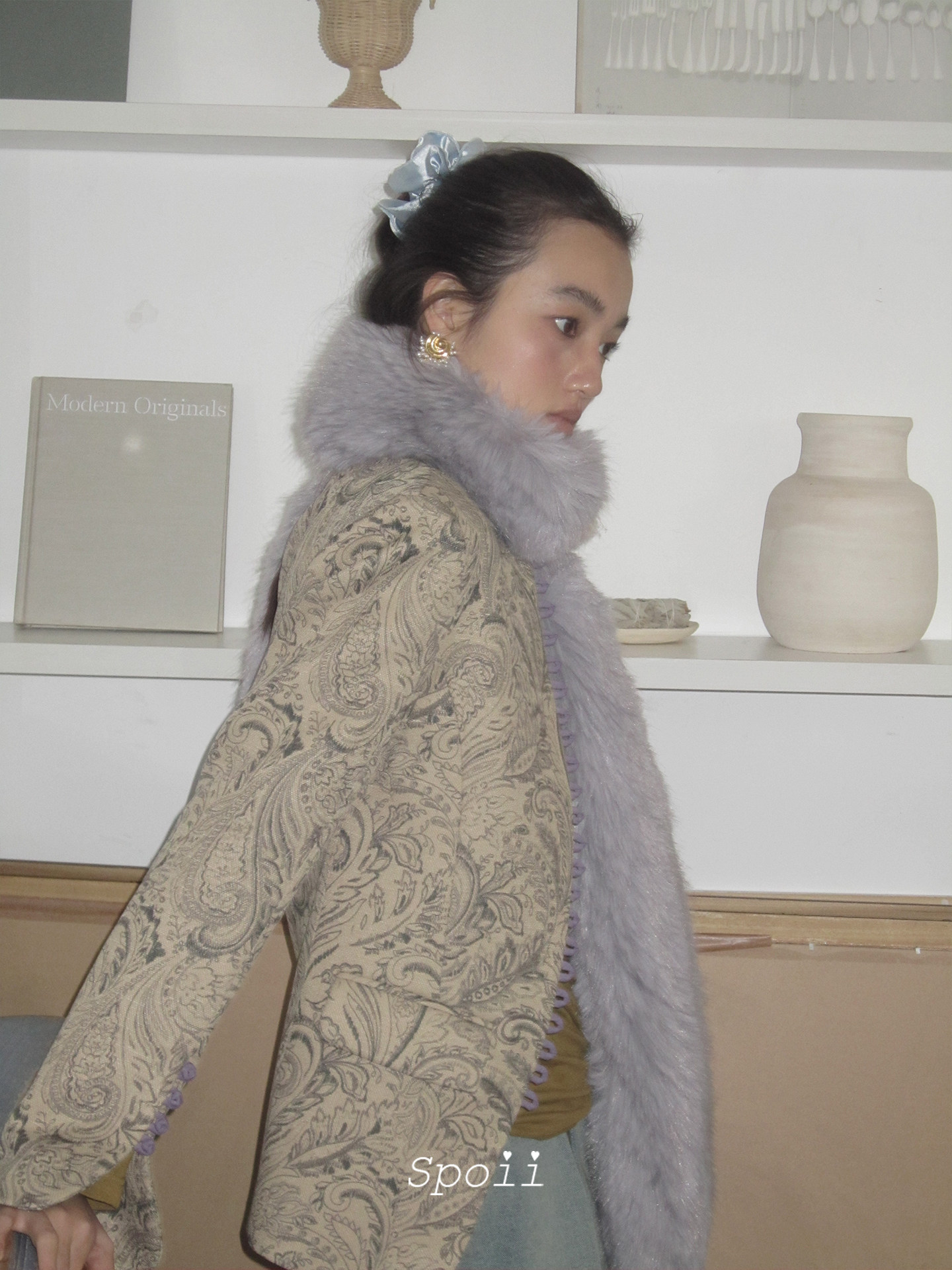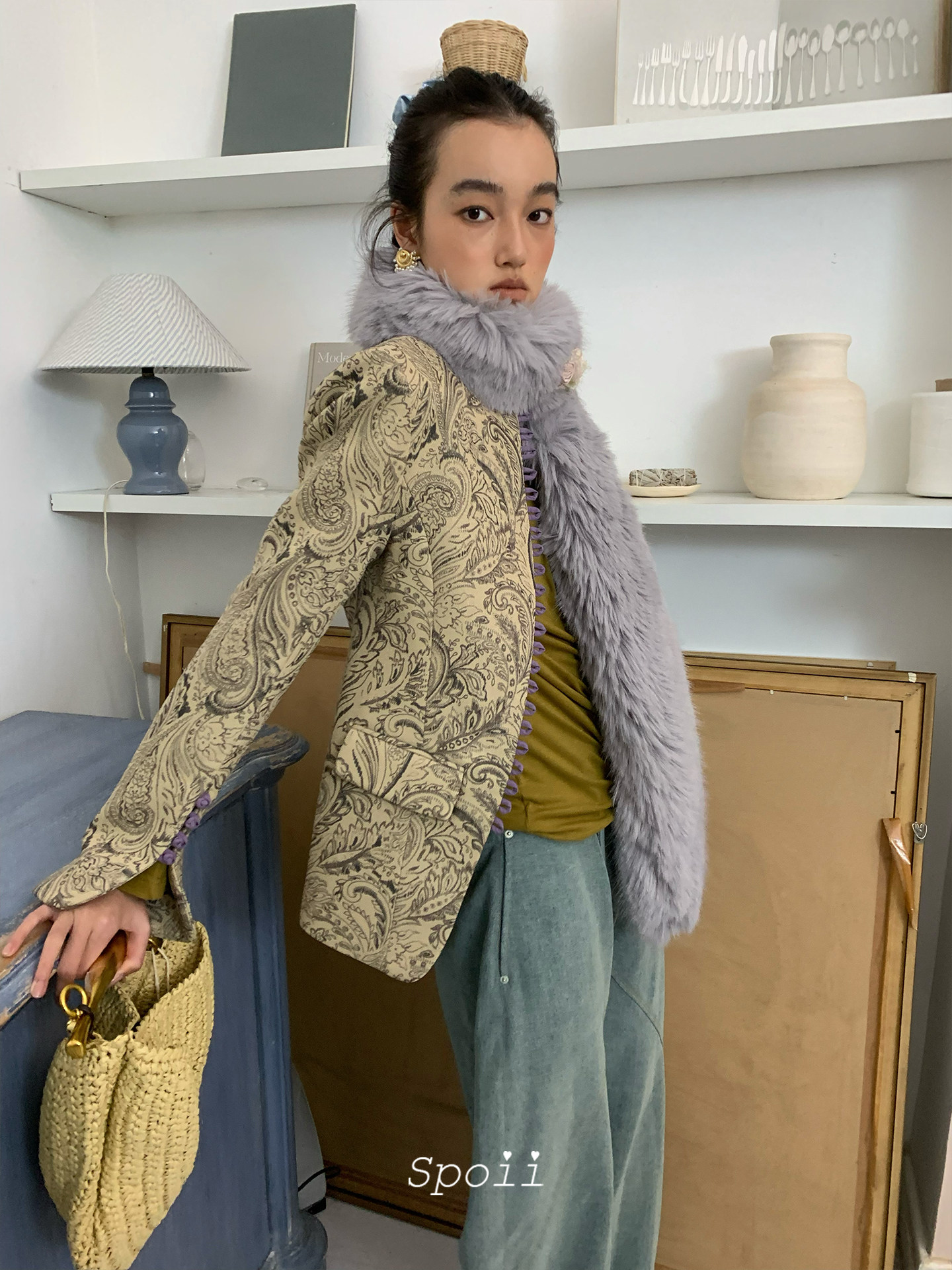 Spoii Khaki Retro Paisley Pattern Purple Buttoned Suit Jacket/Purple Bow Dress