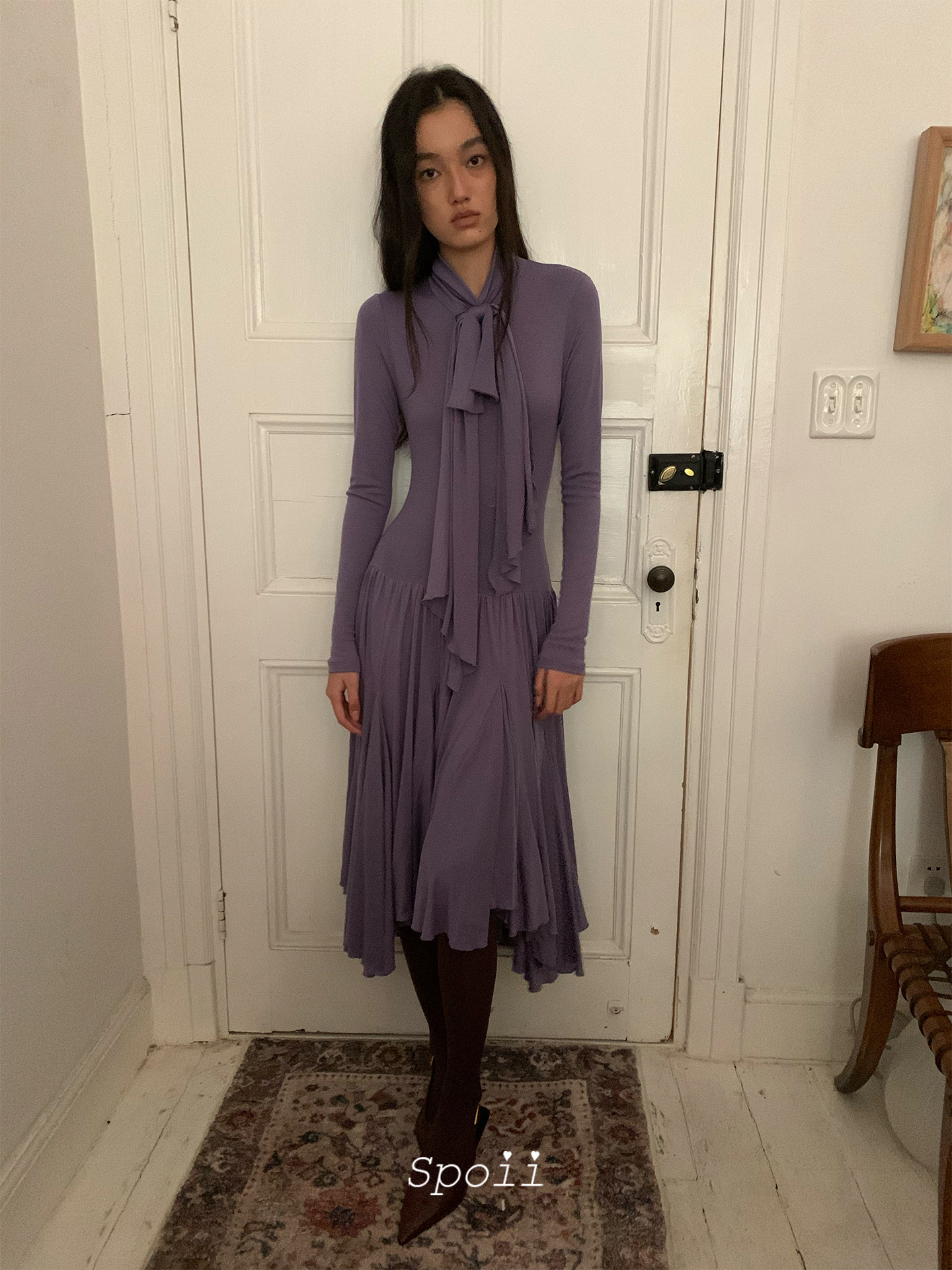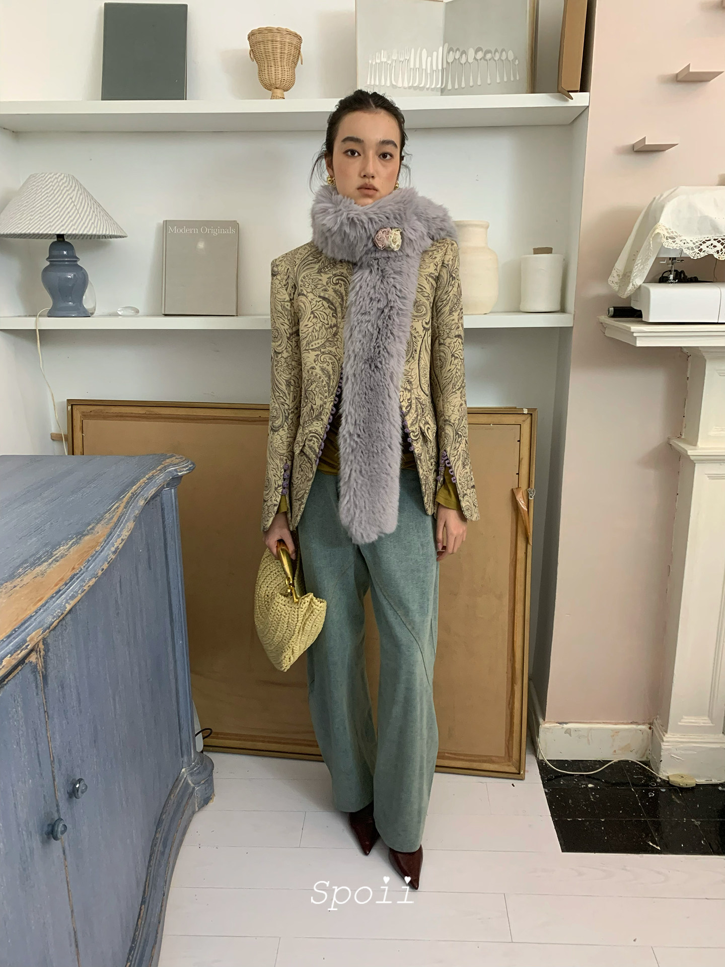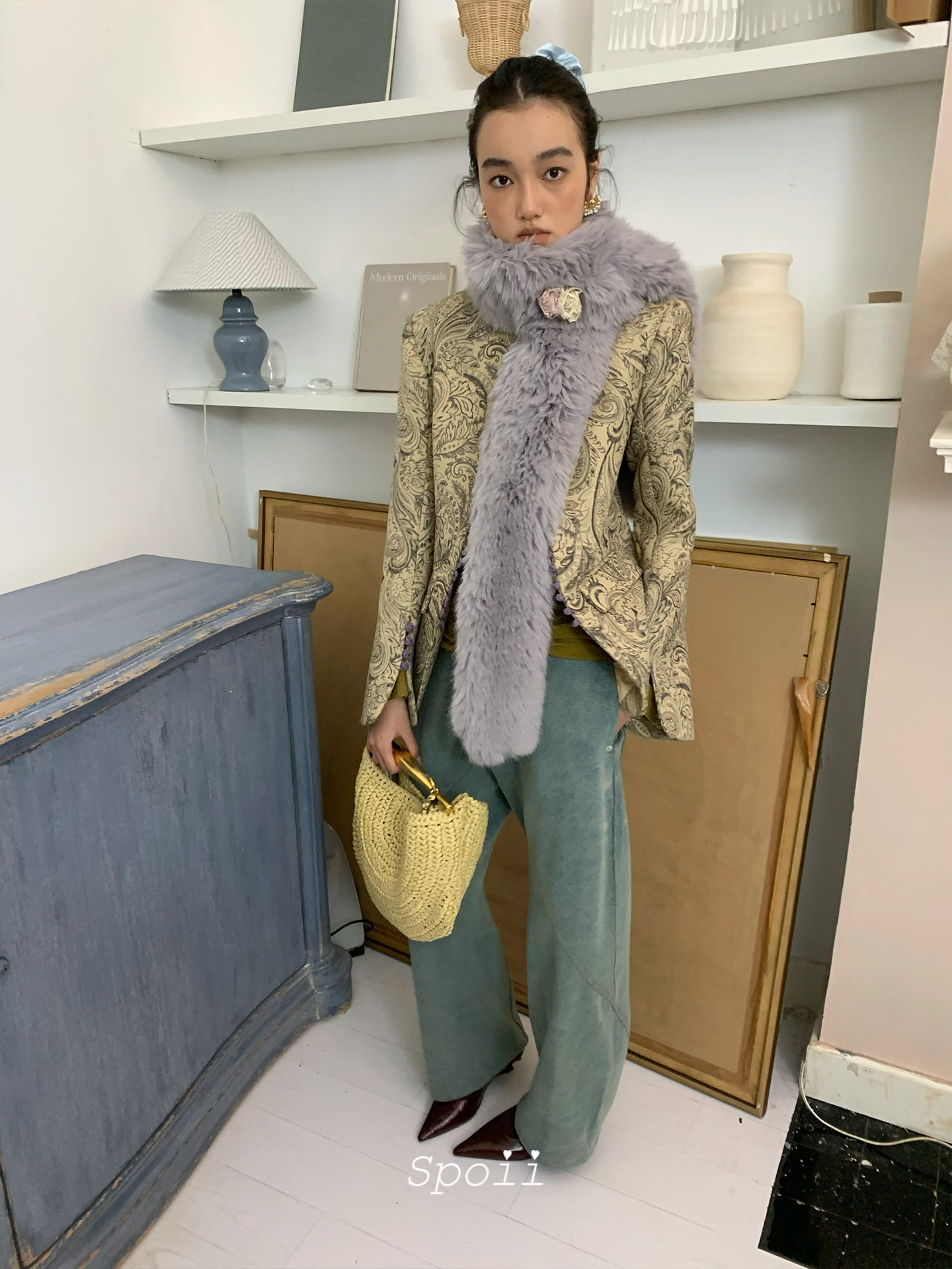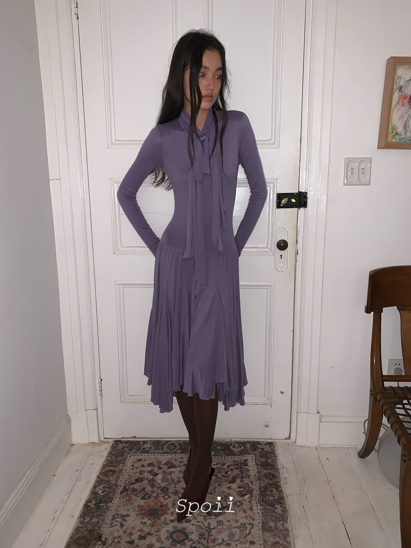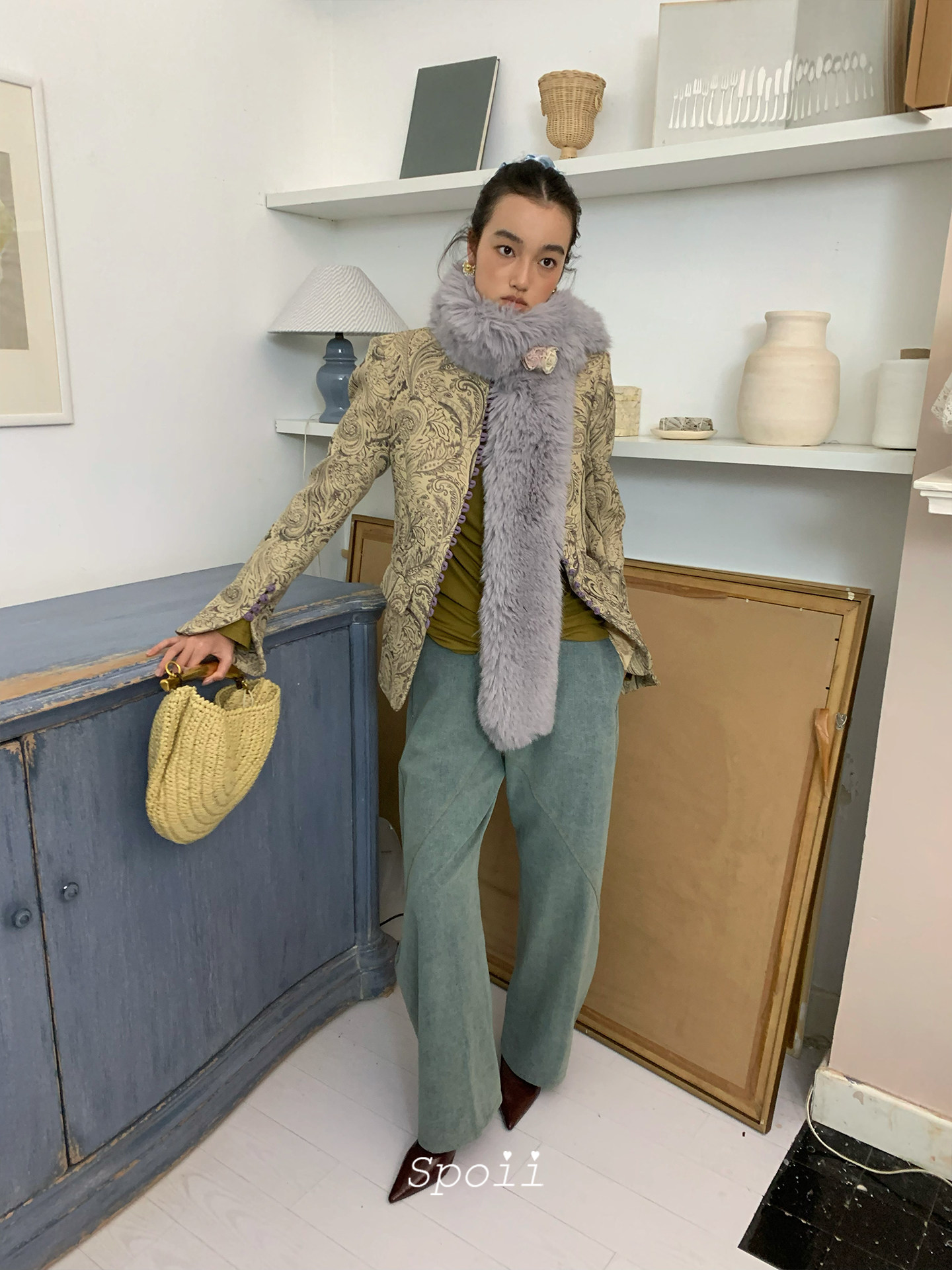 Spoii Khaki Retro Paisley Pattern Purple Buttoned Suit Jacket/Purple Bow Dress