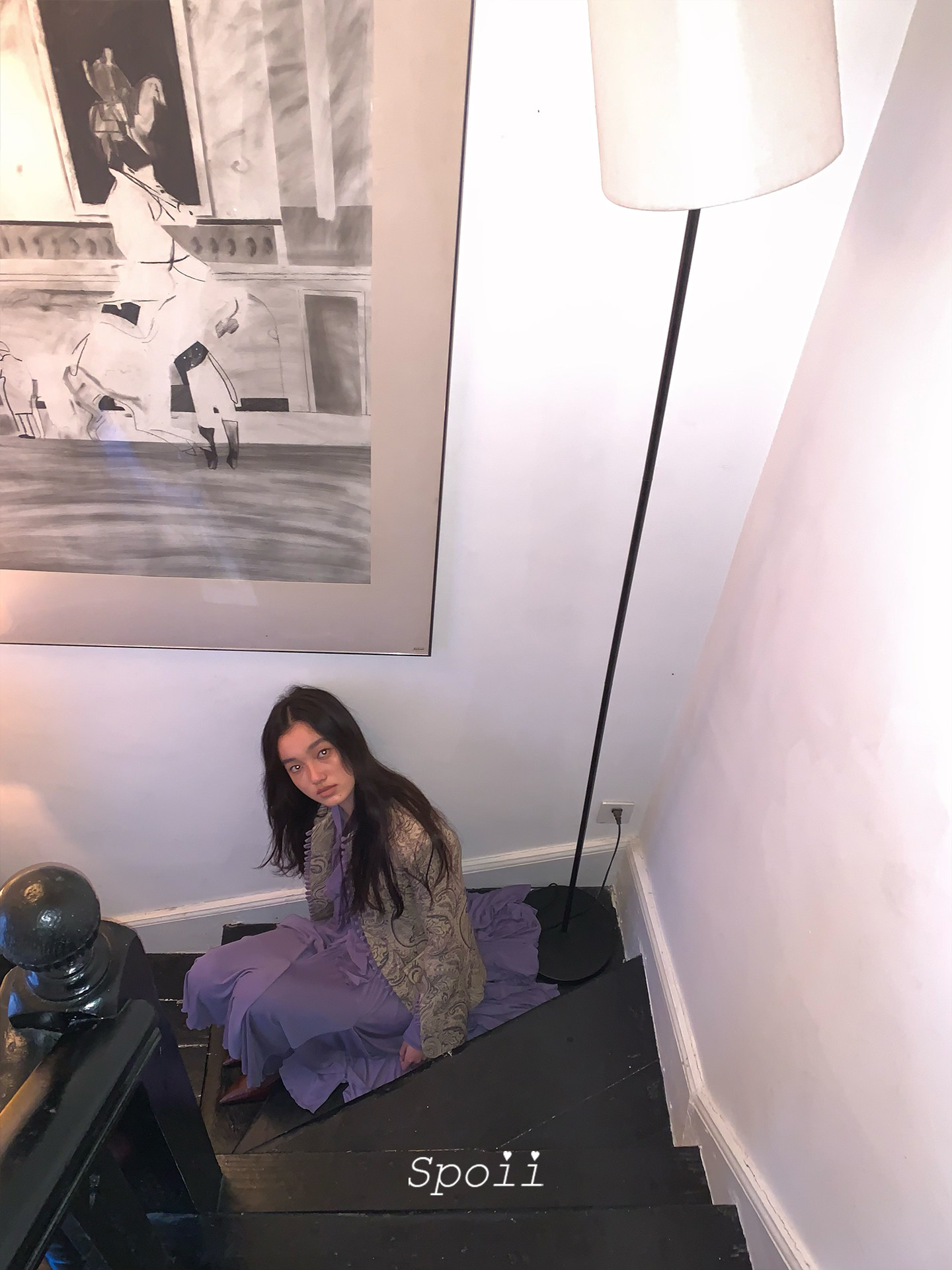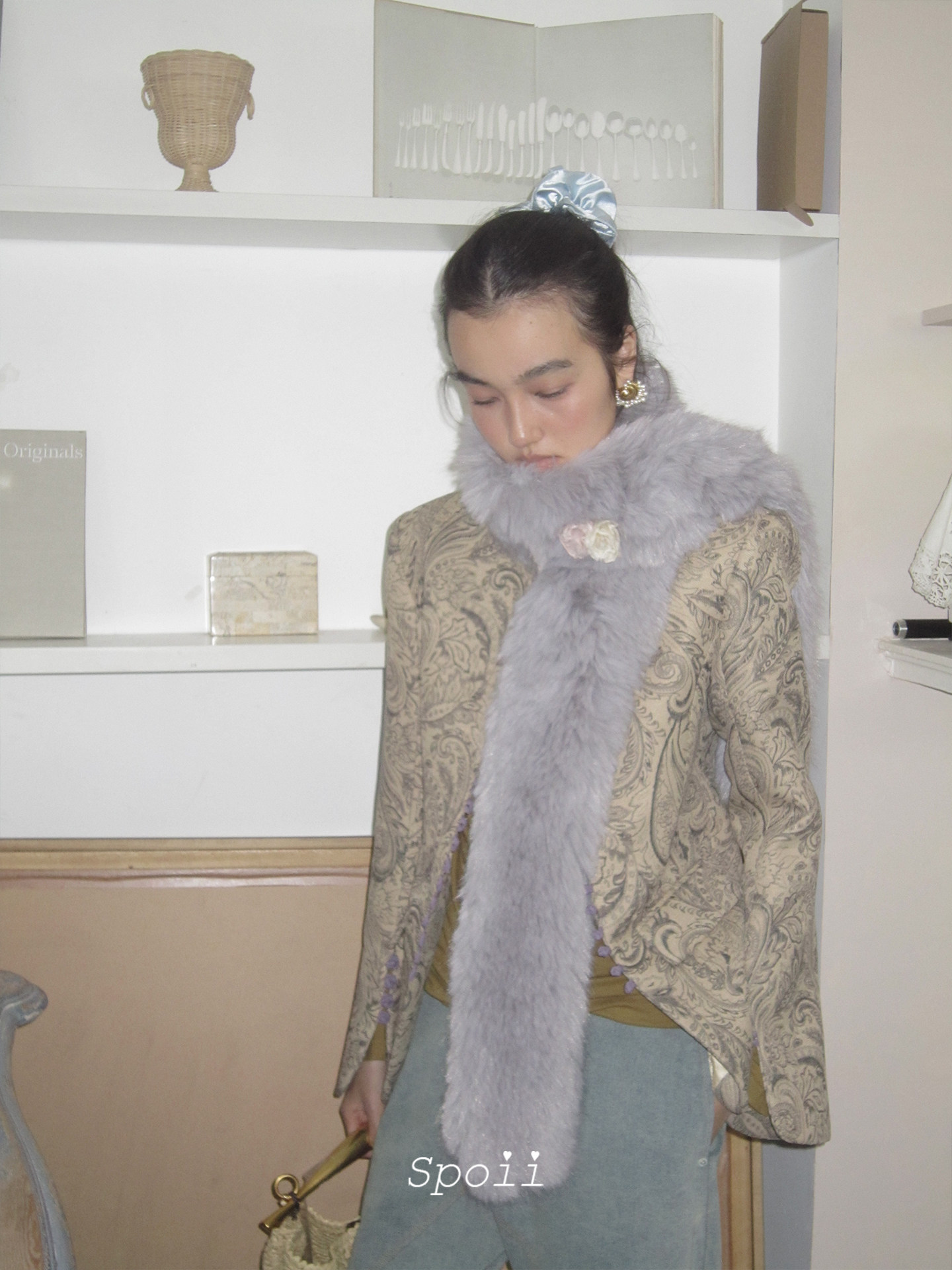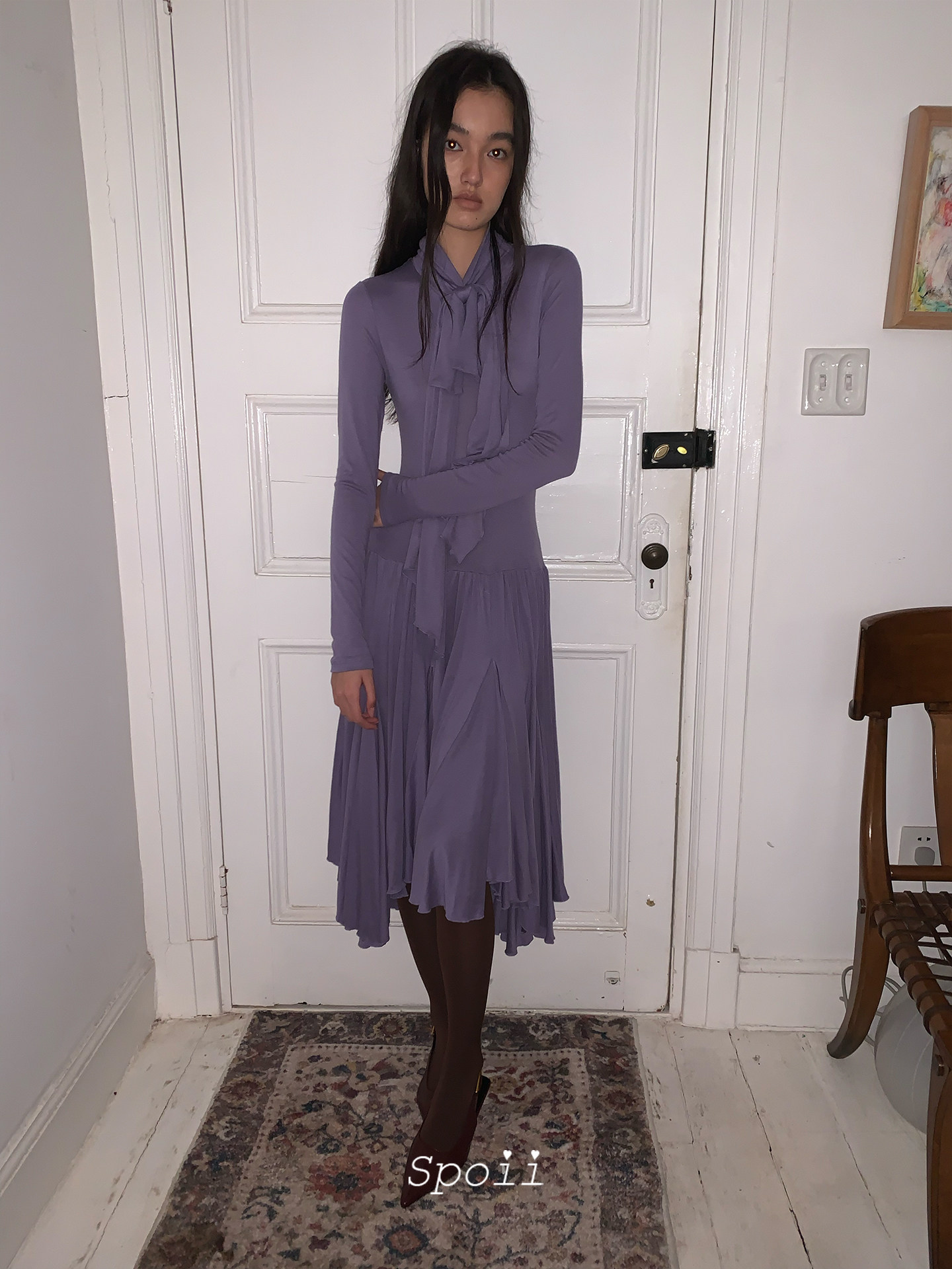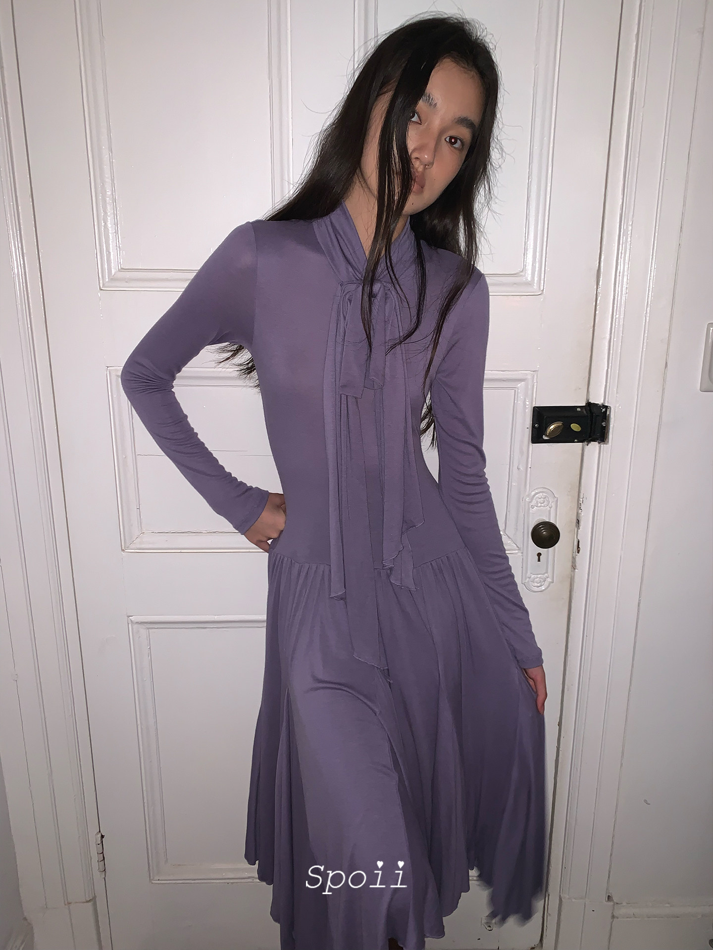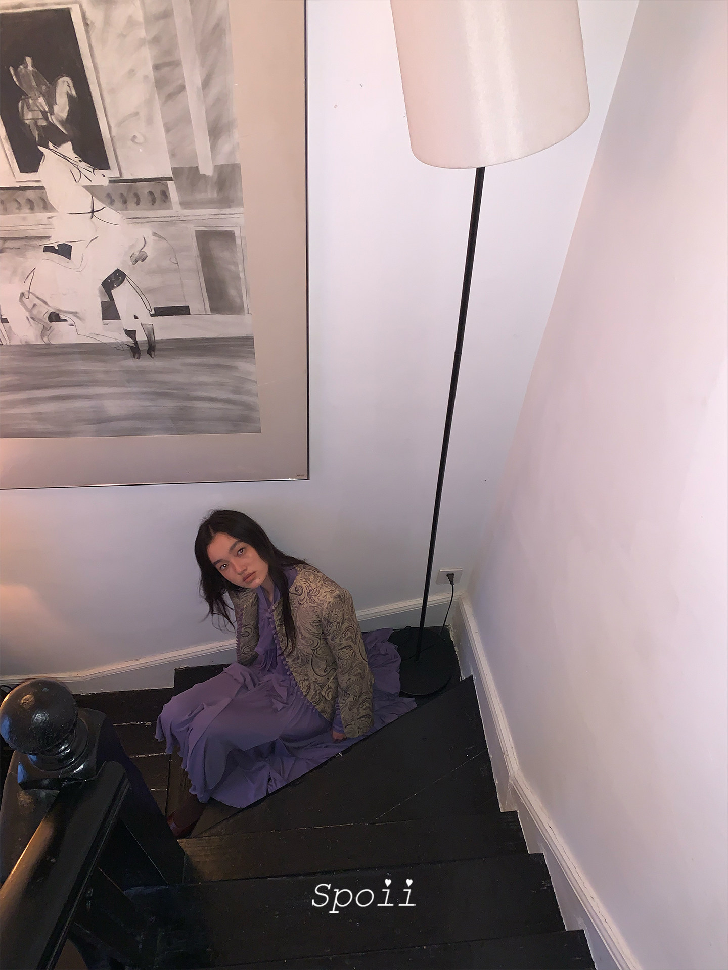 Spoii Khaki Retro Paisley Pattern Purple Buttoned Suit Jacket/Purple Bow Dress